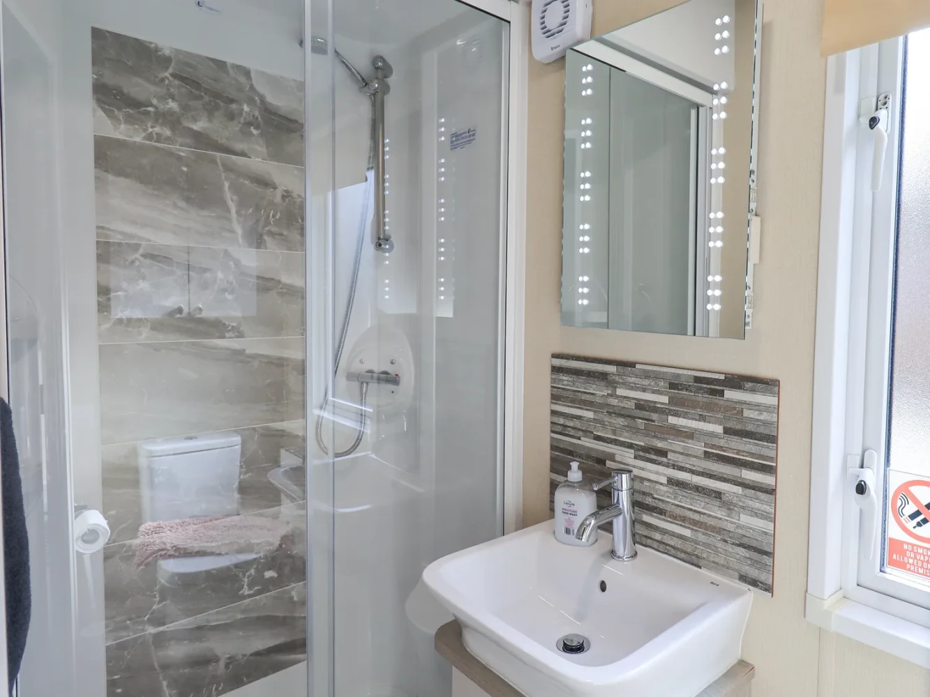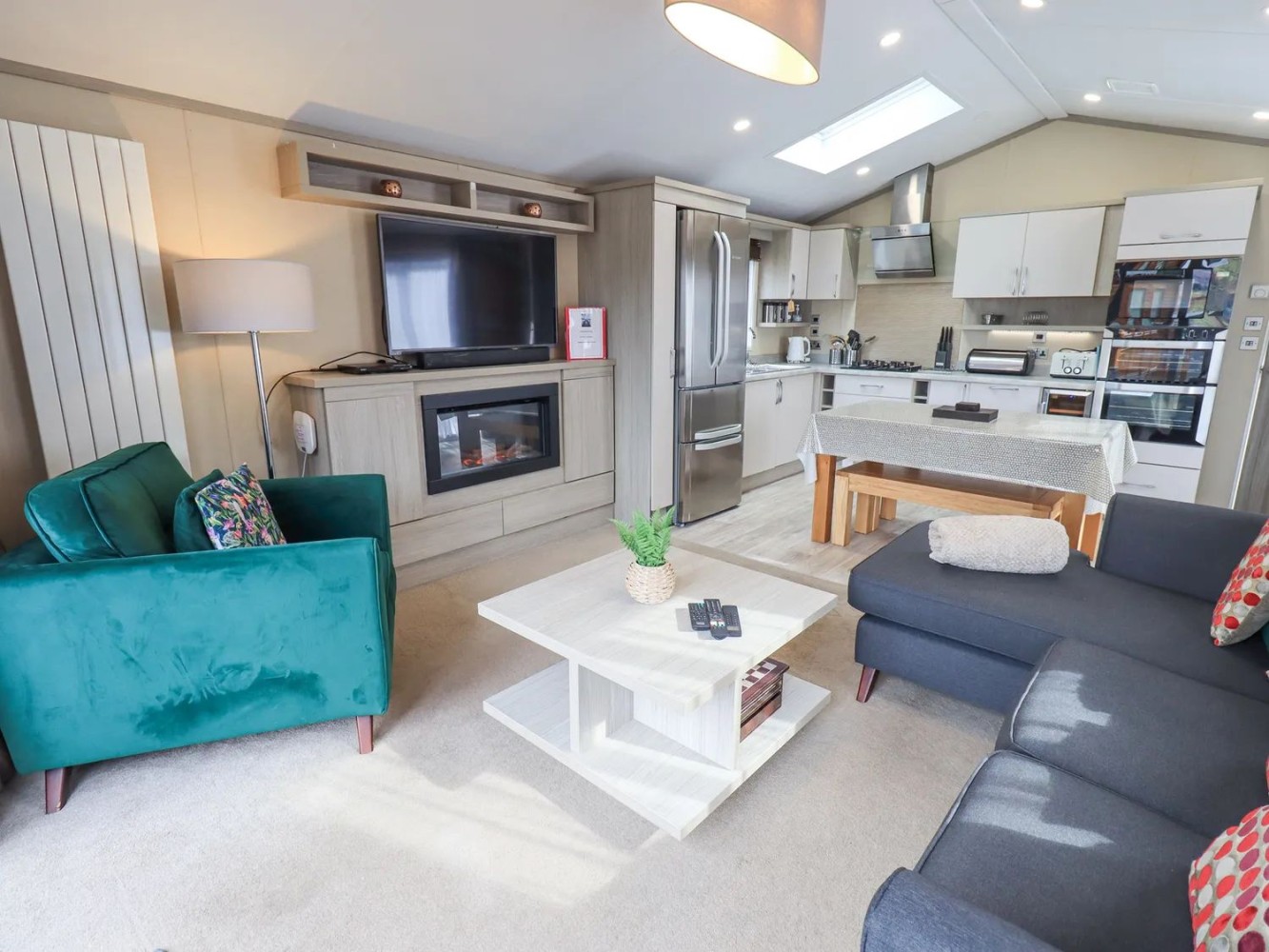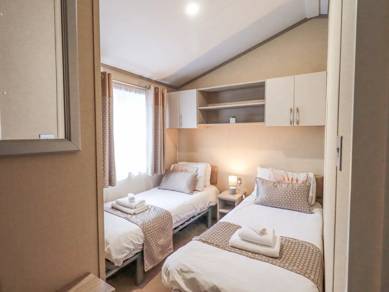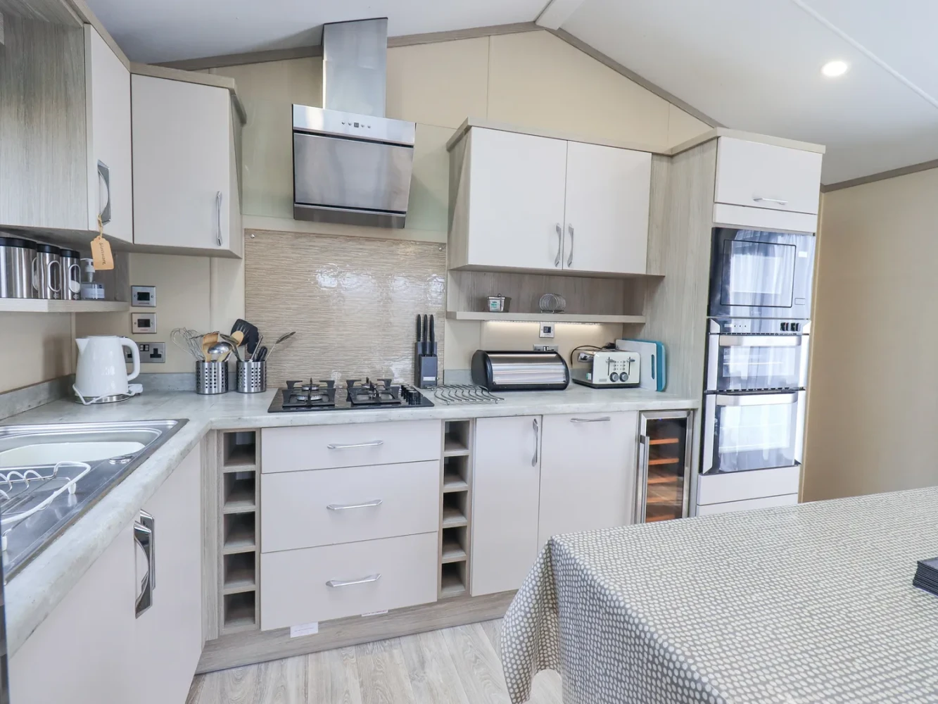 When the sun follows you home, why not dine alfresco on the enclosed decking with a bottle of wine from the wine chiller? Rinse off the day in a shower room, before settling onto the sofa with a film on the TV. When sleep calls, a double and two twin rooms await.