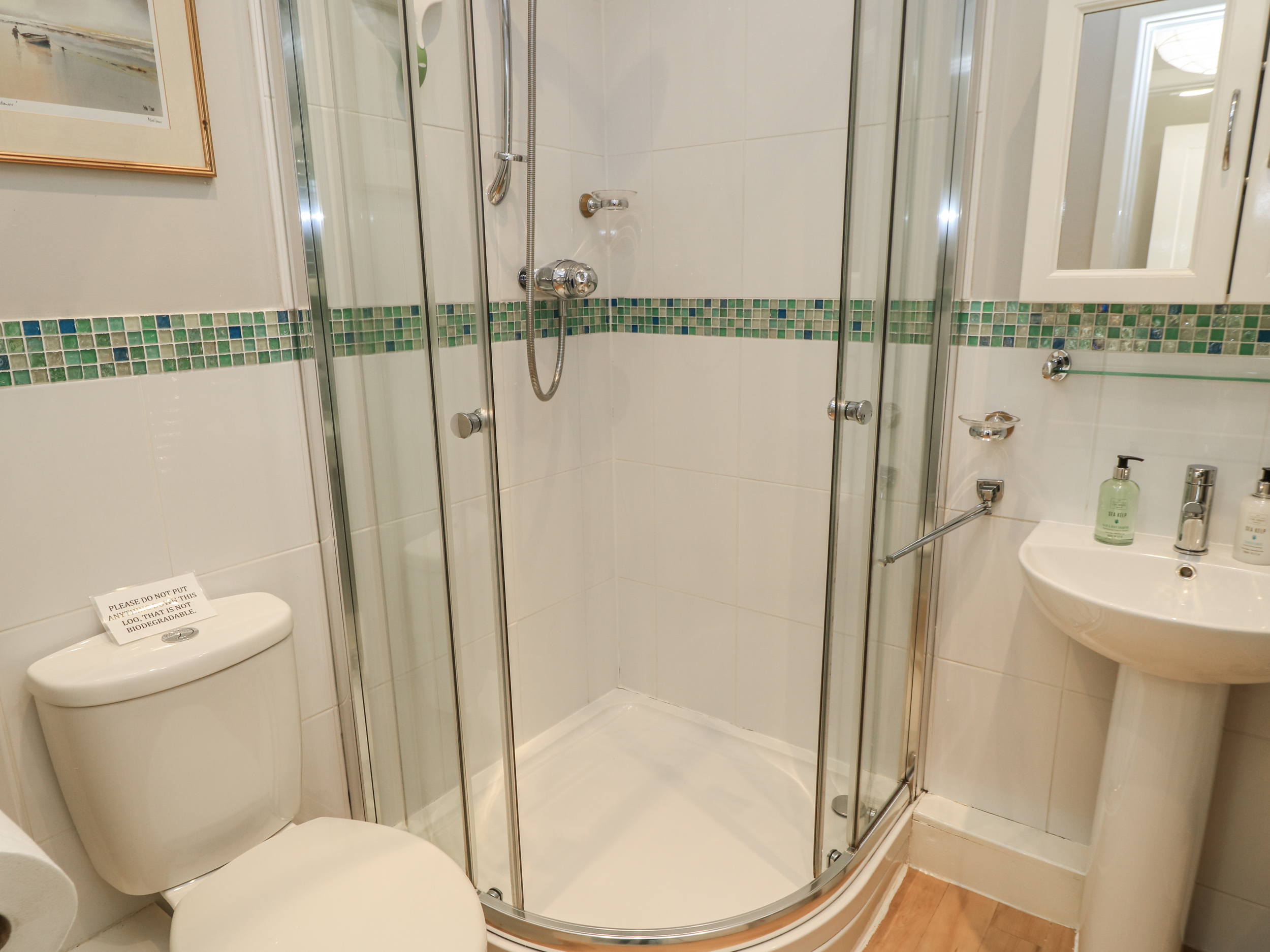Oil central heating in bedrooms and underfloor heating in kitchen, sitting and dining room with gas fire. Electric oven and halogen hob, small electric counter top oven and grill, microwave, fridge, freezer, washing machine, dishwasher, 2 x TVs with Freeview, DVD, iPod dock, WiFi, selection of books and games. Fuel and power inc. in rent. Bed linen and towels inc. in rent. Off-road under-cover parking for one car and space for another. Undercover bike storage. Small private patio with garden furniture. One well-behaved dog welcome. Sorry, no smoking. Shop and pub 1.5 miles. Note: No children under 7. Note: The owner has one friendly dog. Note: Dogs must be kept on a lead at all times when outside. Note: There is a private office on site. Note: The charging of electric cars is not permissible at the property. Please note: This property doesn't accept worker bookings only.