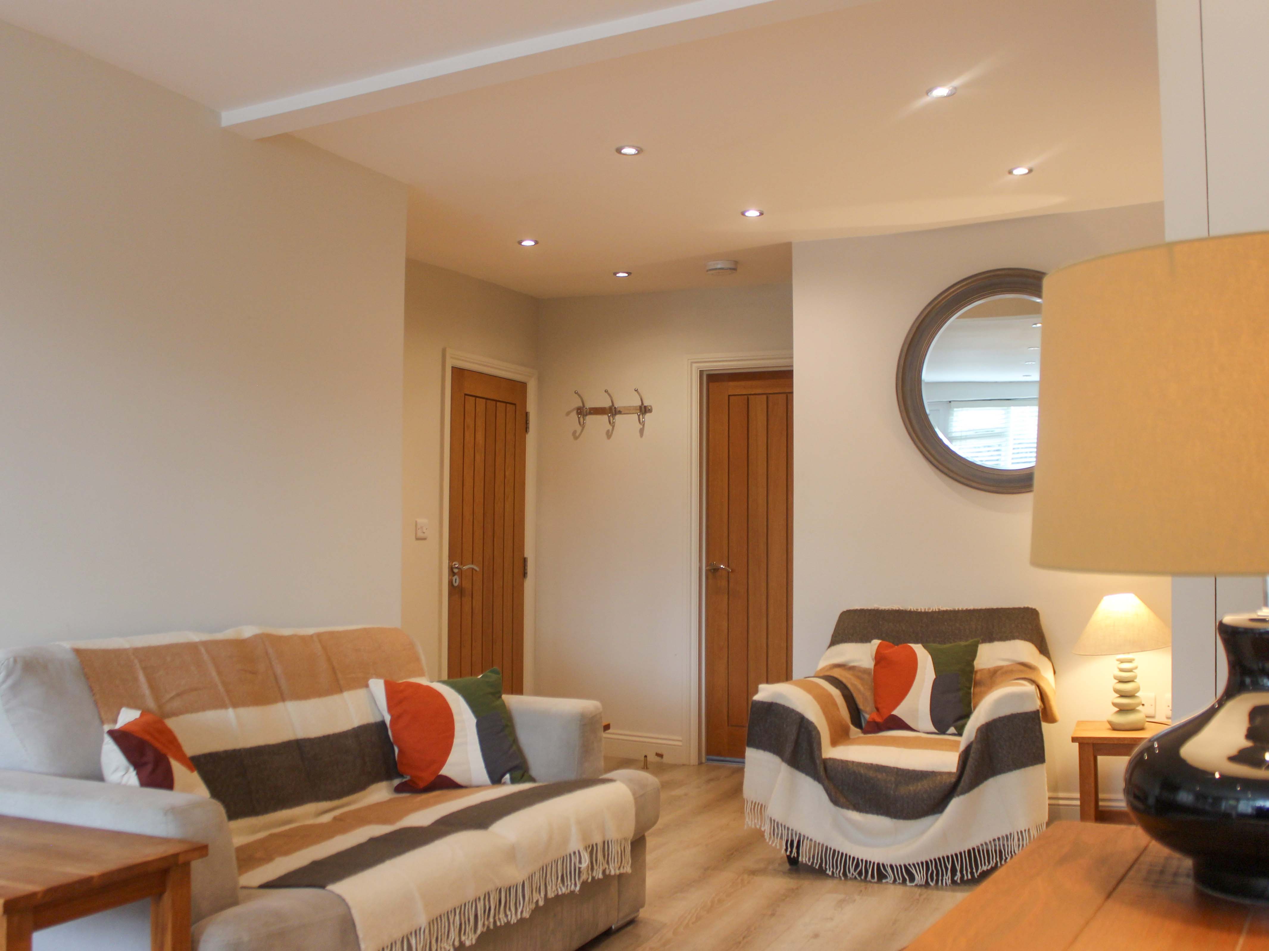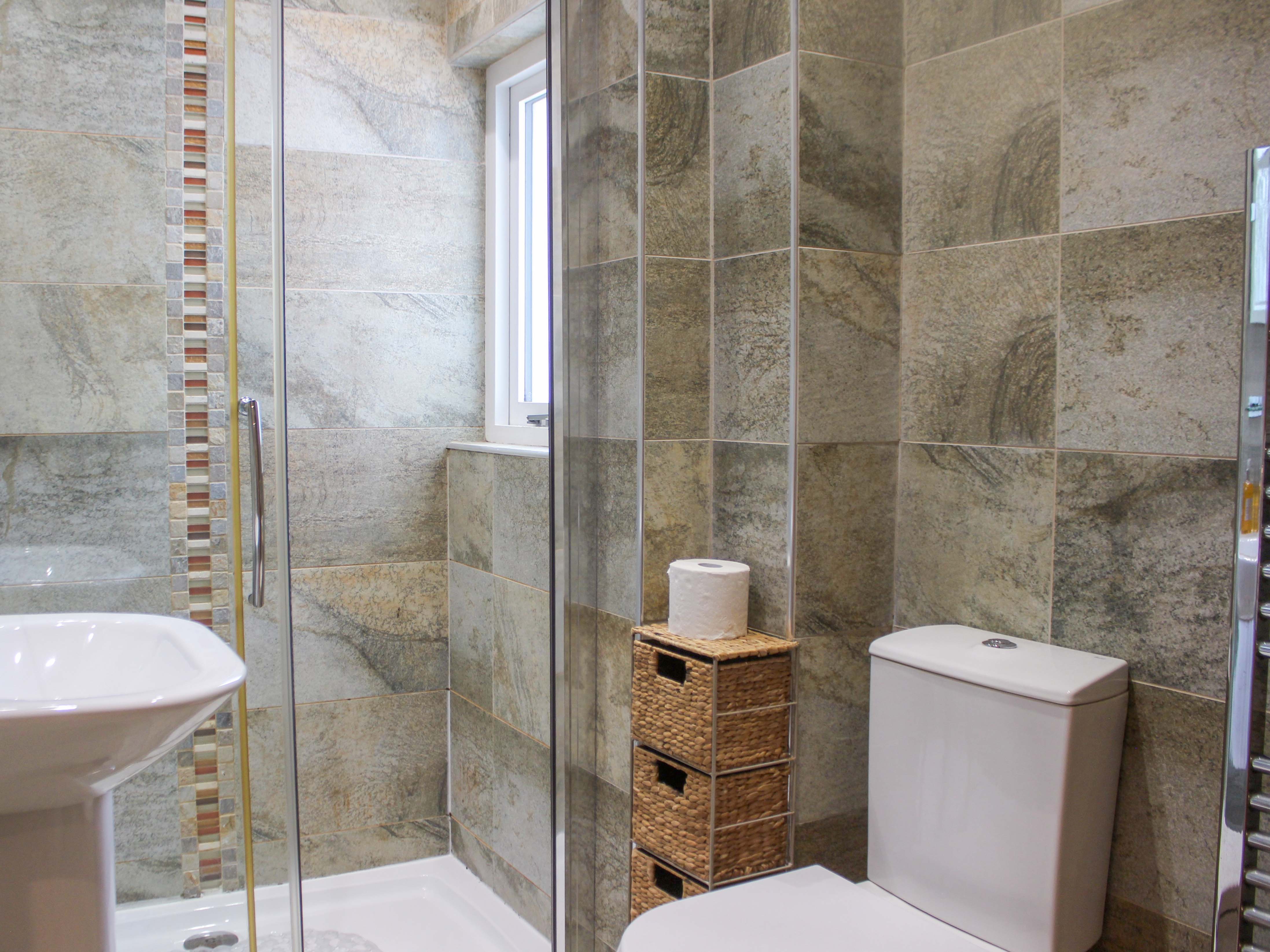 Gas central heating. Electric oven and gas hob, microwave, fridge with ice compartment, Smart TV with Freesat and Blu-ray, WiFi. Fuel and power inc. in rent. Bed linen and towels inc. in rent. Parking permit for local car park. Rear enclosed decking and gravelled area with furniture and BBQ. Well-behaved dogs welcome at an additional cost of £25 per dog per week. Sorry, no smoking. Shop and pub within 0.1 miles