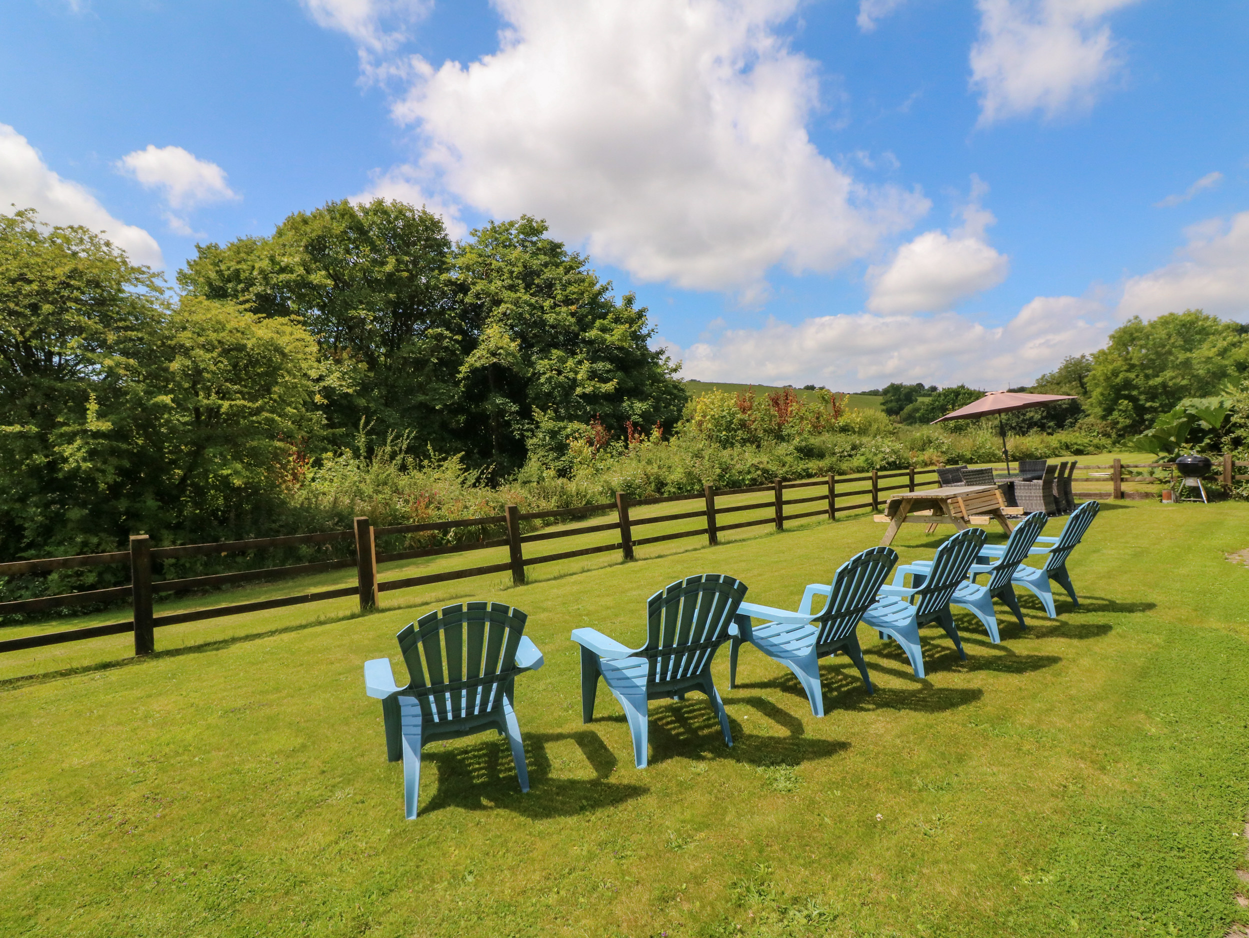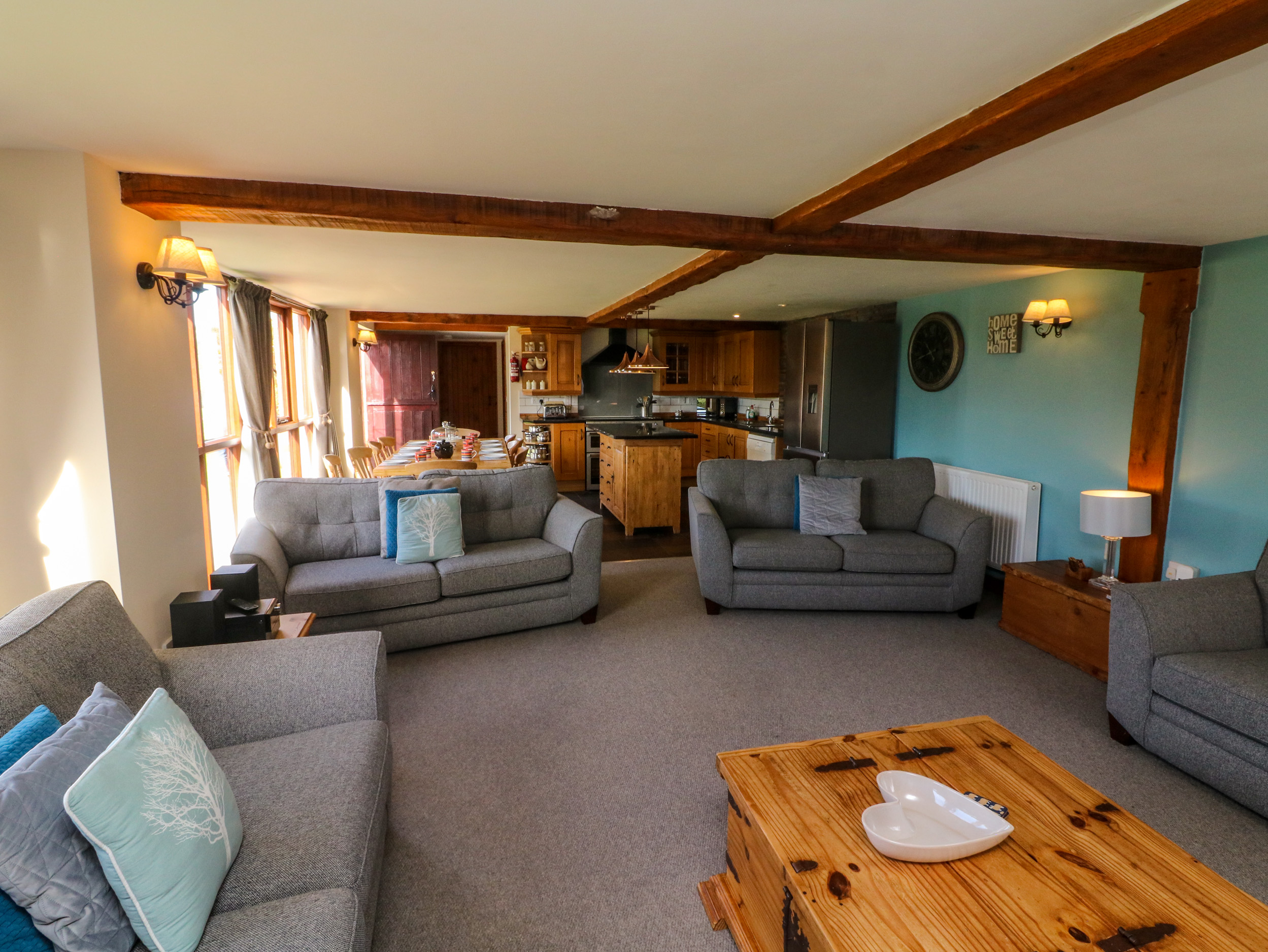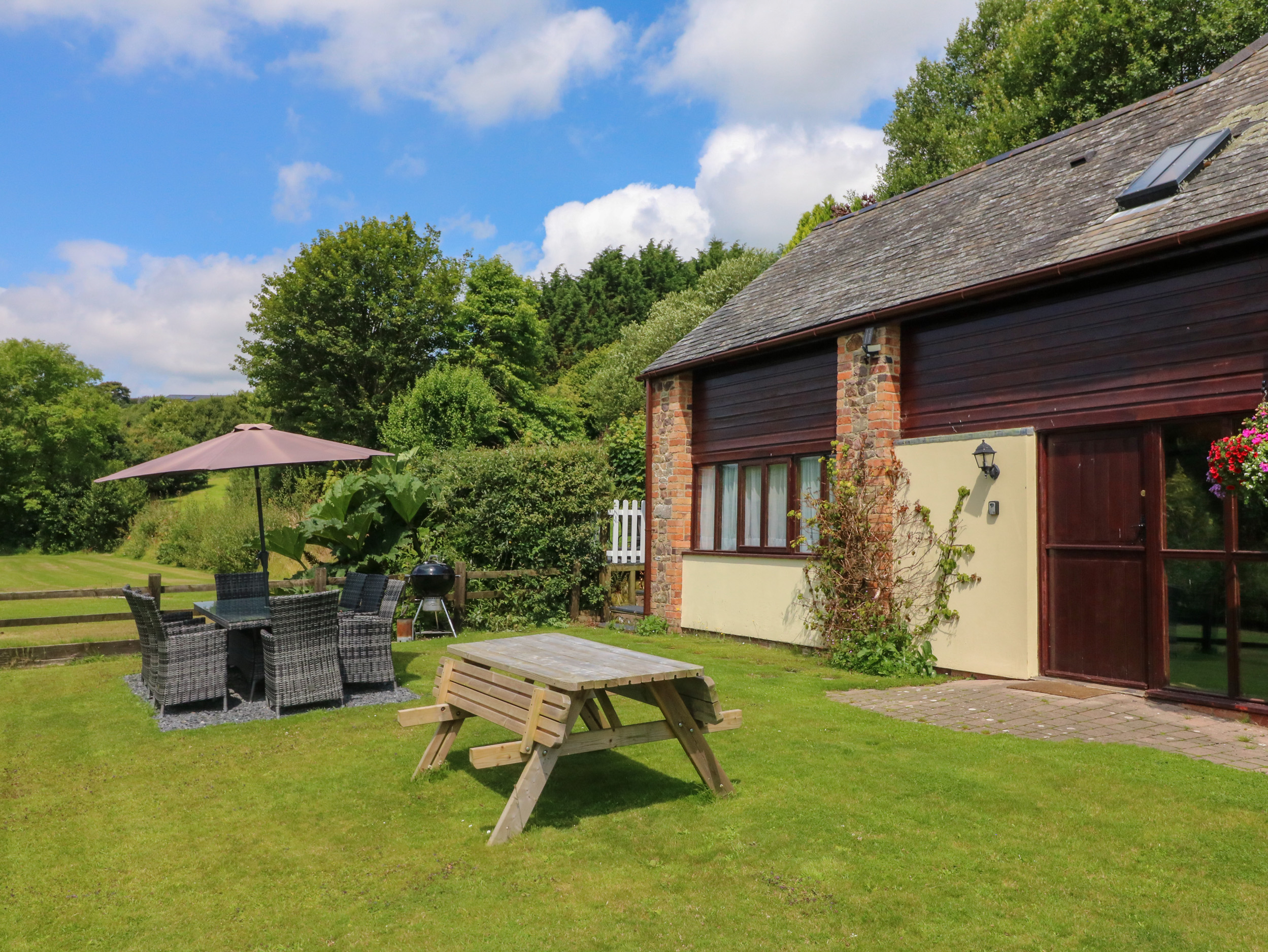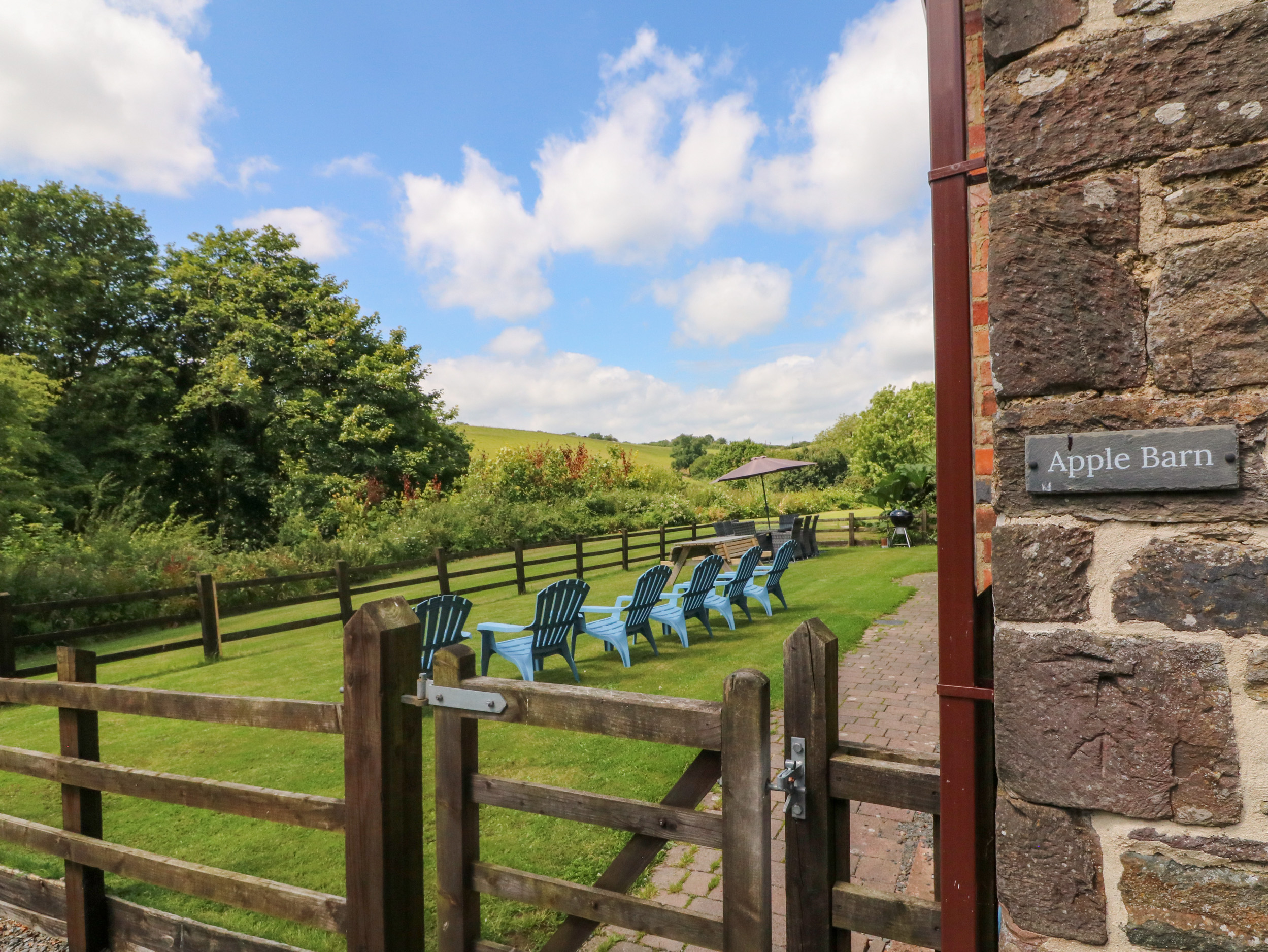 Oil central heating with woodburning stove. Electric double oven and hob, microwave, 2 x fridge, freezer, washing machine, dishwasher. TV with Freeview, DVD, CD/radio, iPod dock, WiFi, selection of books, games and DVDs. Fuel and power inc. in rent. Starter pack for woodburning stove inc. in rent Oct-March; at other times of year fuel for stove can be purchased locally. Bed linen and towels inc. in rent; hot tub towels are not provided. Travel cot, highchair and stairgate available on request. Ample off-road parking. Private 6-person hot tub overlooking the valley. Enclosed lawned garden with furniture and barbecue. Shared use of 6-acre site. Shared external games room with table tennis, pool table, table football and TV with PS2 and games. Sorry, no smoking. Shop and pub 2.1 miles. Note: From 1 April 2026, Apple Barn will accept two well-behaved dogs. Note: One of the double bedrooms and both twins have sloping ceilings. Note: The property is over three floors, with 8 steps from ground floor to first floor level and then a further 8 steps to second floor level. Note: This property is in a rural location, accessed by country lanes that are single track in some places. Note: Please be advised the charging of electric vehicles is prohibited at this property.