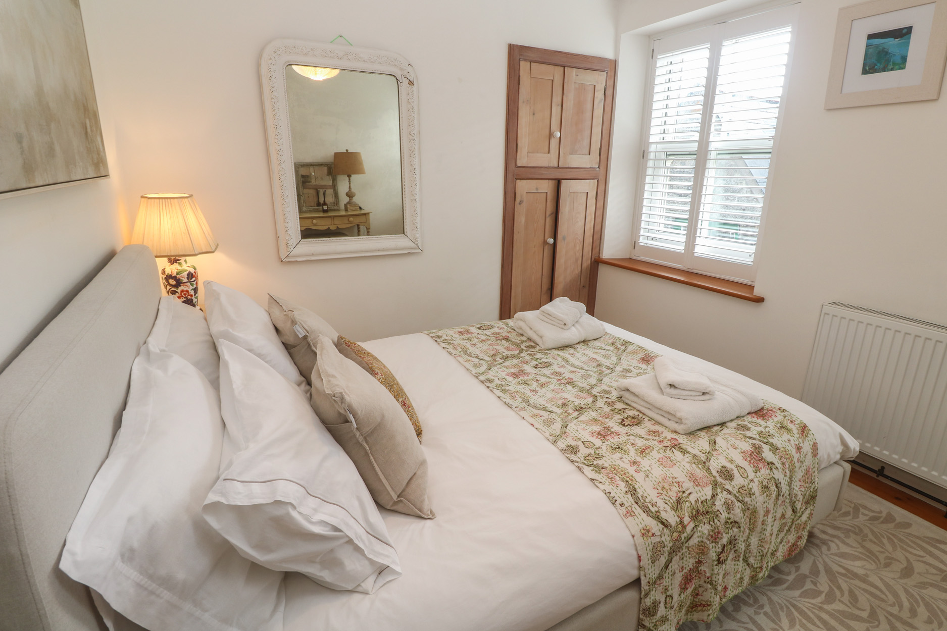 The living areas in this home consist of an open-plan kitchen, dining area and sitting area with an electric oven, gas hob, microwave, fridge with ice box, dishwasher, woodburning stove and TV, and an external utility with washer/dryer. There are 1 king size and 1 bedroom with bunk bed, serviced by a shower room. Outside there is an enclosed rear, multi-level garden with patio, furniture, storage and roadside parking, with additional parking in a nearby car park. Two well-behaved dogs welcomed, but sorry, no smoking. WiFi, fuel, power, bed linen and towels are all included in the price, along with a highchair, travel cot and stairgate. For a lovely base in Cornwall, book Bodilly's Cottage. Note: Narrow, steep stairs leading to the first floor, please take care. Note: Due to the layout of the landing, there is a small step down from the bedrooms at the top of the stairs. Note: Other pets can be arranged by prior arrangement. Note: There are steps in the garden.