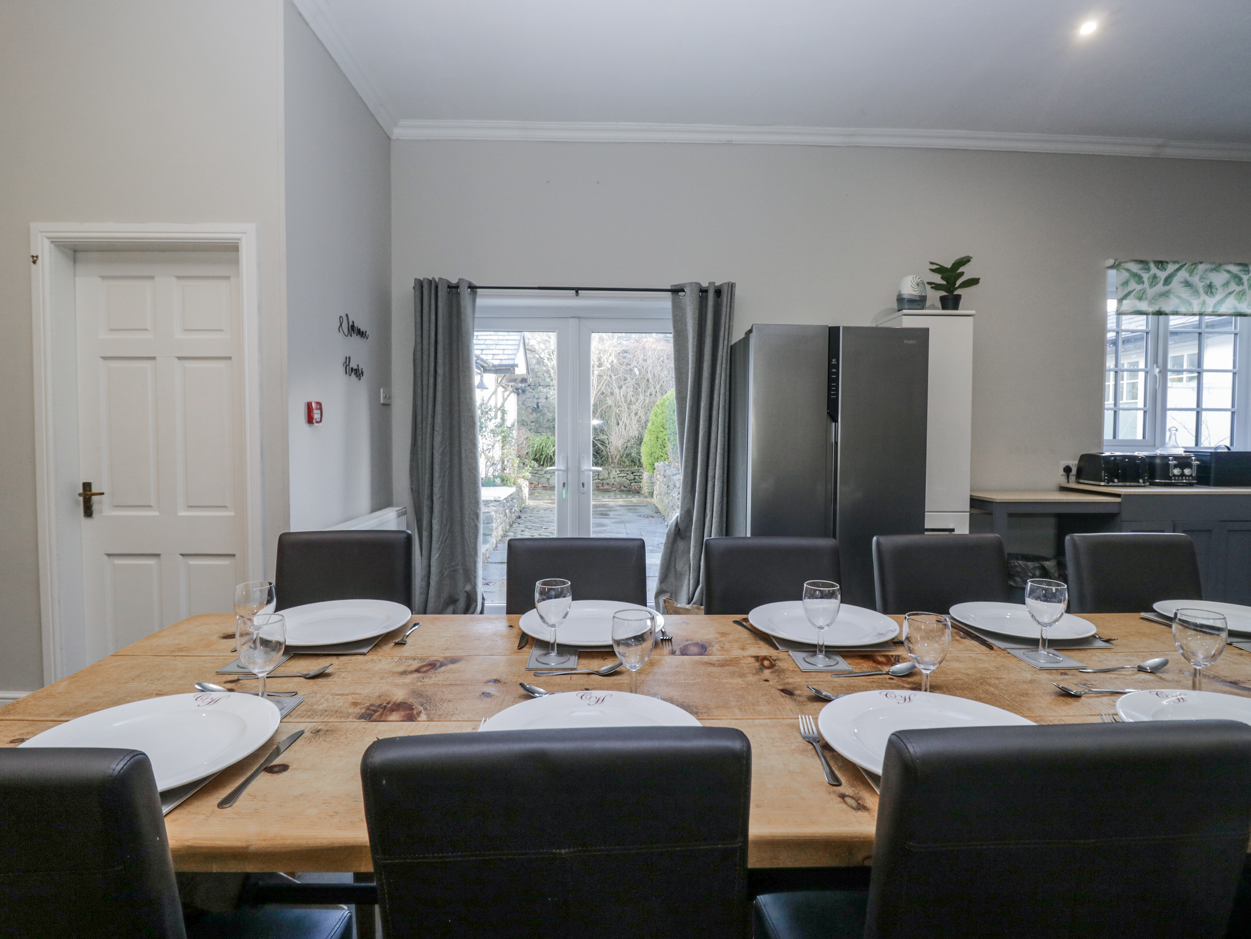 The living areas in this holiday home consist of an open-plan living space with a kitchen equipped with electric oven, gas hob, microwave, fridge/freezer, washing machine and tumble dryer, a dining table for 20 and a sitting area with Smart TV and electric flame-effect stove. The bedrooms consist of three ground-floor bedrooms including a super-king-size with TV and en-suite bathroom, a double with TV and en-suite shower room and a double there is also a family room with TV, king-size and two singles on the first floor, all serviced by a ground-floor bathroom. In the barn, you can find three further doubles, two bathrooms and a sitting room. Outside there is ample off-road parking, a front patio with furniture and a rear patio with lawn. Within 0.2 miles there is a shop, 0.1 miles a pub and 2.7 miles a beach. Travel cot and highchair available on request. Two well-behaved dogs are welcome, but sorry, no smoking. WiFi, fuel, power, bed linen and towels are all included. Explore Cumbria at Clarence House. Note: This property lies next to another but offers completely separate and private outdoor areas.
