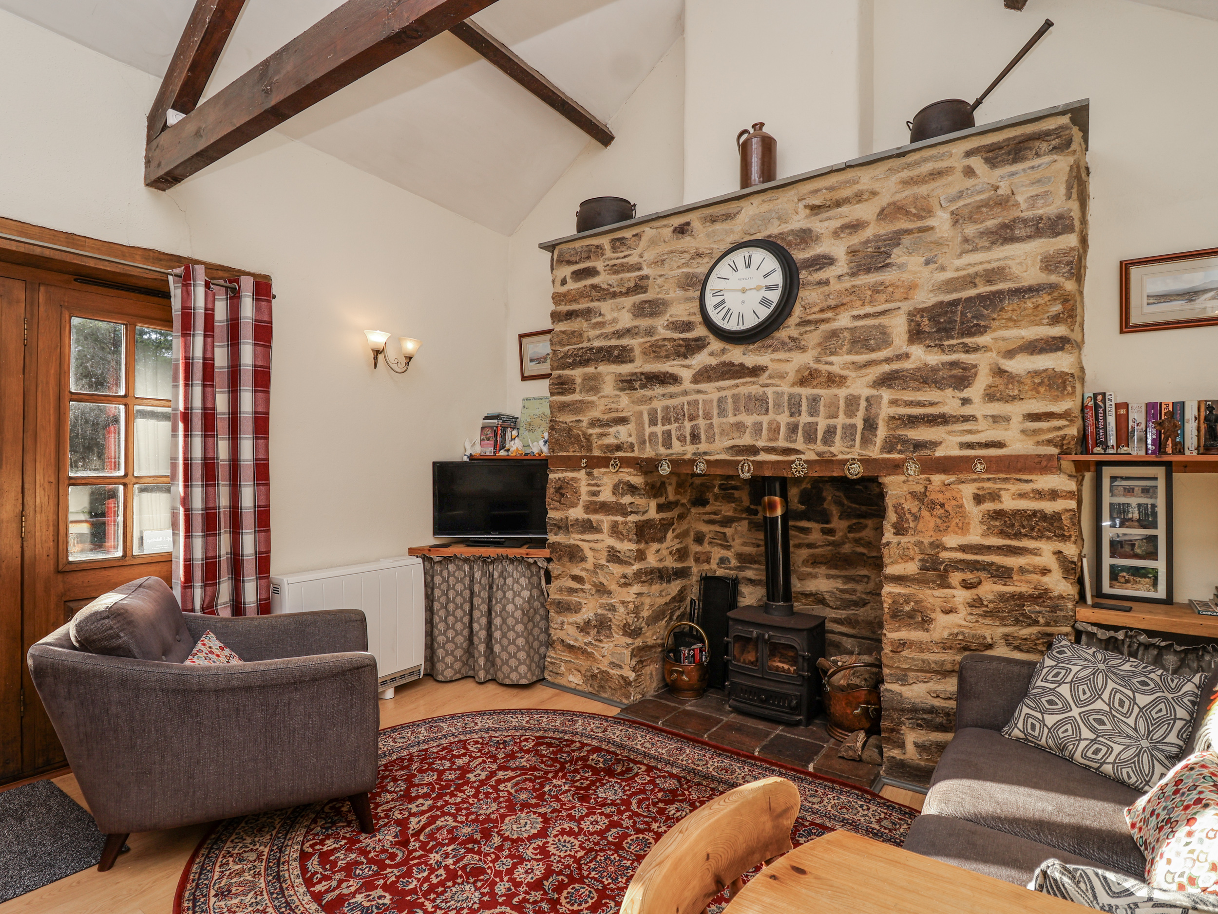 Night storage heating with wood burning stove. Microwave, fridge, washer-dryer, TV with DVD, Fuel and power inc. in rent. Bed linen and towels inc. in rent. Off road parking for two cars. Two well-behaved dogs welcome, Sorry no smoking. Note: This property does not accept children. Note: This property has limited mobile phone coverage.