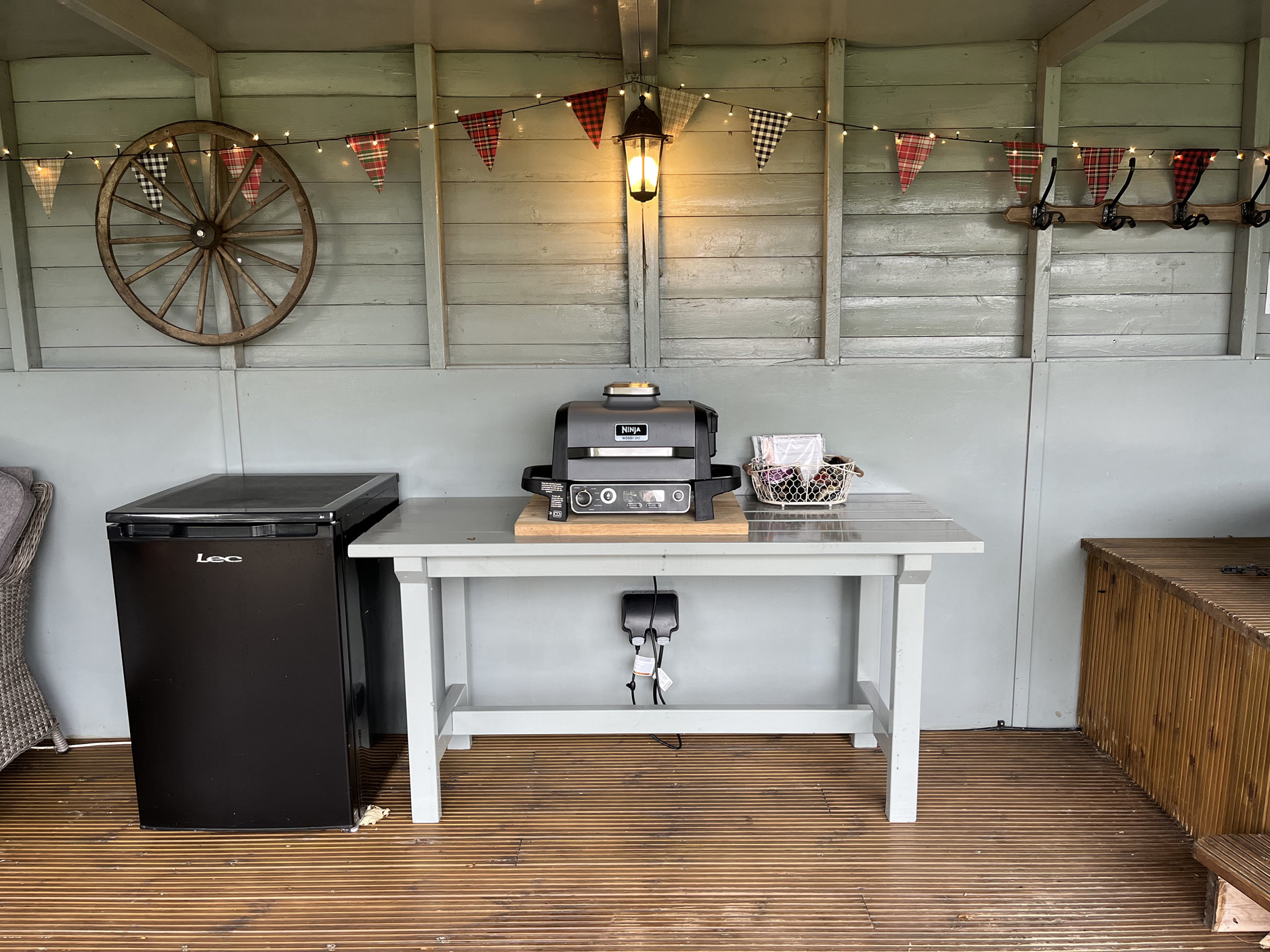Hobbit woodburner and additional electric radiator supplied.. Electric oven and hob, microwave, fridge/freezer, toaster, kettle, coffee machine. TV, WiFi. 1 basket of logs and kindling supplied, and top up can be purchased from owner., . Bed linen and towels inc. in rent, additional bedding and towels at an additional cost. Off-road parking for 2 cars. Patio and furniture, hot tub. Outdoor cooking and dining area with Ninja Woodfire BBQ grill & outdoor fridge. Iron and ironing board and hairdryer. One well behaved dog welcome. Sorry, no smoking indoors. Nearest shop and pub 3 miles. Property cannot accommodate bookings starting on a Sunday. Please note: This property only accepts bookings for couples.
