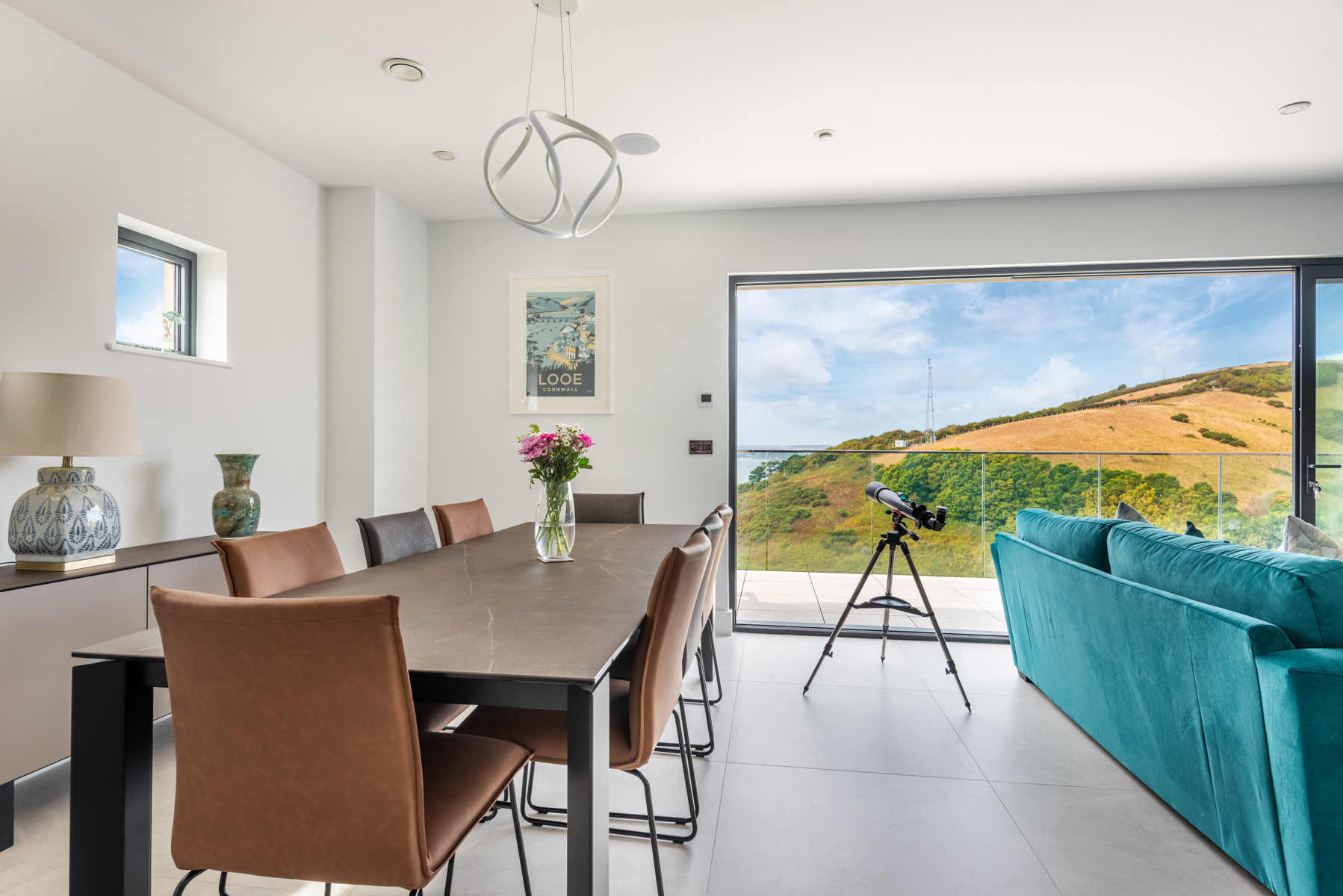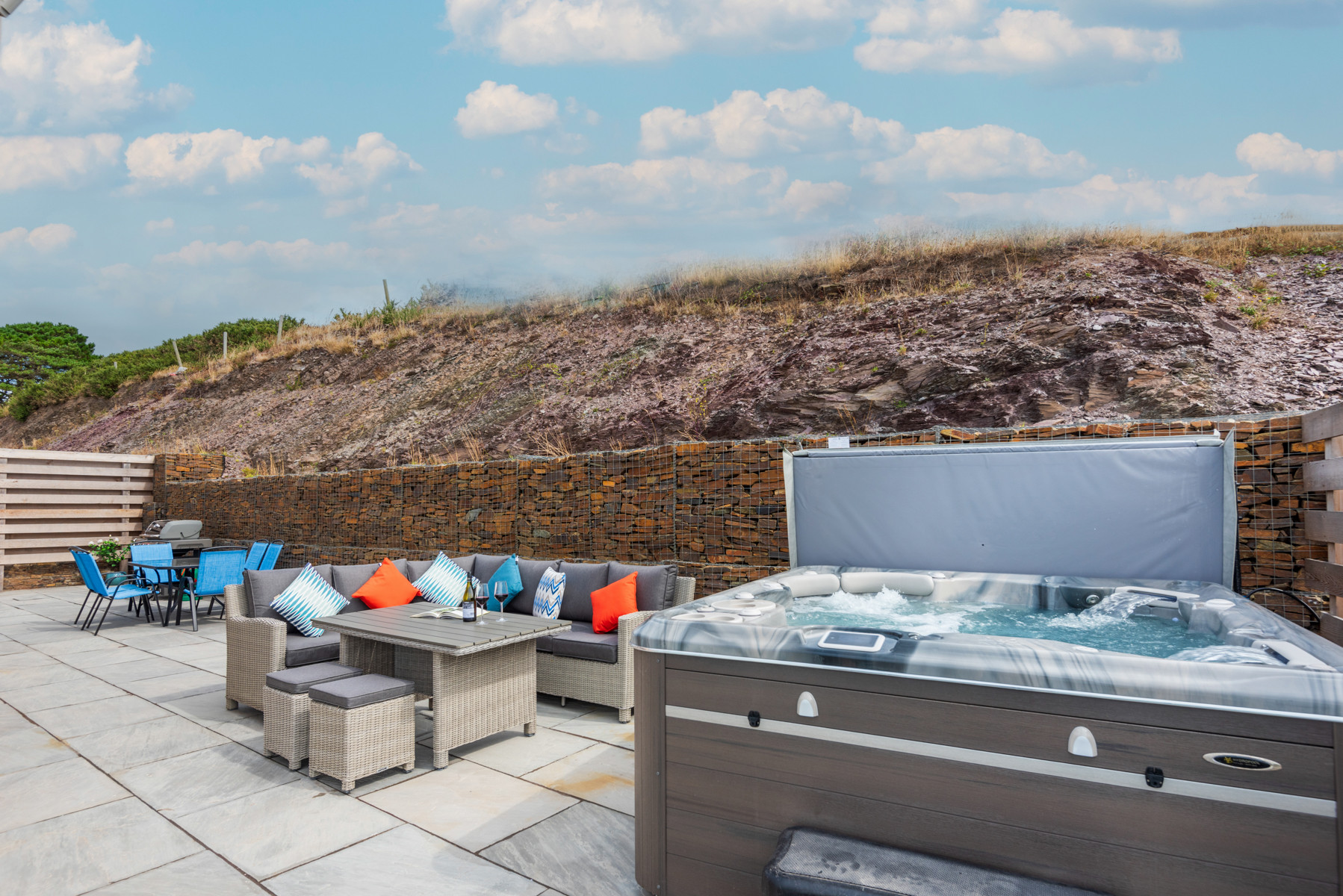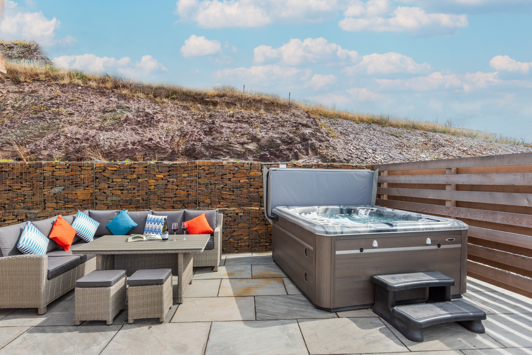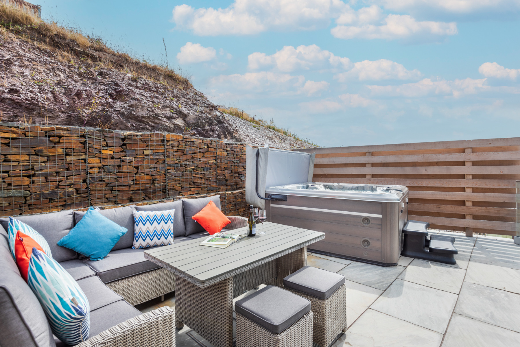The heart of the home is the bright, open plan living area. Here you can share meals with a sea view, or simply curl up and enjoy the scenery. Step outside and you'll find your own private hot tub, complete with sea view.