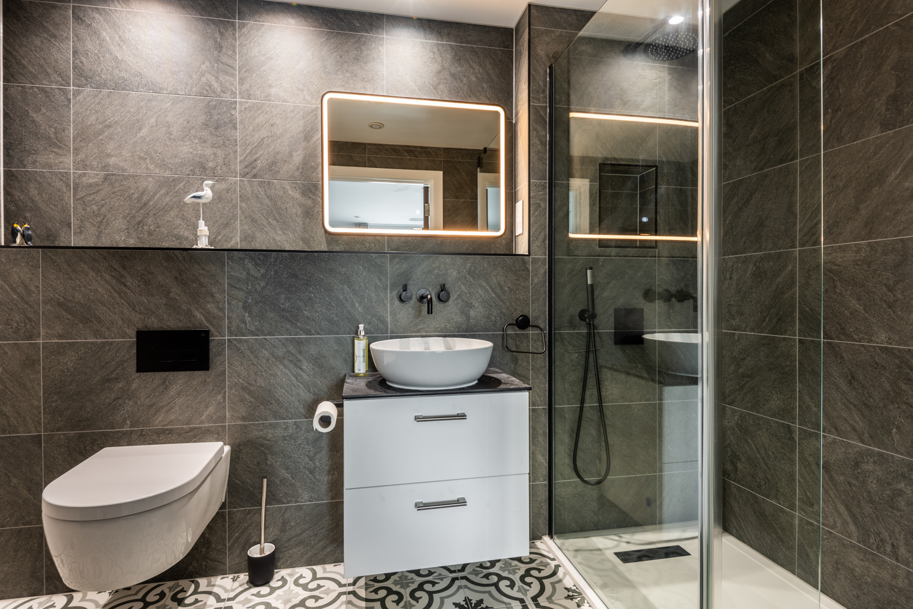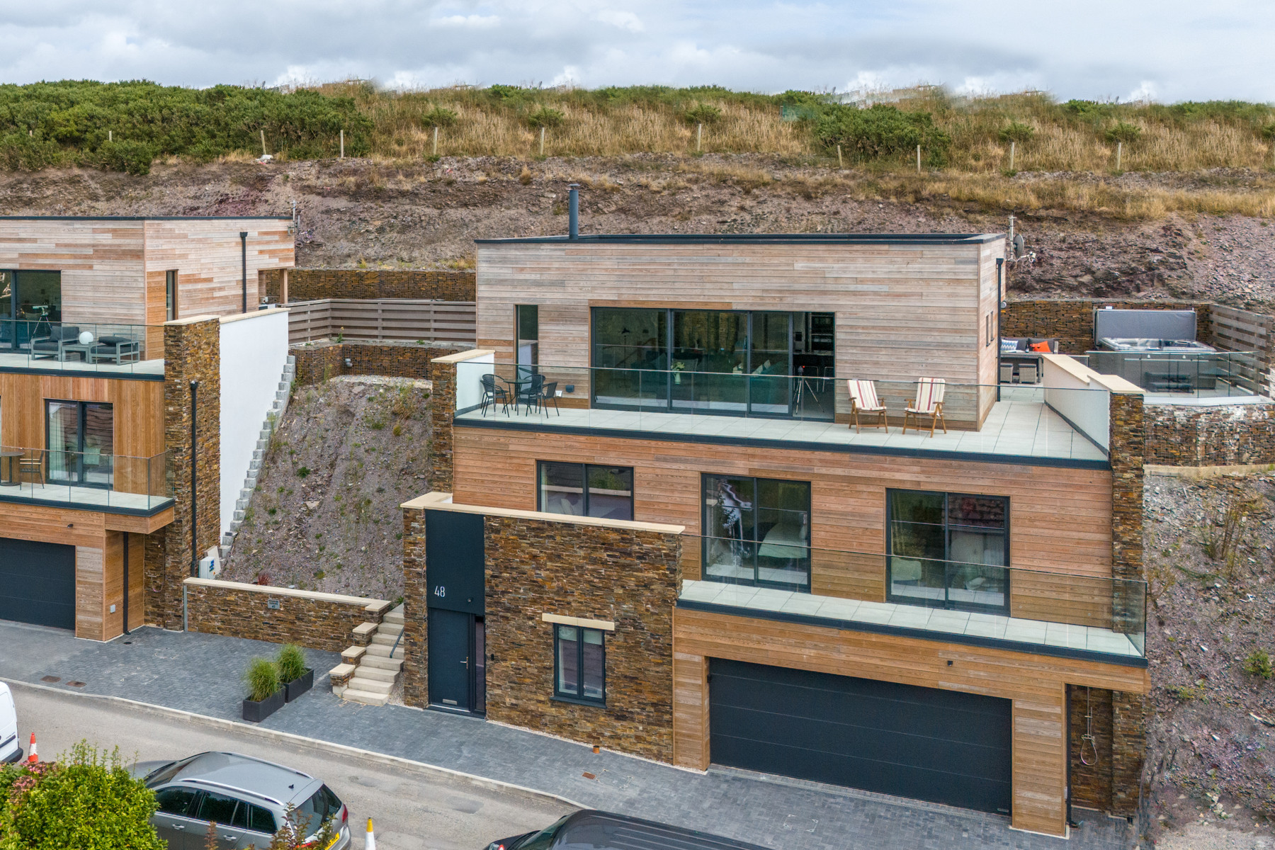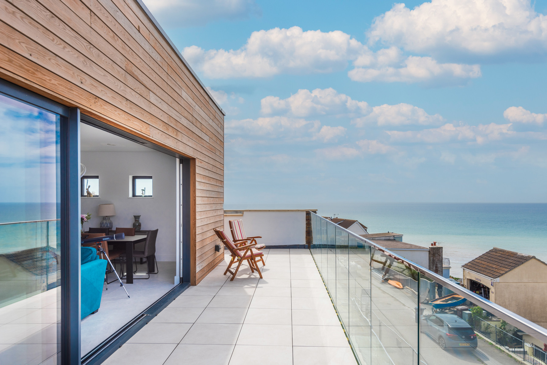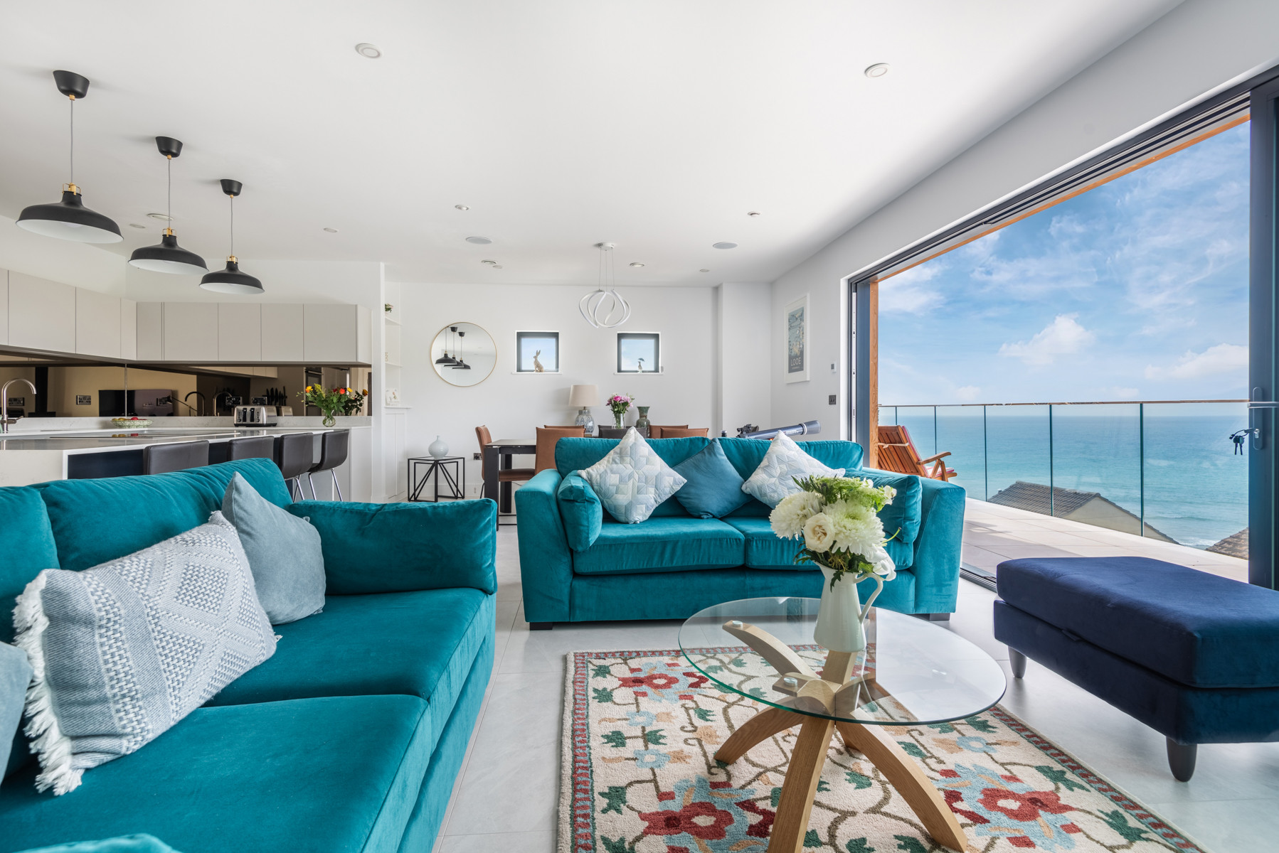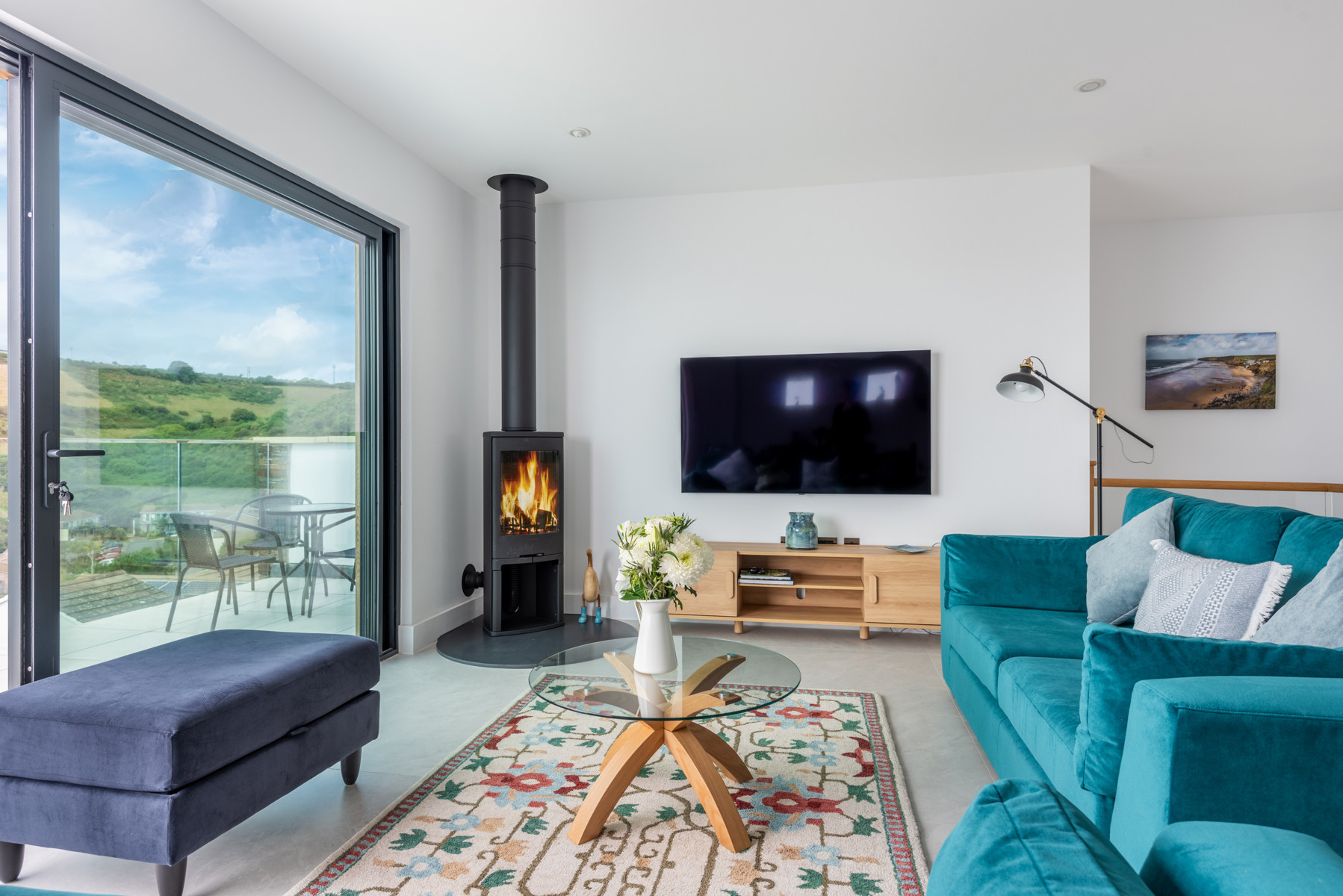 The heart of the home is the bright, open plan living area. Here you can share meals with a sea view, or simply curl up and enjoy the scenery. Step outside and you'll find your own private hot tub, complete with sea view.