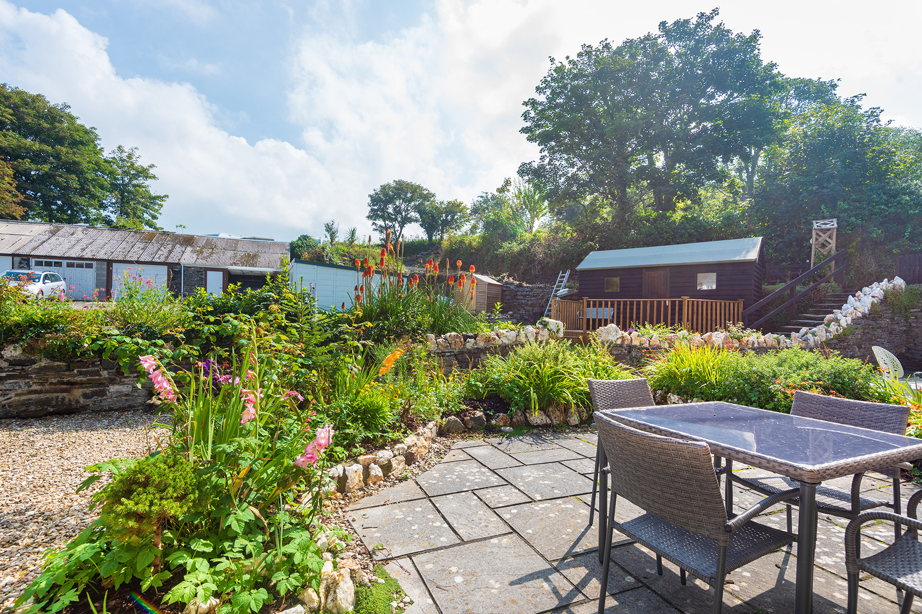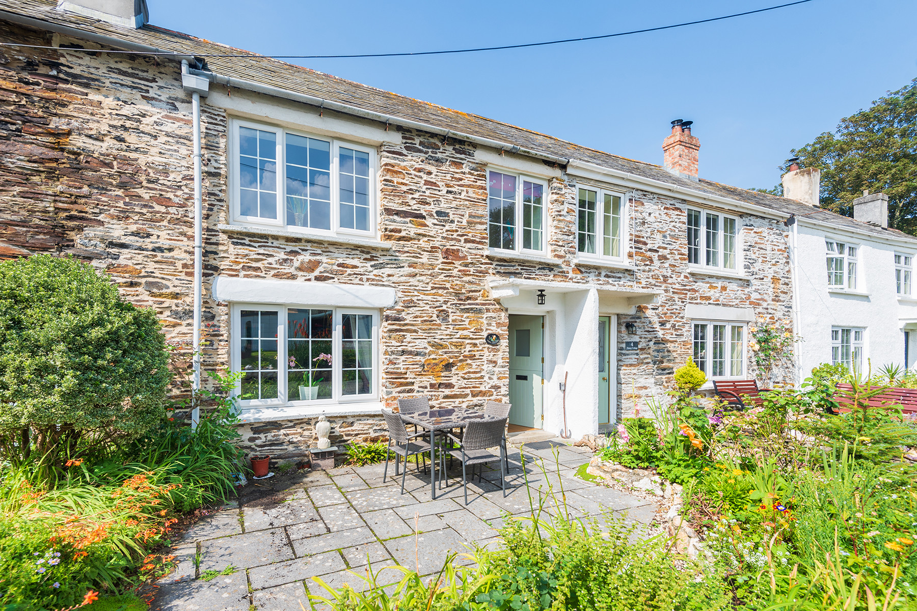 'Ted's Cottage', 5 Penally Court; is a charming little cottage set in a row of 6 terraced cottages, all with paved front gardens with table and chairs, flower beds, a shared lawned area and parking. It has delightful views across Boscastle village from the rear bedroom and kitchen windows and a very comfortable and stylish interior. A National Trust traffic free leafy pathway is just over the road which leads you to the centre of the village and harbour only 4 minutes' walk. This three bedroomed cottage is accessible to all the magic that this North Cornish coast offers, Boscastle itself, Tintagel, surfing at Widemouth bay and the stunning coastal path only minutes from this property, a super holiday cottage.