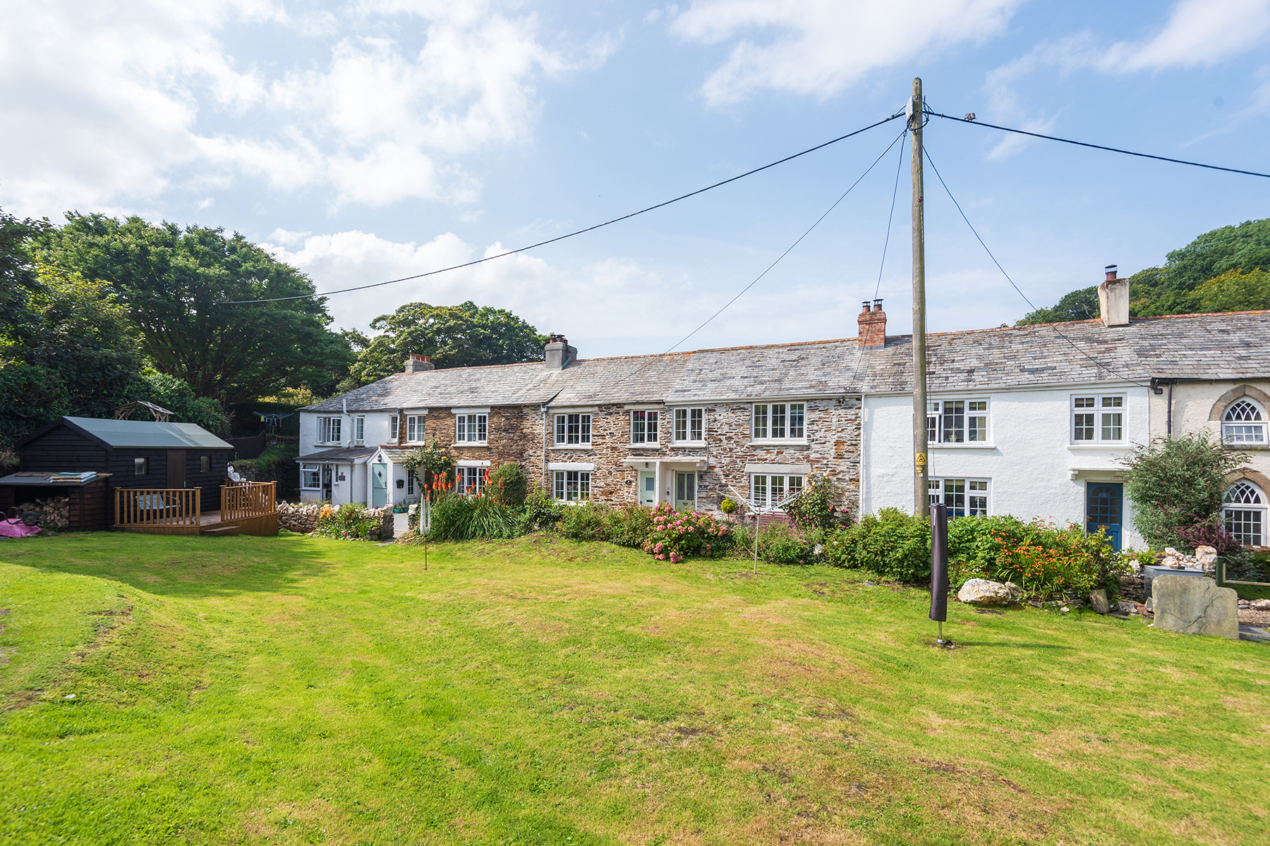 A communal lawned area in front of all of the cottages.