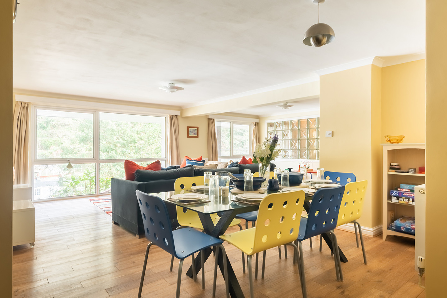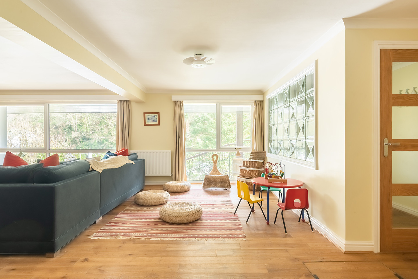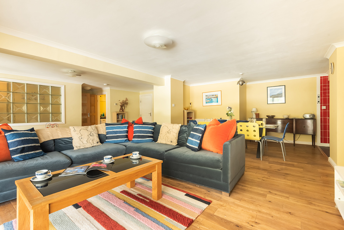 living accomodation with large picture windows letting in plenty of light and views across the glorious abundant terraced garden.