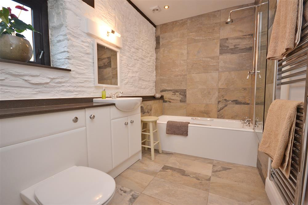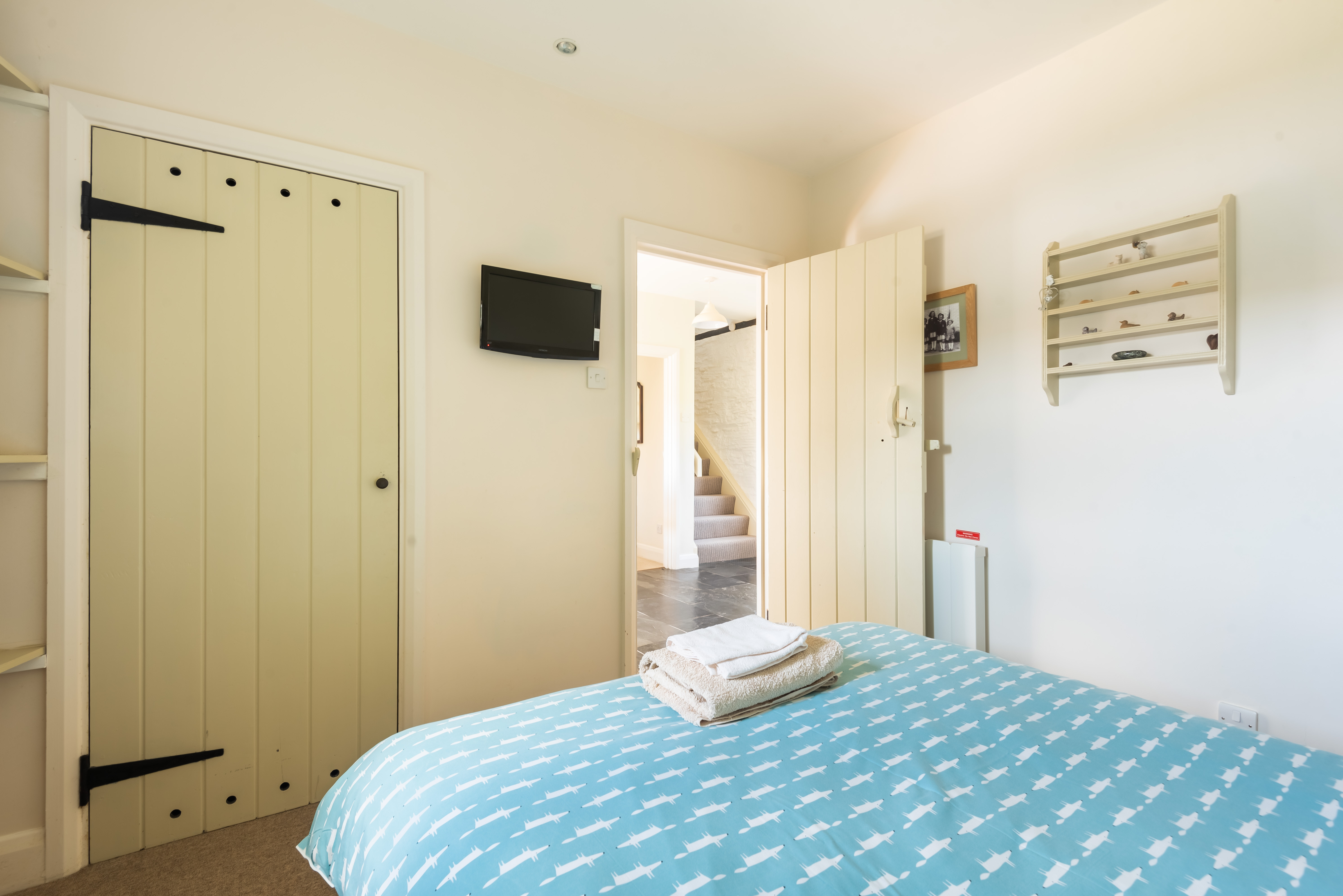 This cottage is reverse level, overlooks the pretty courtyard garden and has a ground floor entrance lobby with bedrooms on the ground floor. Spacious hallway. Double bedroom with 3ft zip linked beds. Twin bedroom with 3ft beds. Bathroom with bath, shower over, basin and WC. Stairs lead up to a spacious living room with a very large four-seater sofa, two chair beds and dining table to seat 6, TV/DVD and the kitchen at one end. French doors open to a balcony with country and courtyard views.