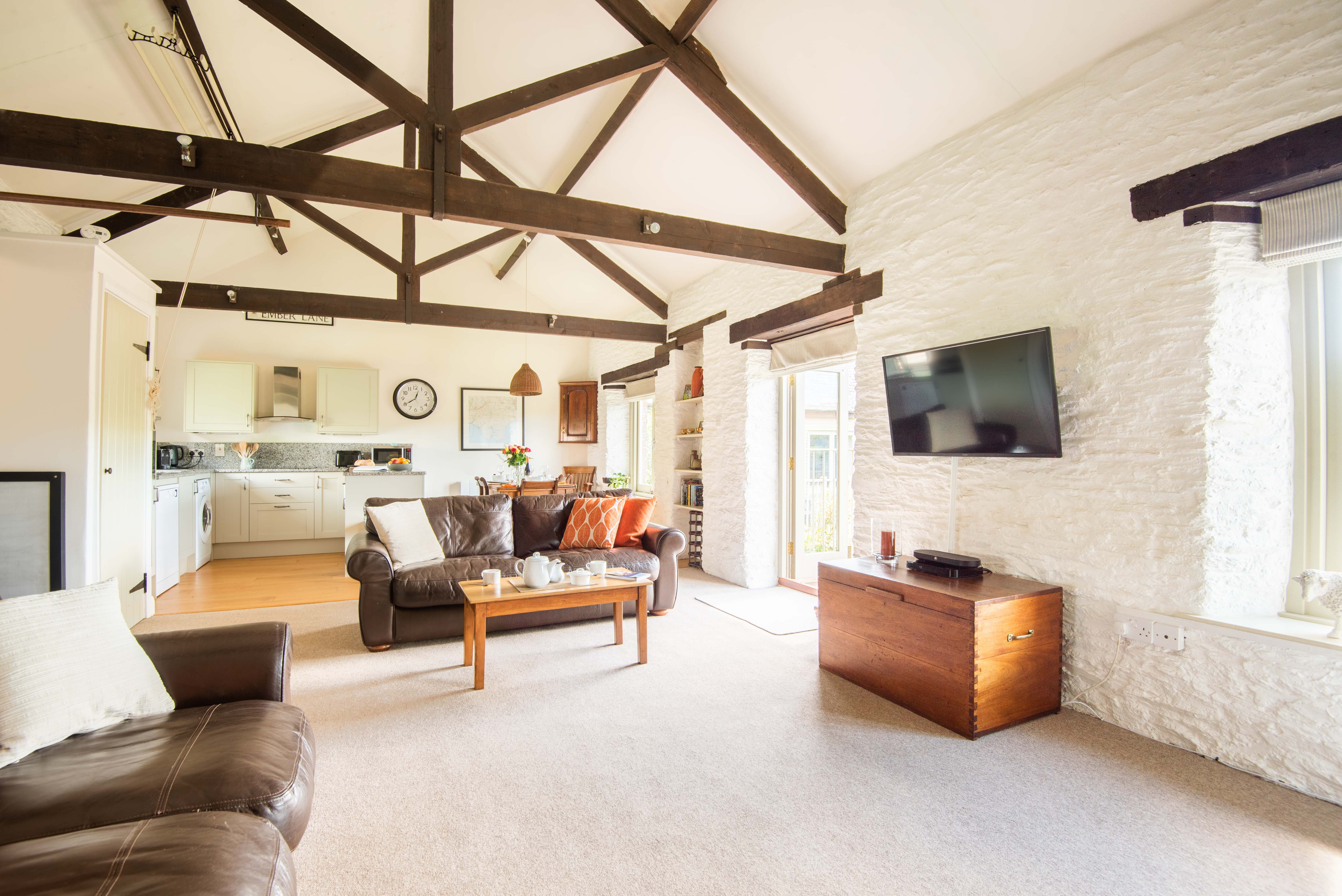 Court Barton No.10 is light, spacious and ultra-stylish. The high ceilings with exposed beams, underfloor heating, comfortable furniture, well equipped kitchen and cosy log burner all ensure guests will have a relaxing stay in this beautiful cottage.