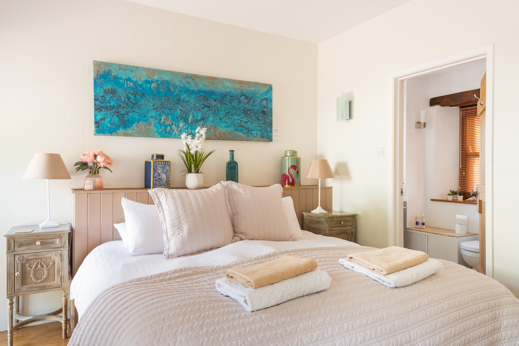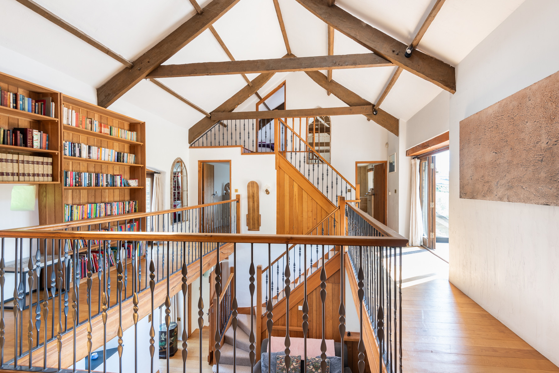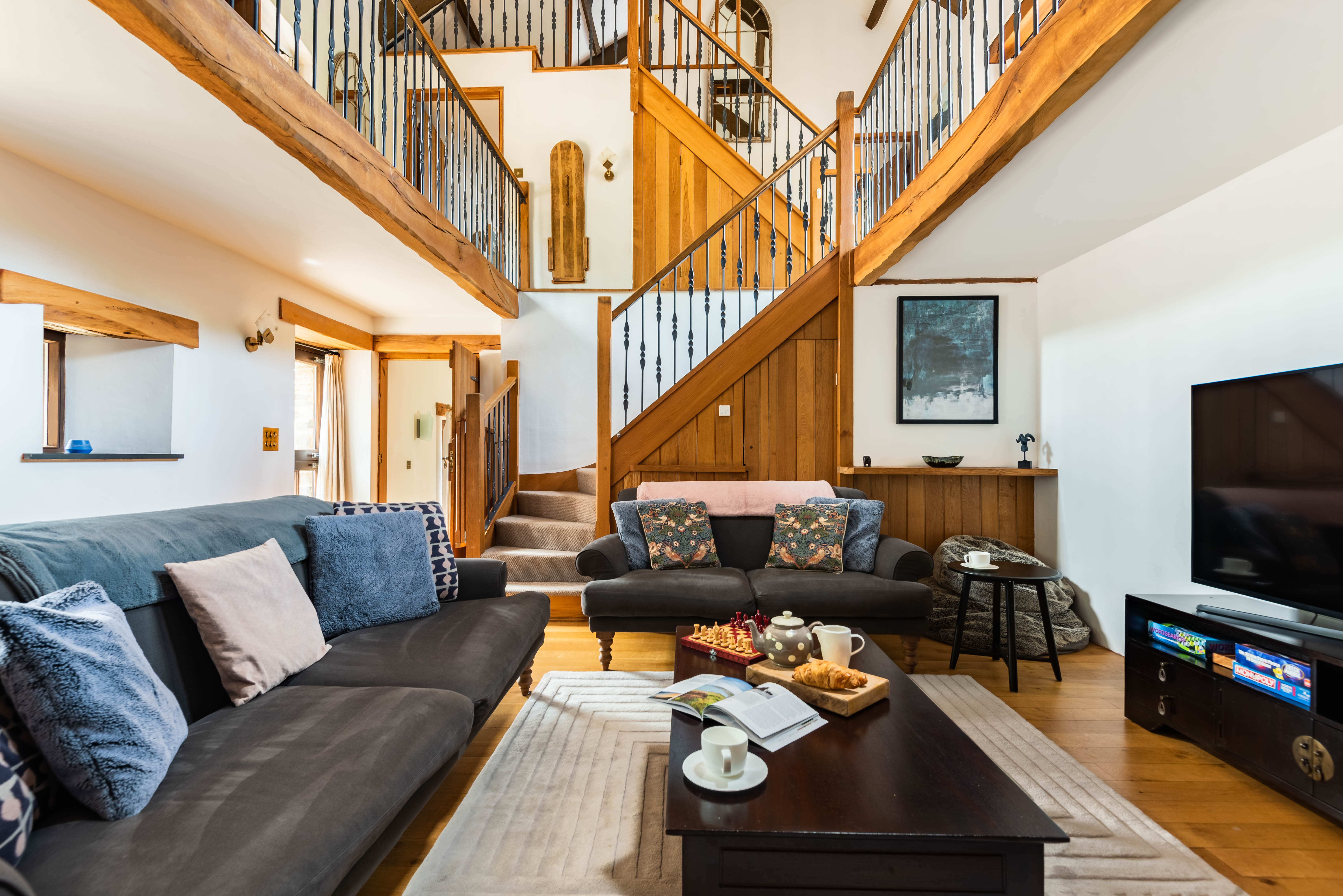 With five well-appointed bedrooms, The Old Barn comfortably accommodates twelve guests, making it perfect for families and friends seeking a spacious retreat. Inside, triple-height ceilings, exposed beams and stone walls create a light-filled and characterful space, while the open-plan living area provides a wonderful setting for family gatherings or getaways with friends.