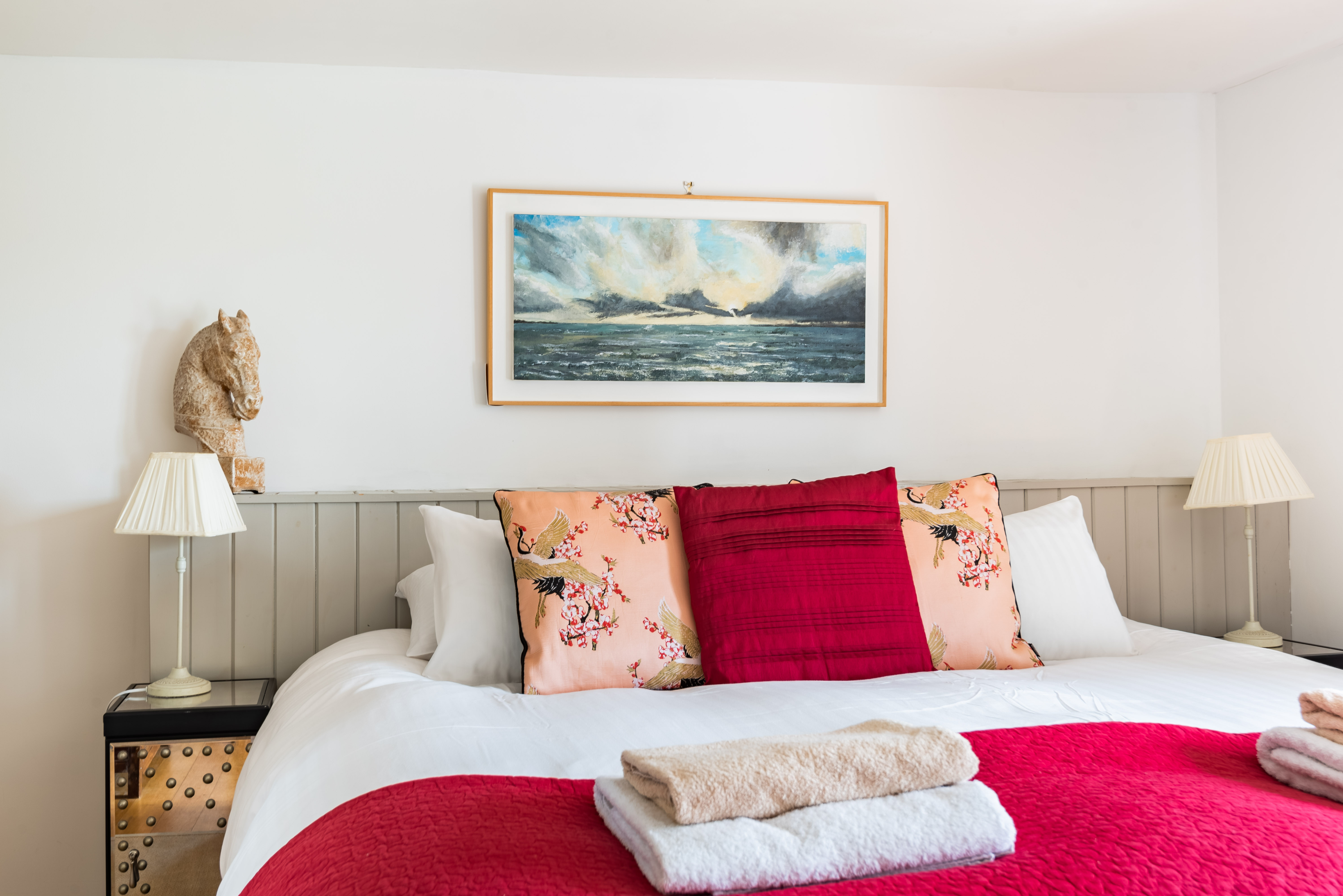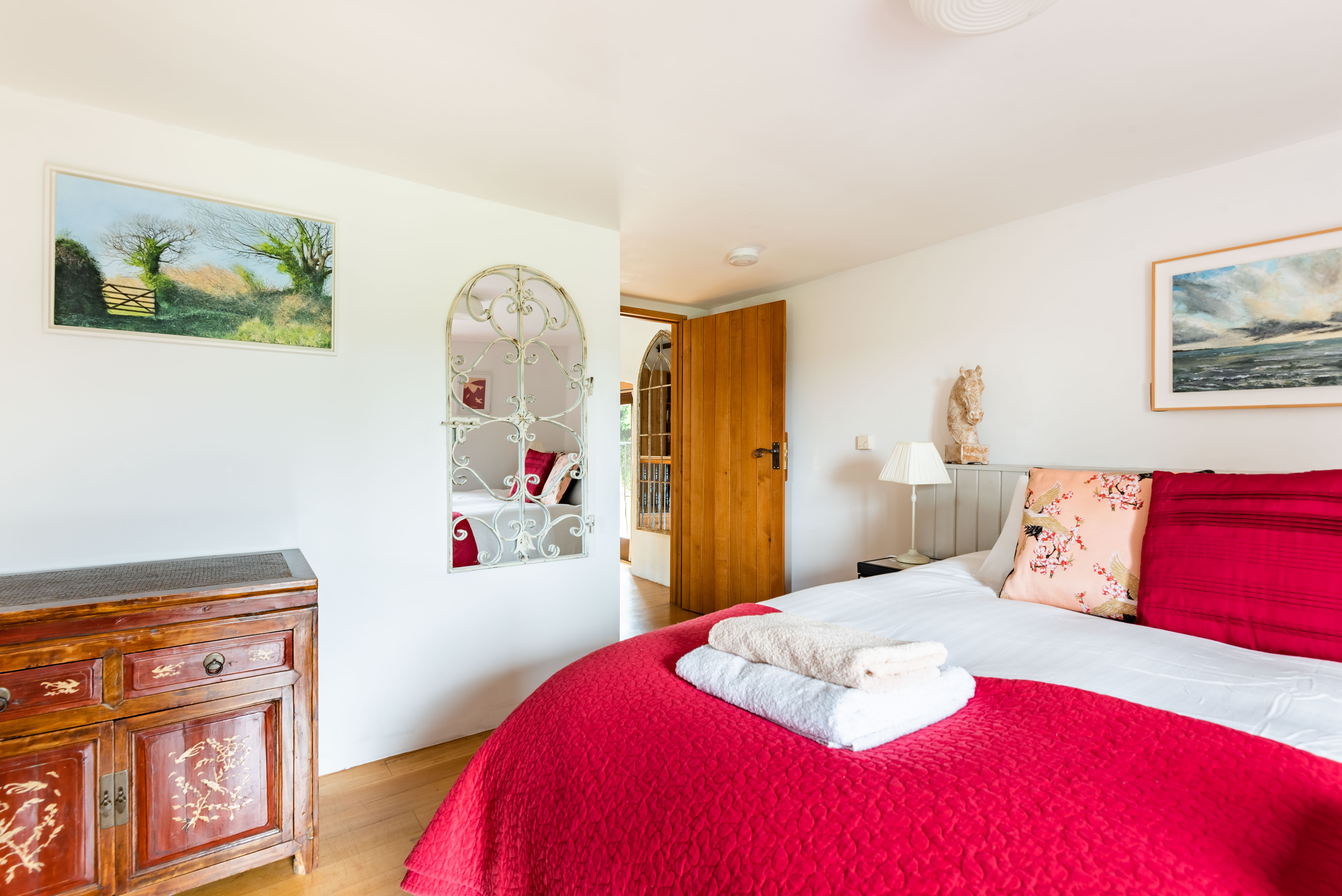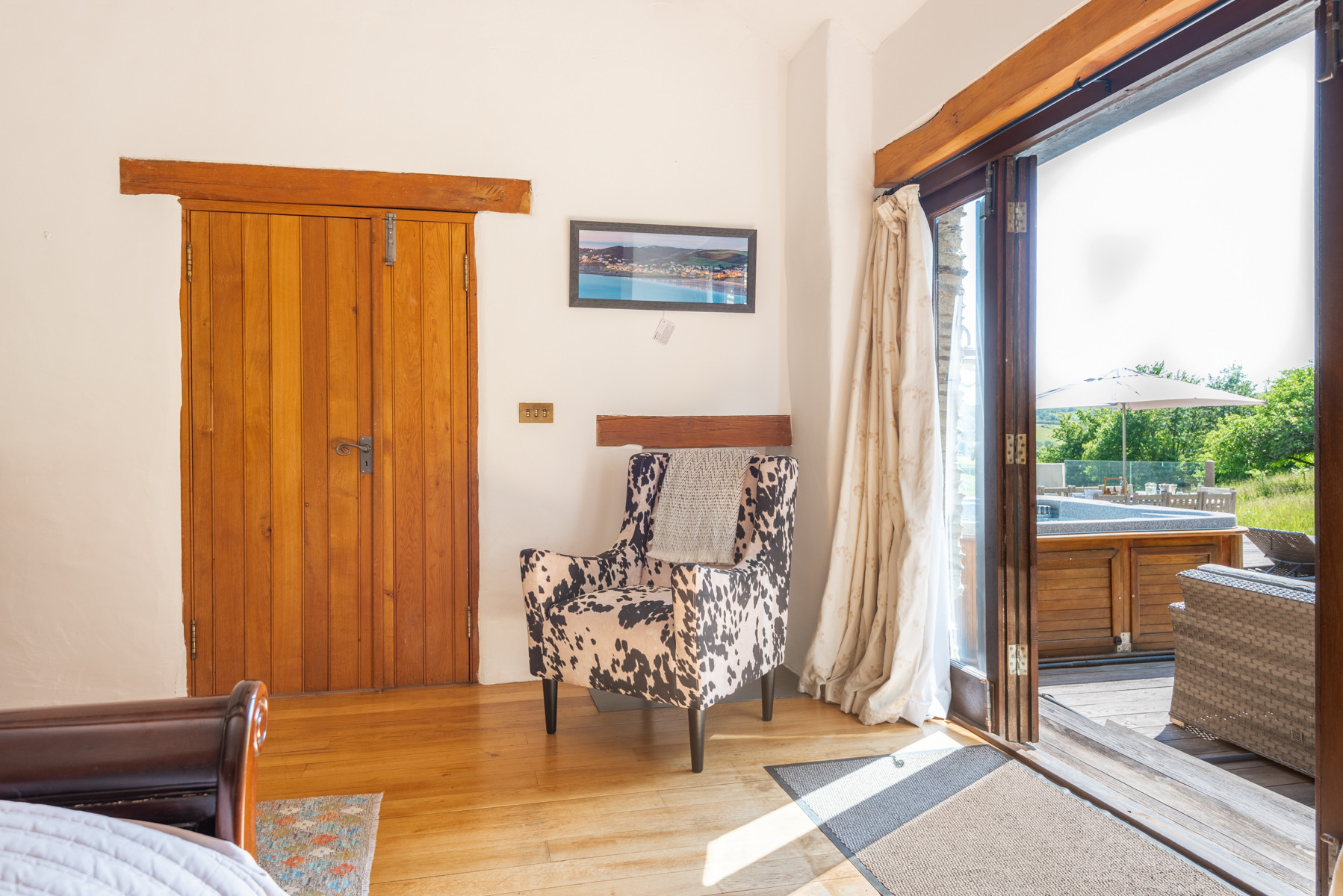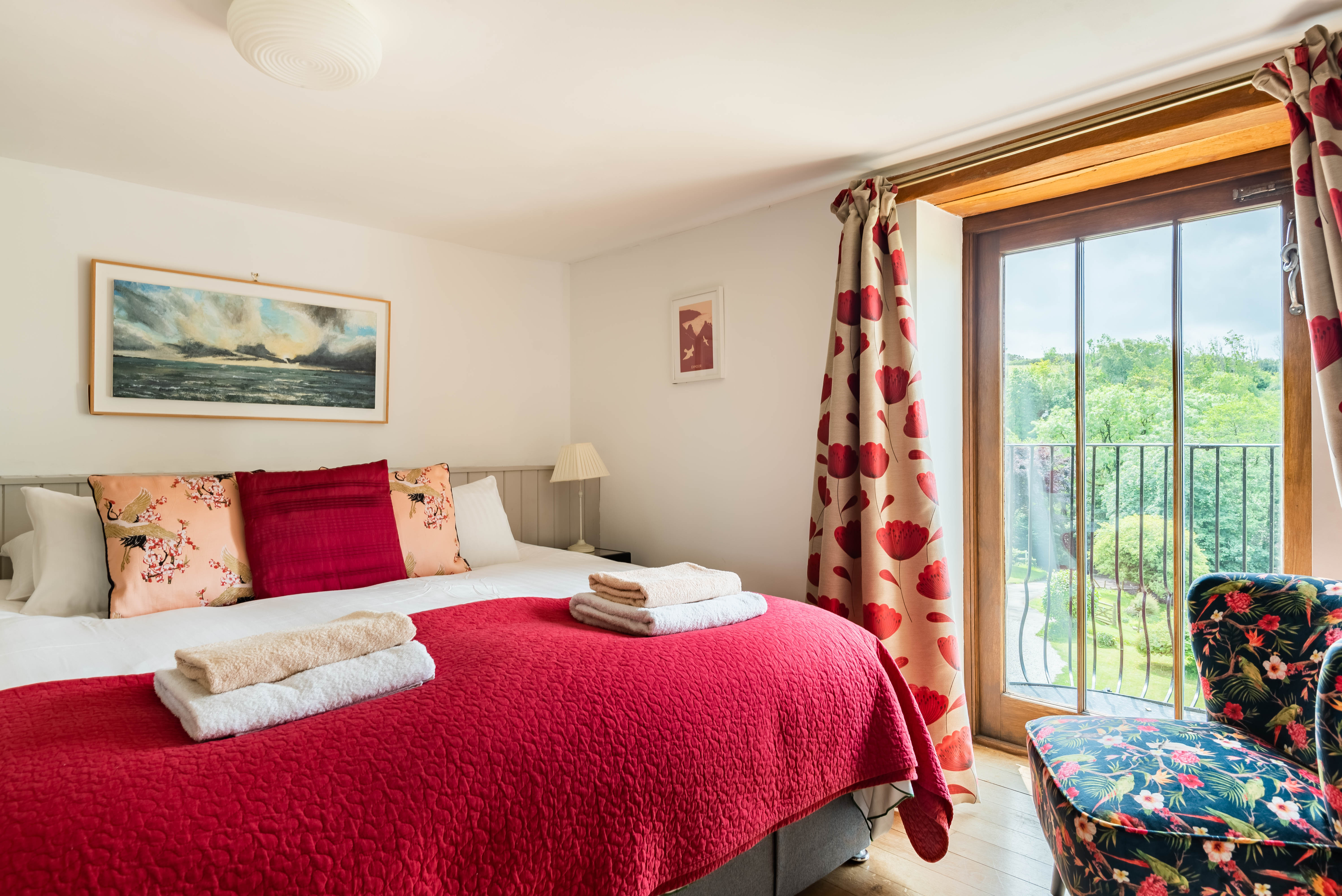 Master suite with super king-size bed, dressing room, and Juliet balcony with direct access to deck