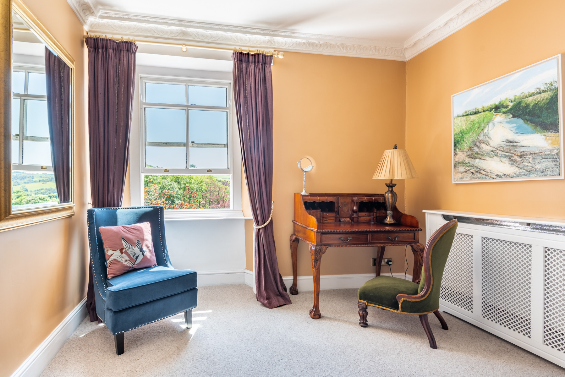 Second sitting room accessed via a secret bookcase door – Smart TV and a large selection of books and games- a fun Agatha Christie–style twist!