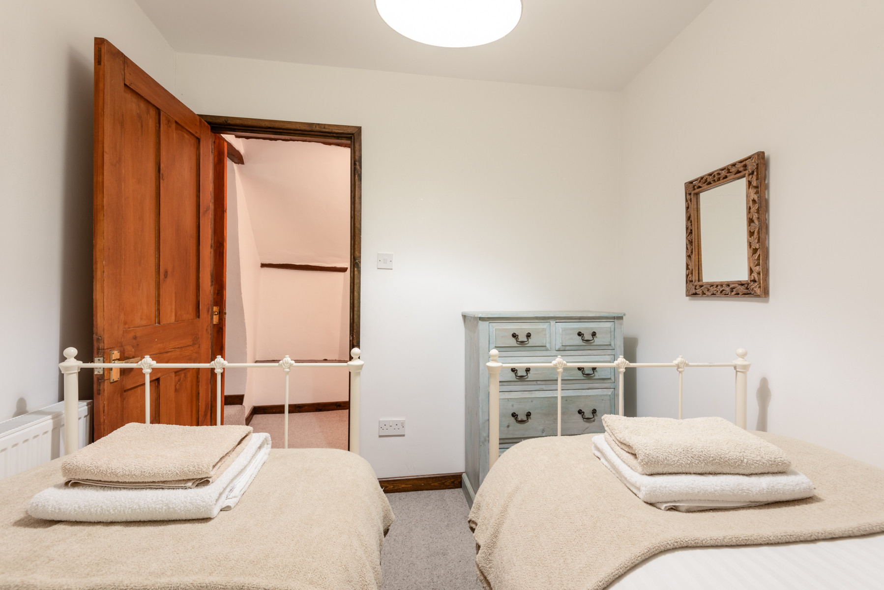 Bedroom 3 : Twin 3ft single beds with rear facing views.