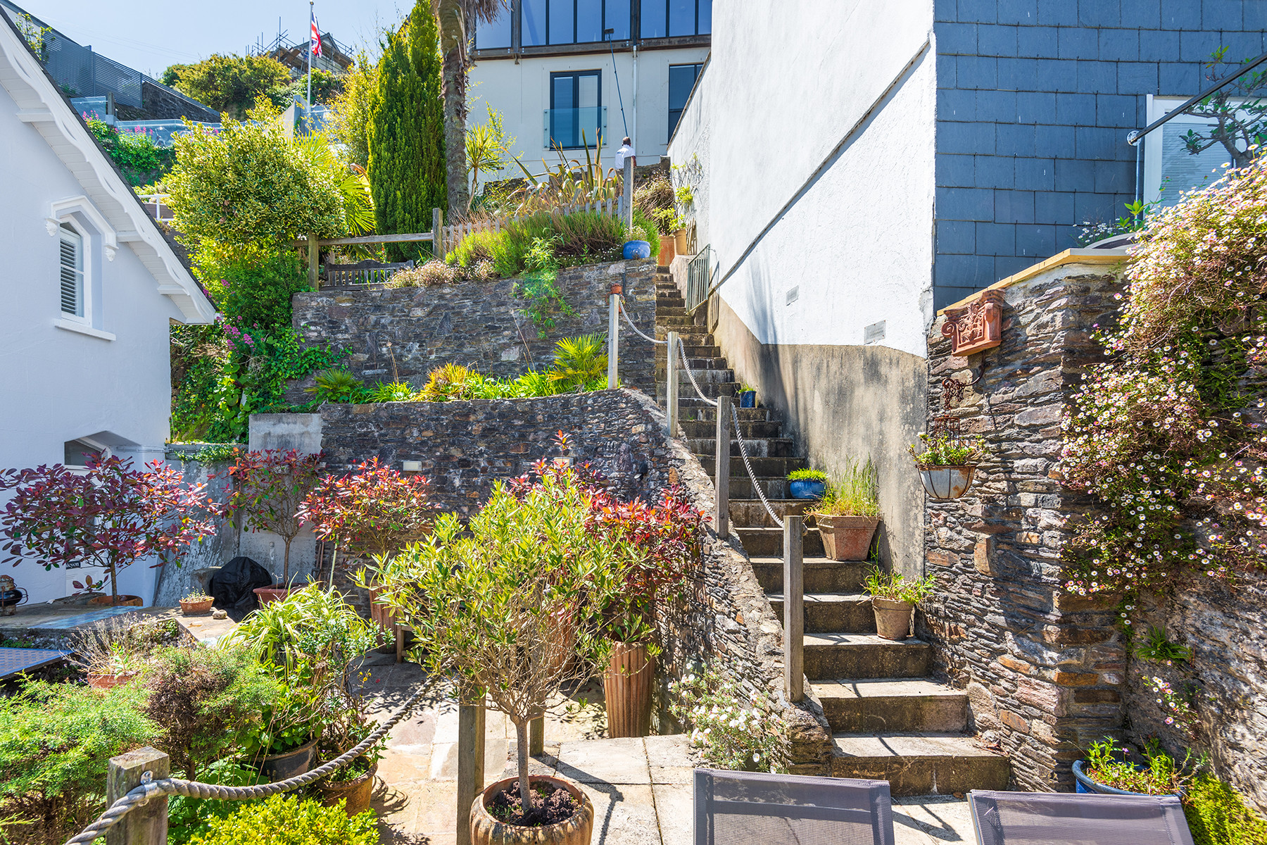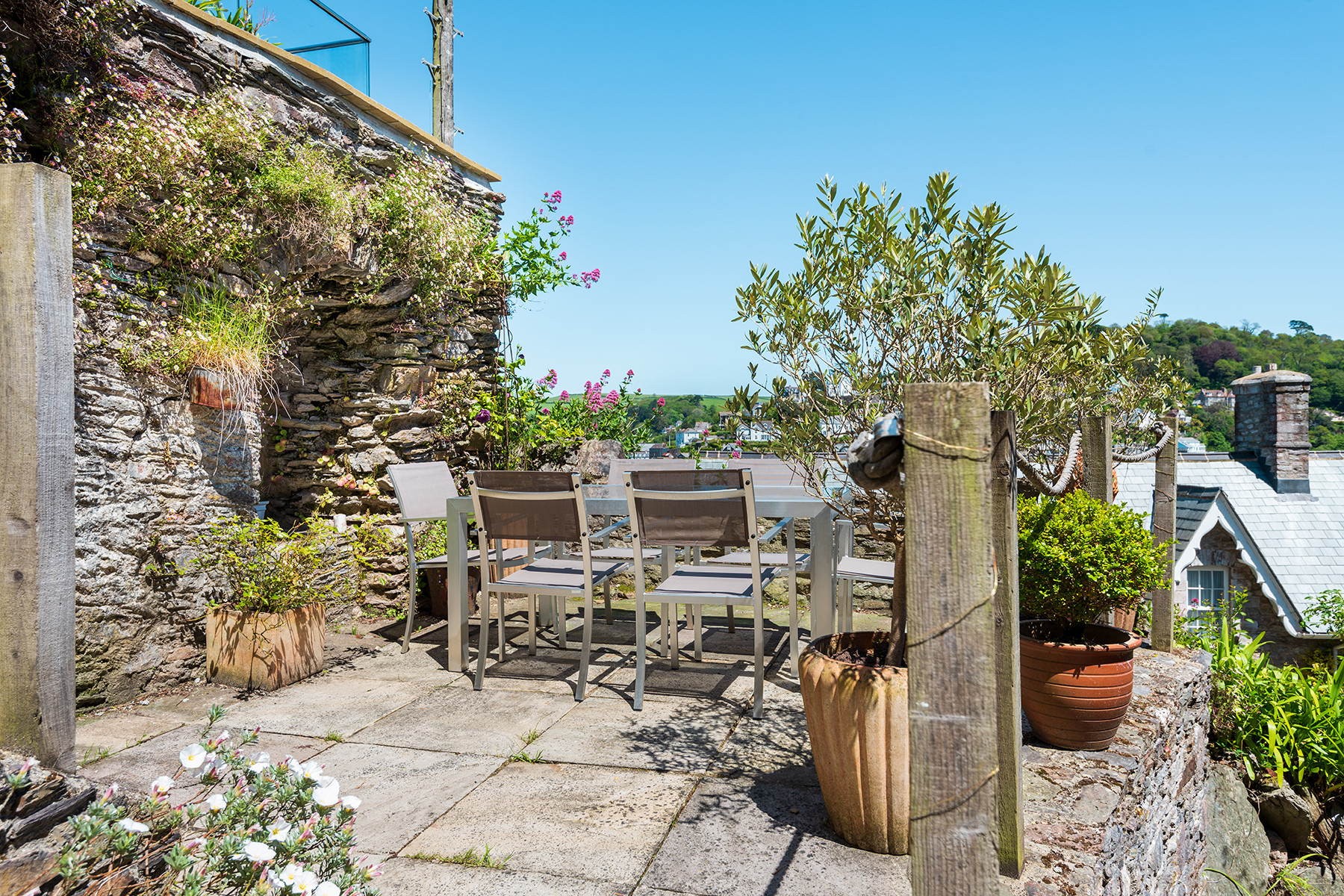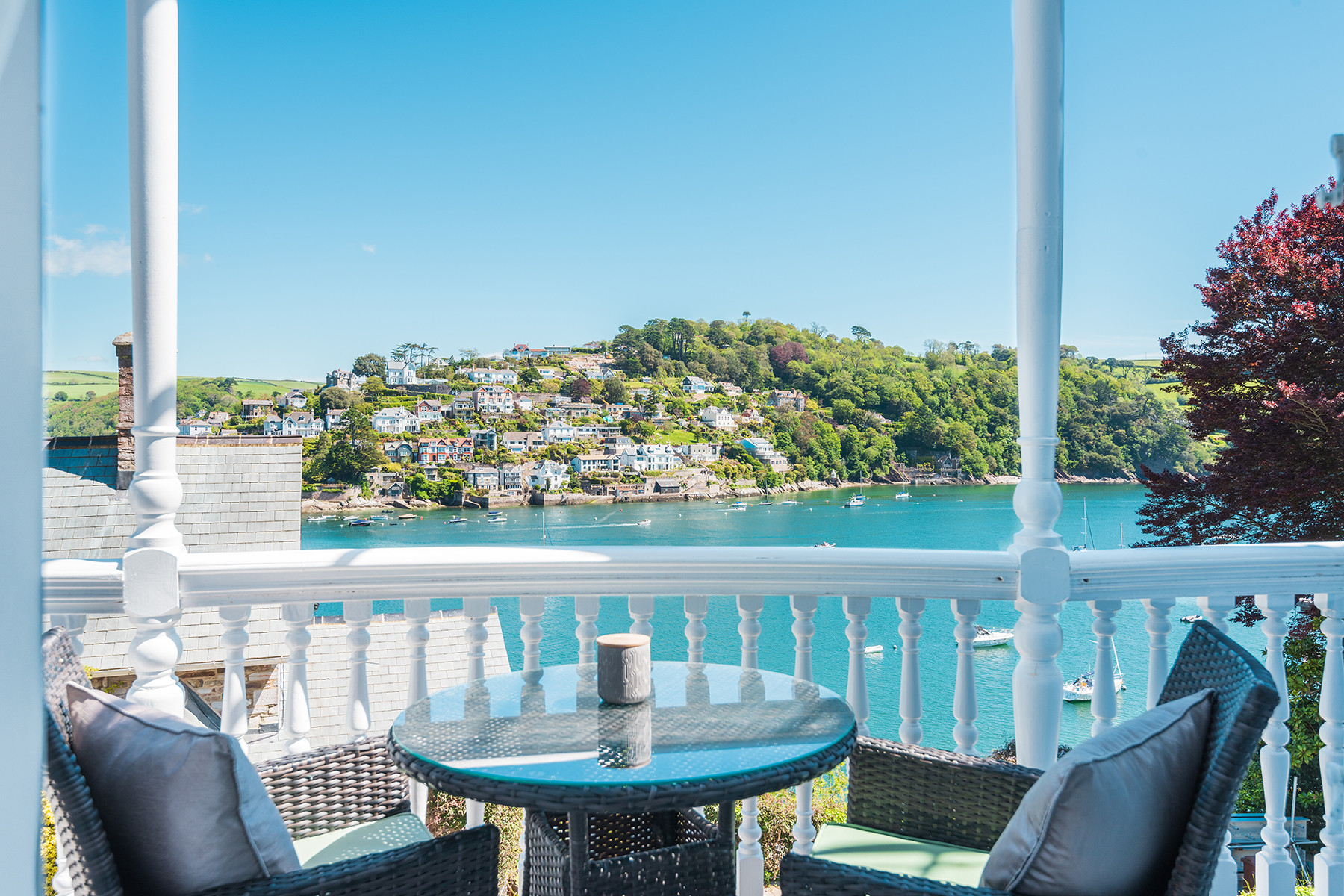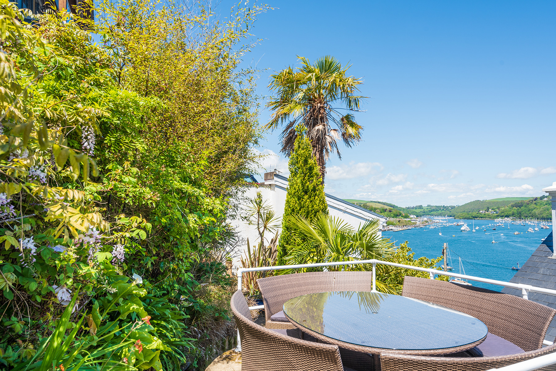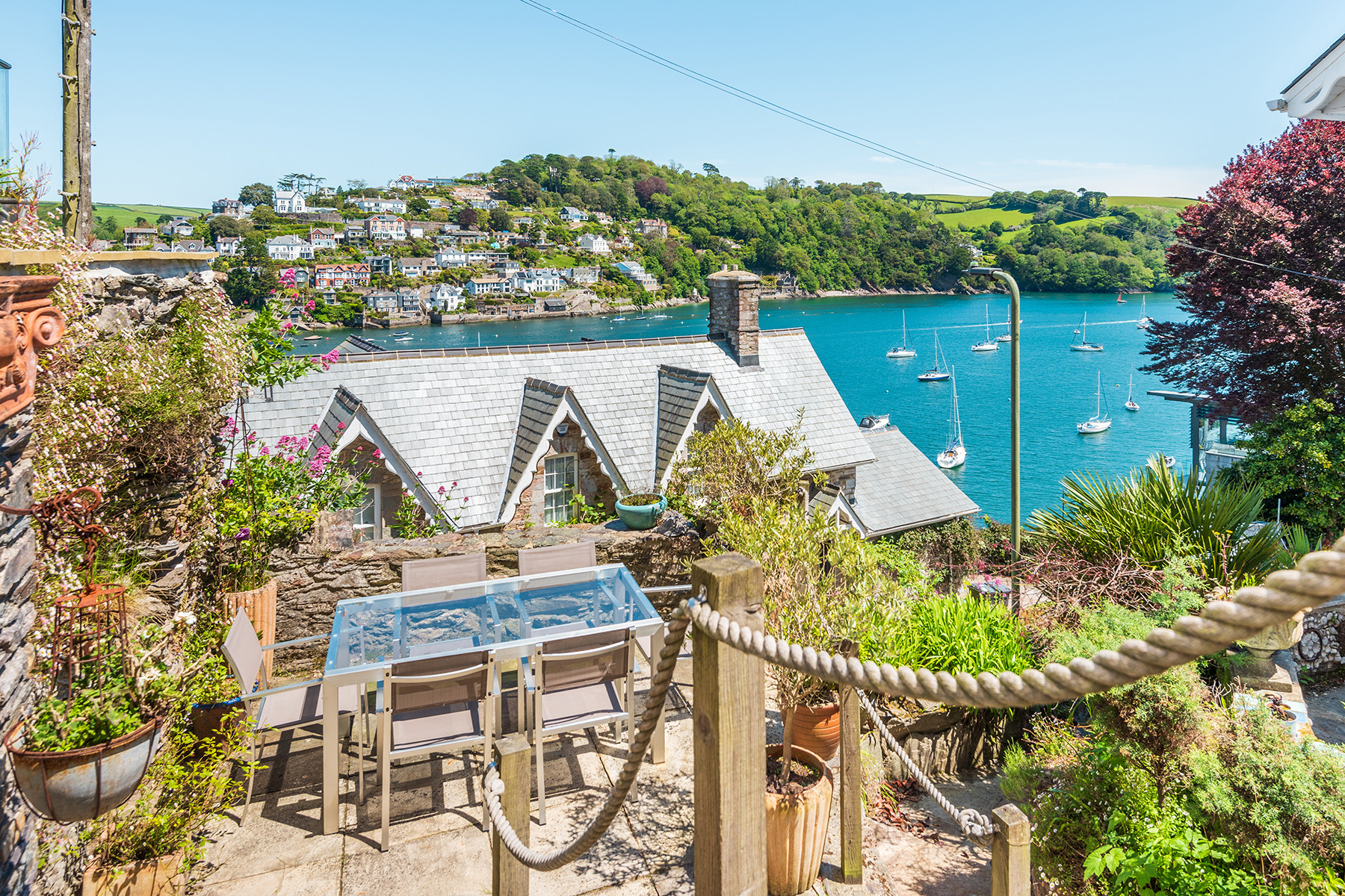 The property itself allows its guests to relax in comfort and style, boasting attractive original features alongside stylish and contemporary specifications and furnishings. Guests can entertain in the large well-equipped modern kitchen, traditional yet sophisticated dining room with feature fireplace, as well as come together in the bright, elegant sitting room with its digital entertainment systems and access to the properties water facing front balcony. Living and dining flexibility is offered by way of an extra fully-equipped kitchen and dining area on the top floor with its spectacular river views. Throughout the property all of the bedrooms are thoughtfully presented and the bathrooms have been finished to a contemporary spec. The property boasts an array of different outside seating areas across its landscaped terraces.