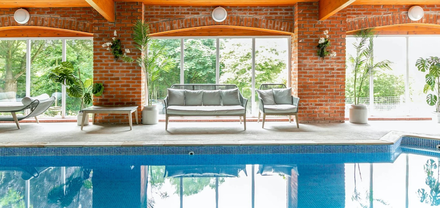 Short stroll to the shared indoor swimming pool building