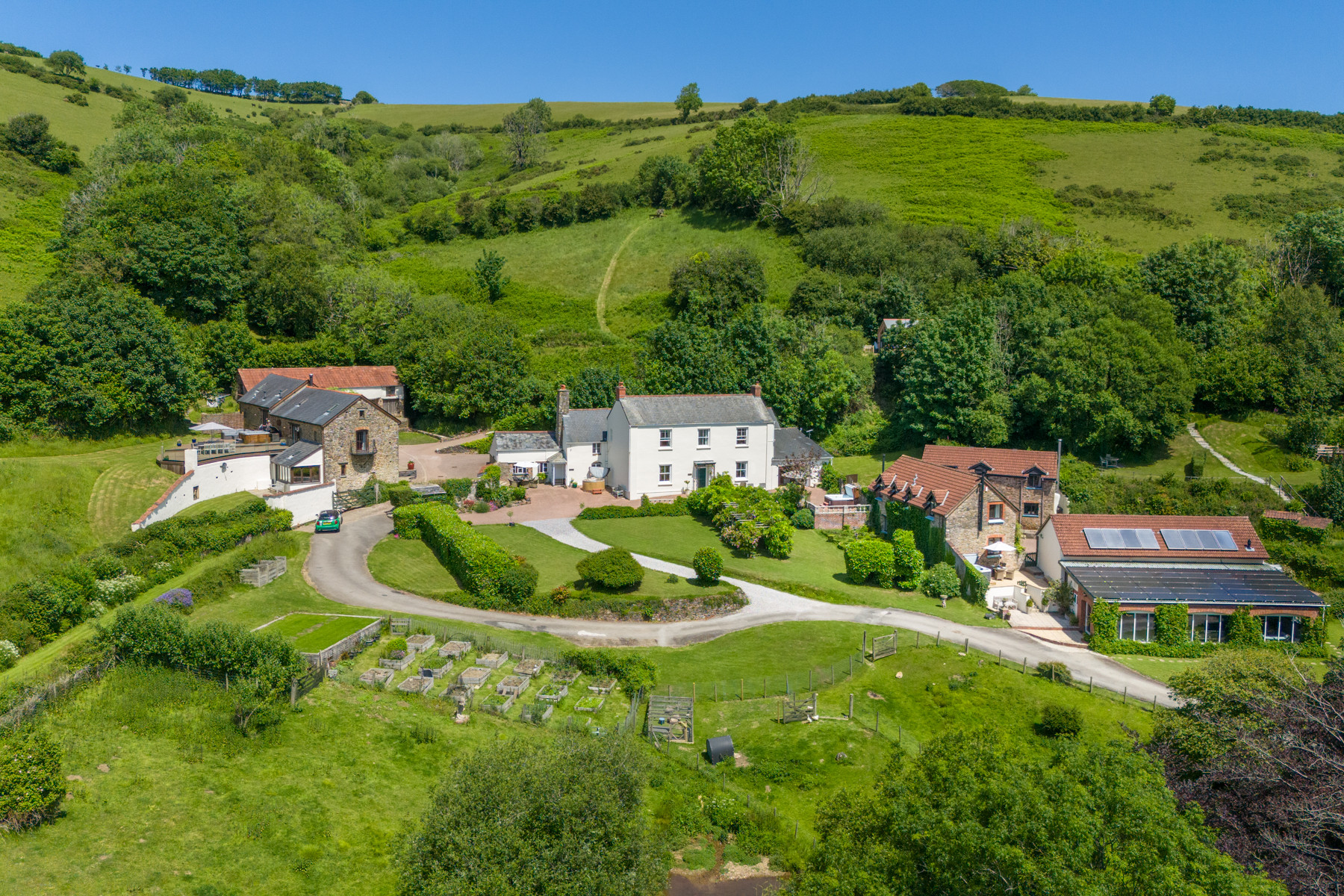 Guests have full access to Coulscott’s 20 acres of grounds — with meadows and streams, woodland trails, over 50 friendly animals, and safe places for children to roam and play. There’s even a 5 acre dog walking meadow at the end of a beautiful grass path, for off lead enjoyment.