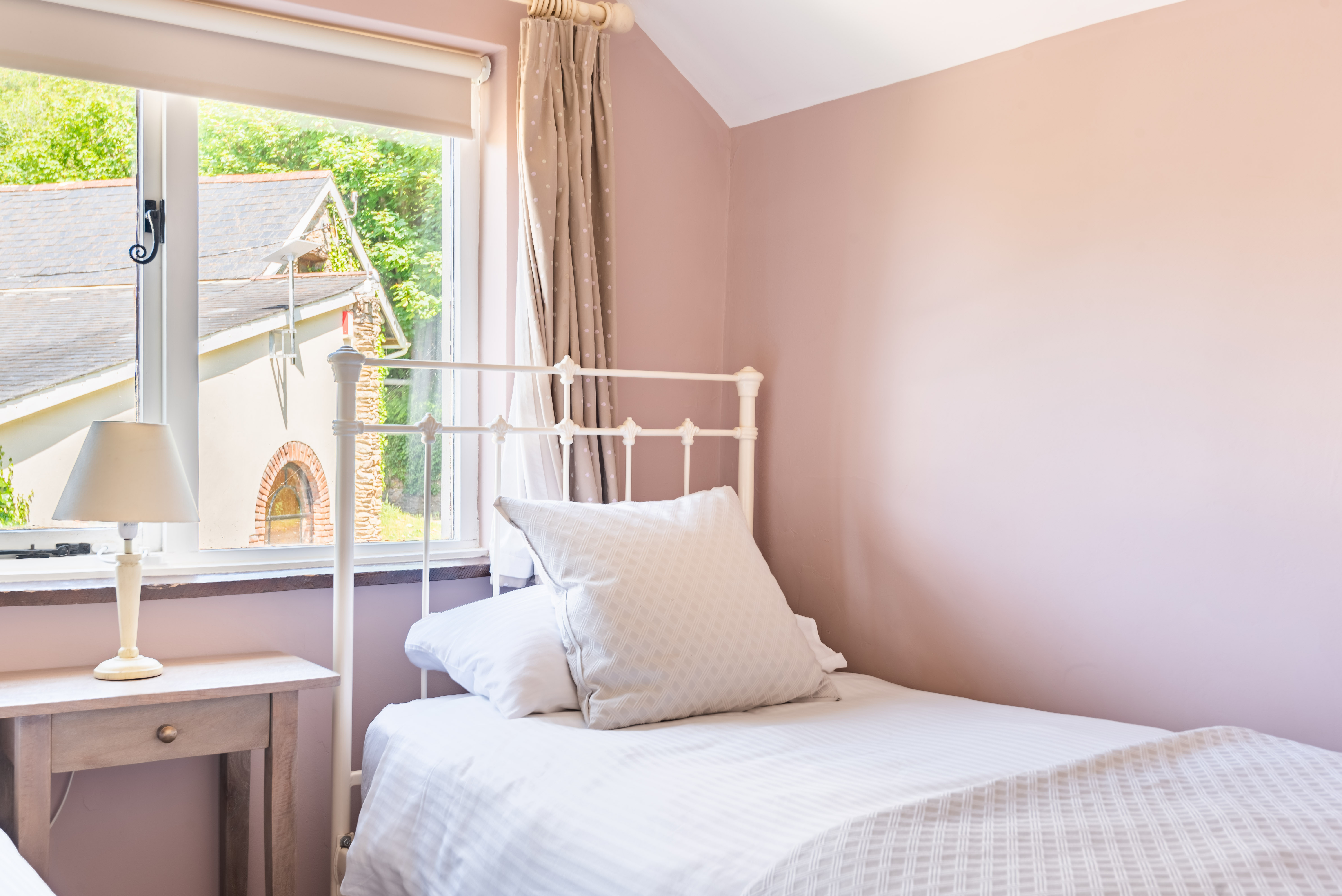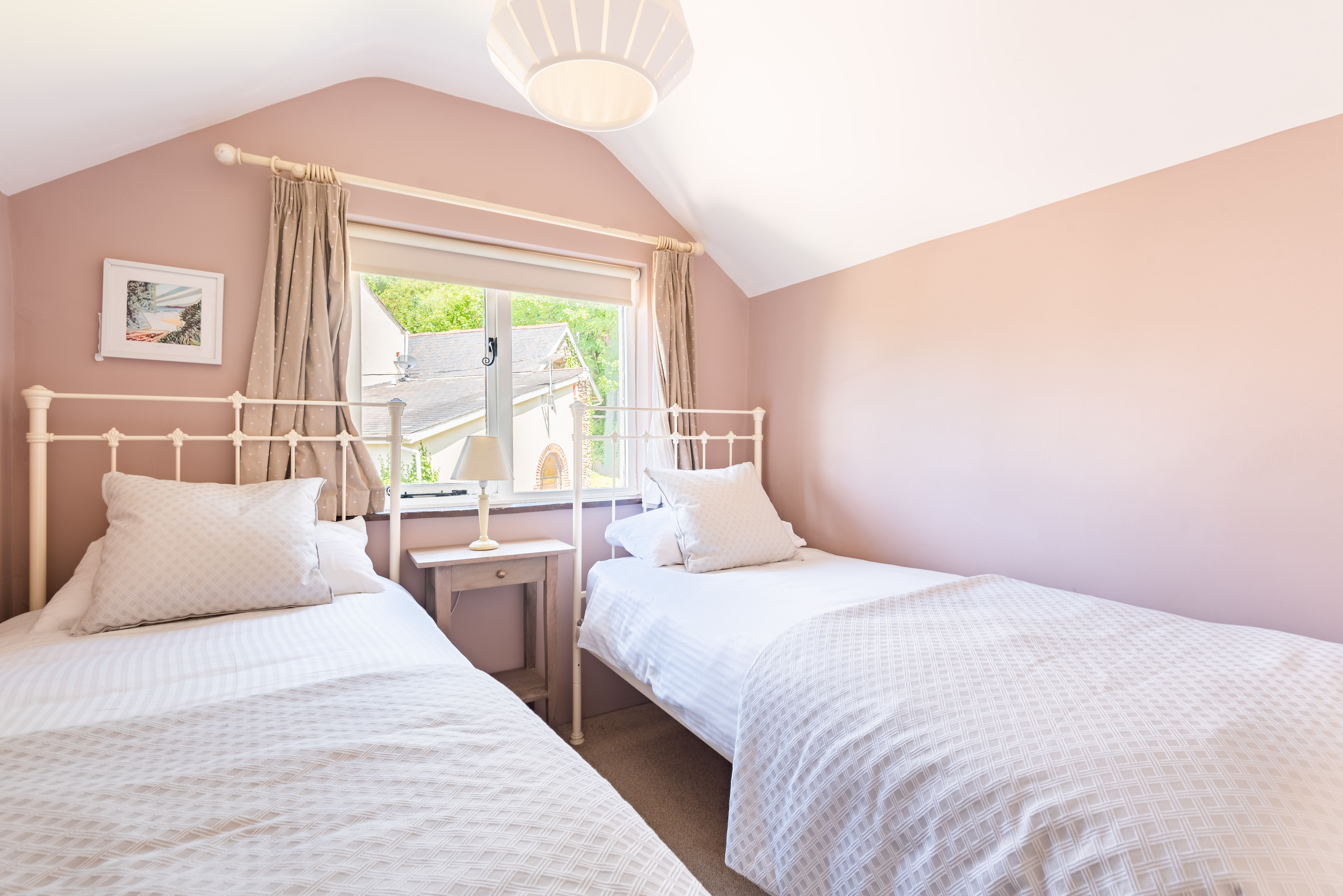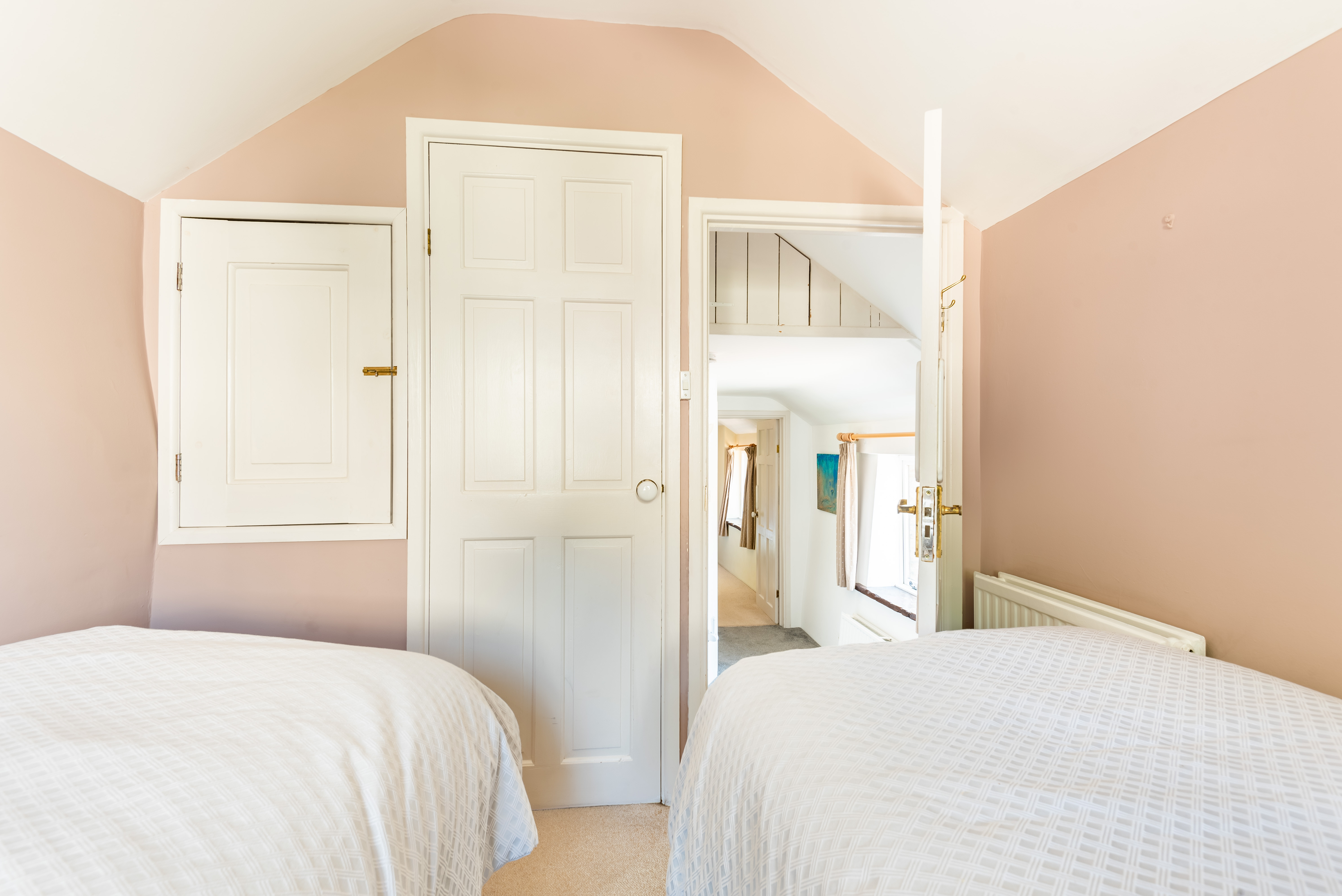 Bedroom 2 – Twin 3ft single beds, built in closet, garden views