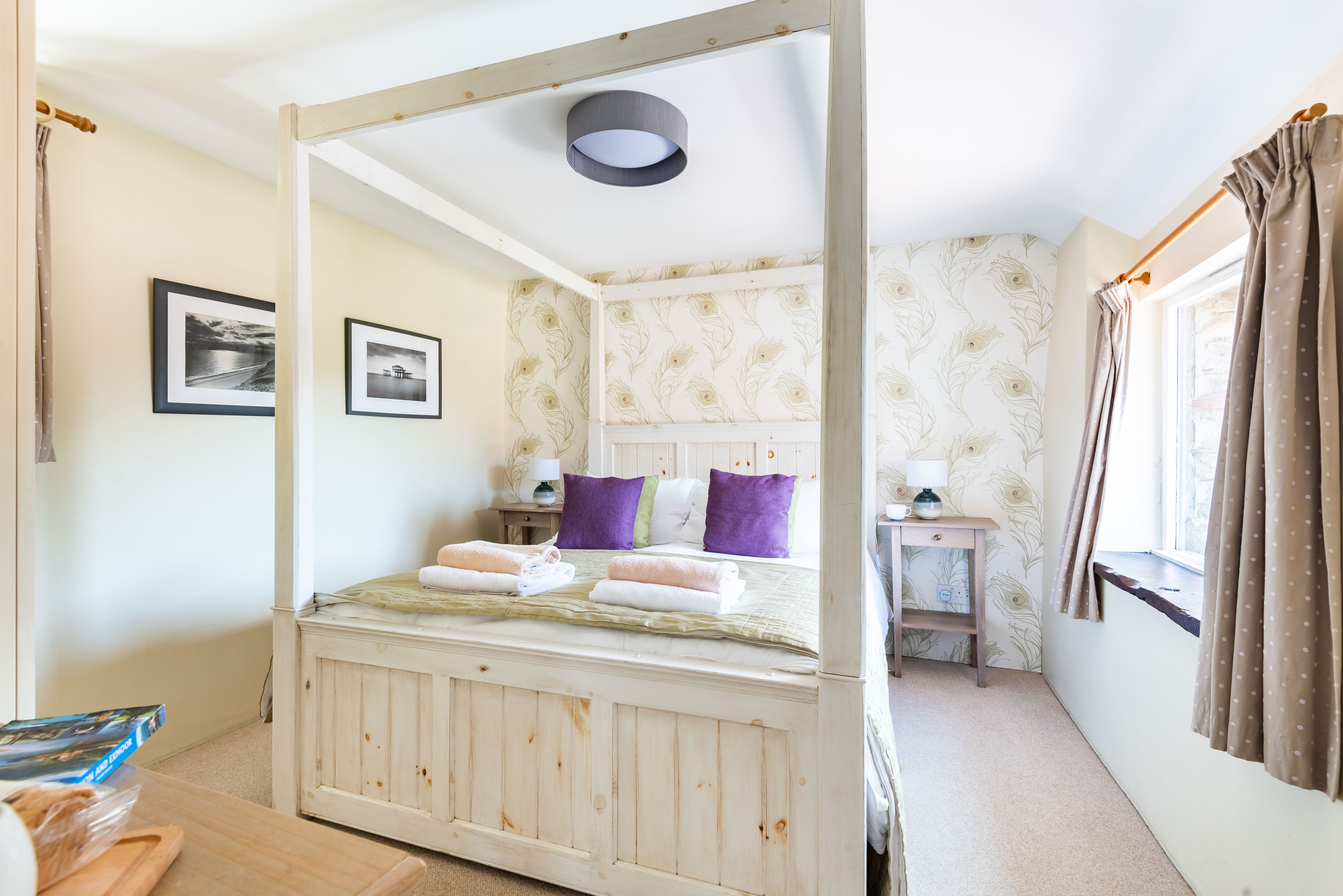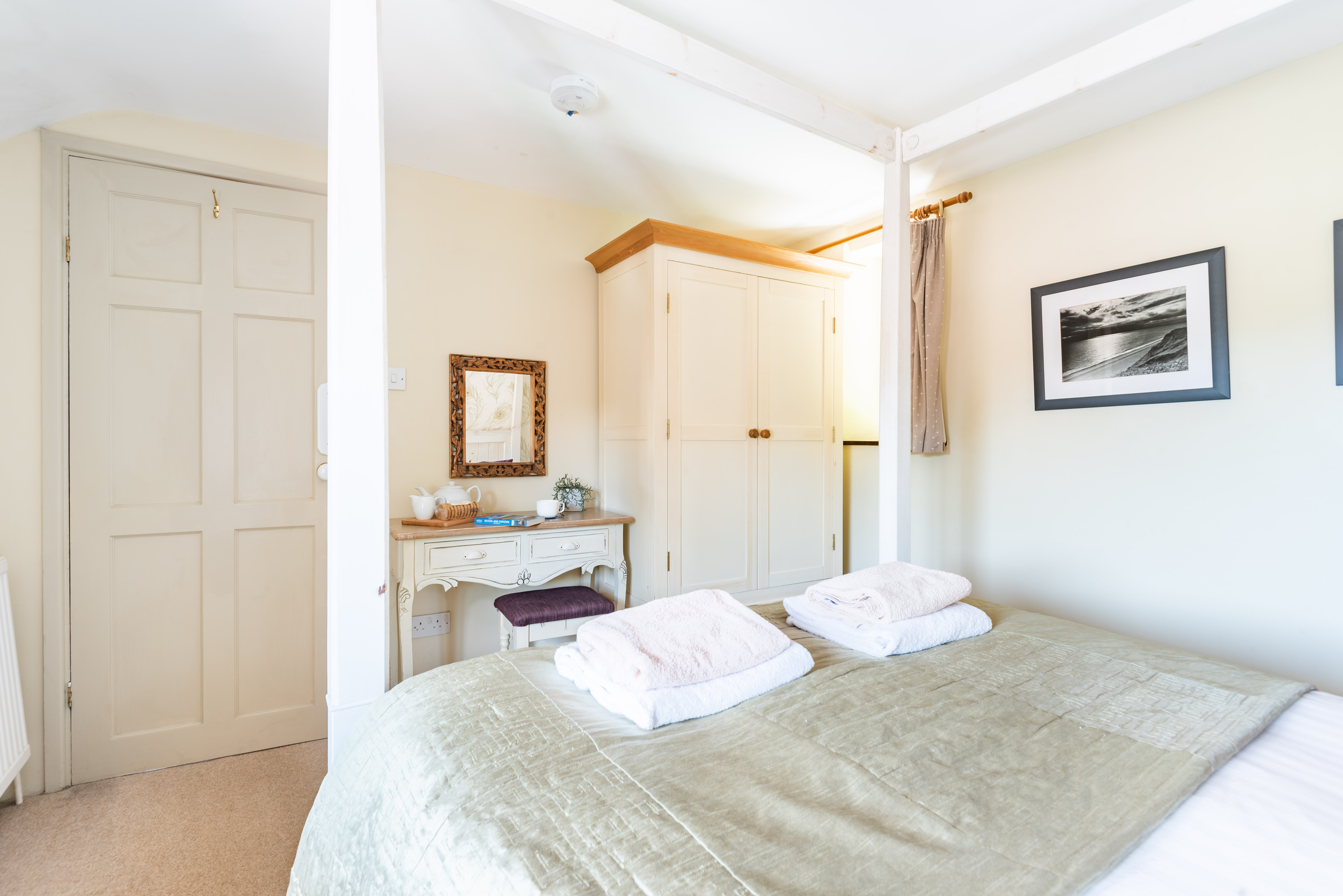 Bedroom 1 – King-size 5ft four poster bed, dressing table, wardrobe, lovely valley views
