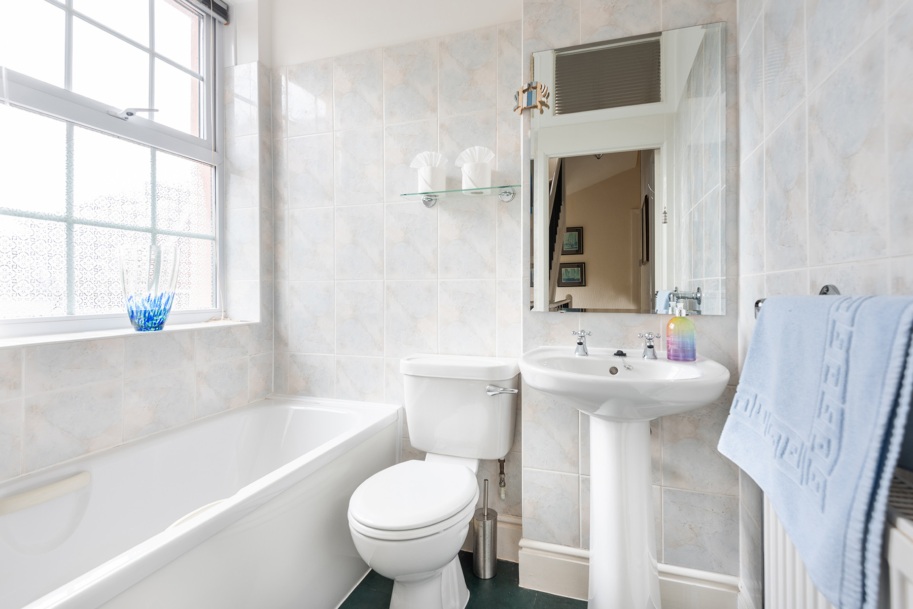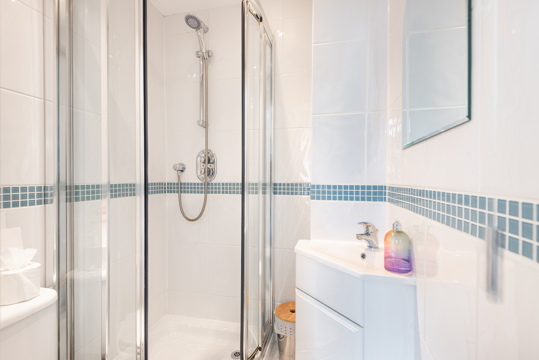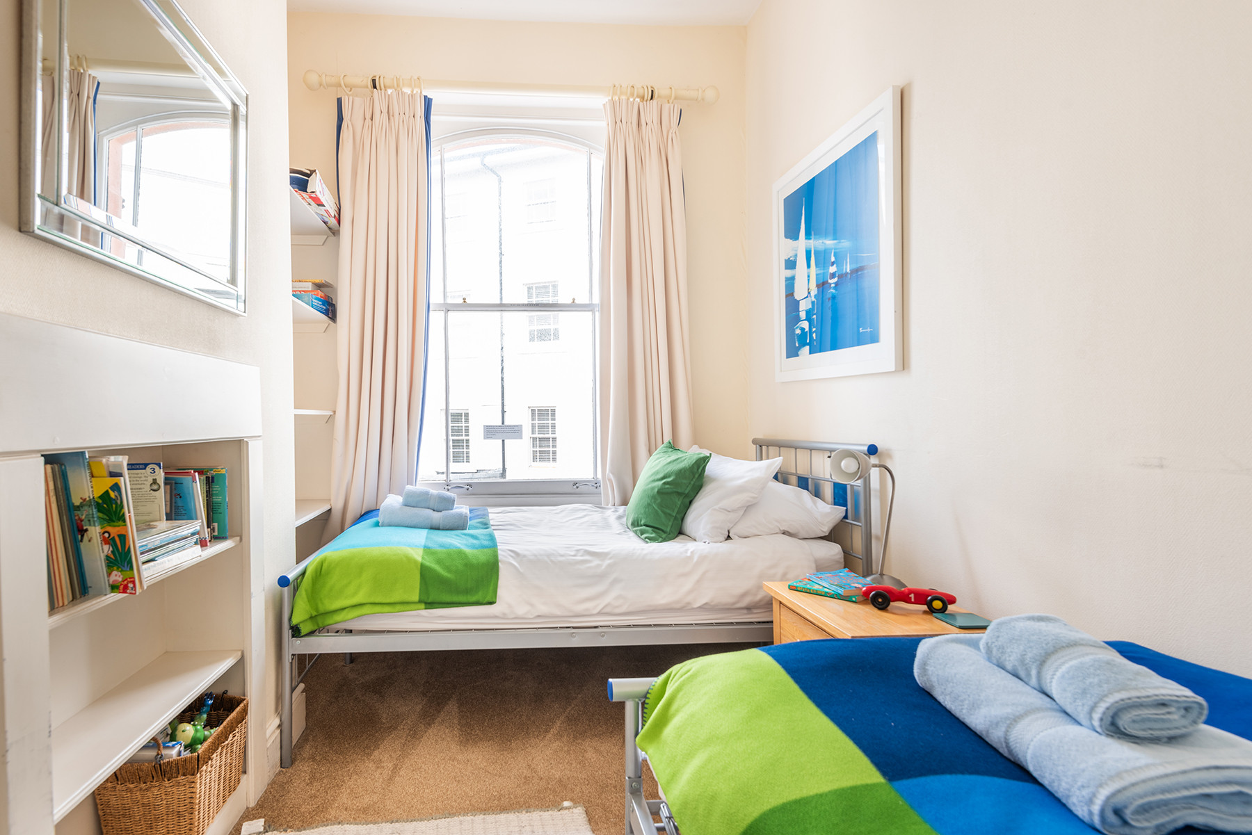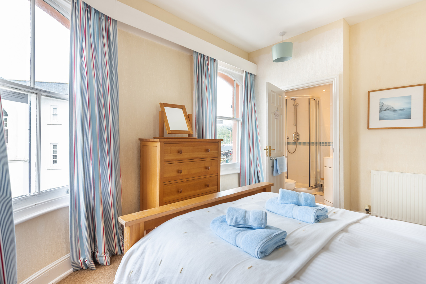 Front door into reception hall with door access through to a small garage and bathroom with bath with shower over, basin and WC. Spacious, attractive modern kitchen and dining area, with views over the river, extremely well fitted with an extensive range of cupboards and equipment. Electric oven and hob, two fridges, freezer, microwave, dishwasher, washing machine, tumble dryer, music system and TV, dining table to seat 8 and window seats from which to enjoy the views. Stairs to landing and the comfortable living room, furnished with two 3 seater sofas, two armchairs, flat screen TV with digital Freeview and DVD, CD/stereo and marble fireplace with electric flame effect fire. Twin bedroom with 3ft beds, fitted cupboards, river views and adjacent second bathroom with bath, basin and WC. Access from this level to the private terrace. Stairs to the top floor and fine master bedroom with 5ft bed, superb river views and en-suite shower room with shower, wash basin and WC. Second double bedroom, overlooking Priory Gardens, with 4ft 6in bed. Bunk bedroom with a set of 3ft bunks and river views