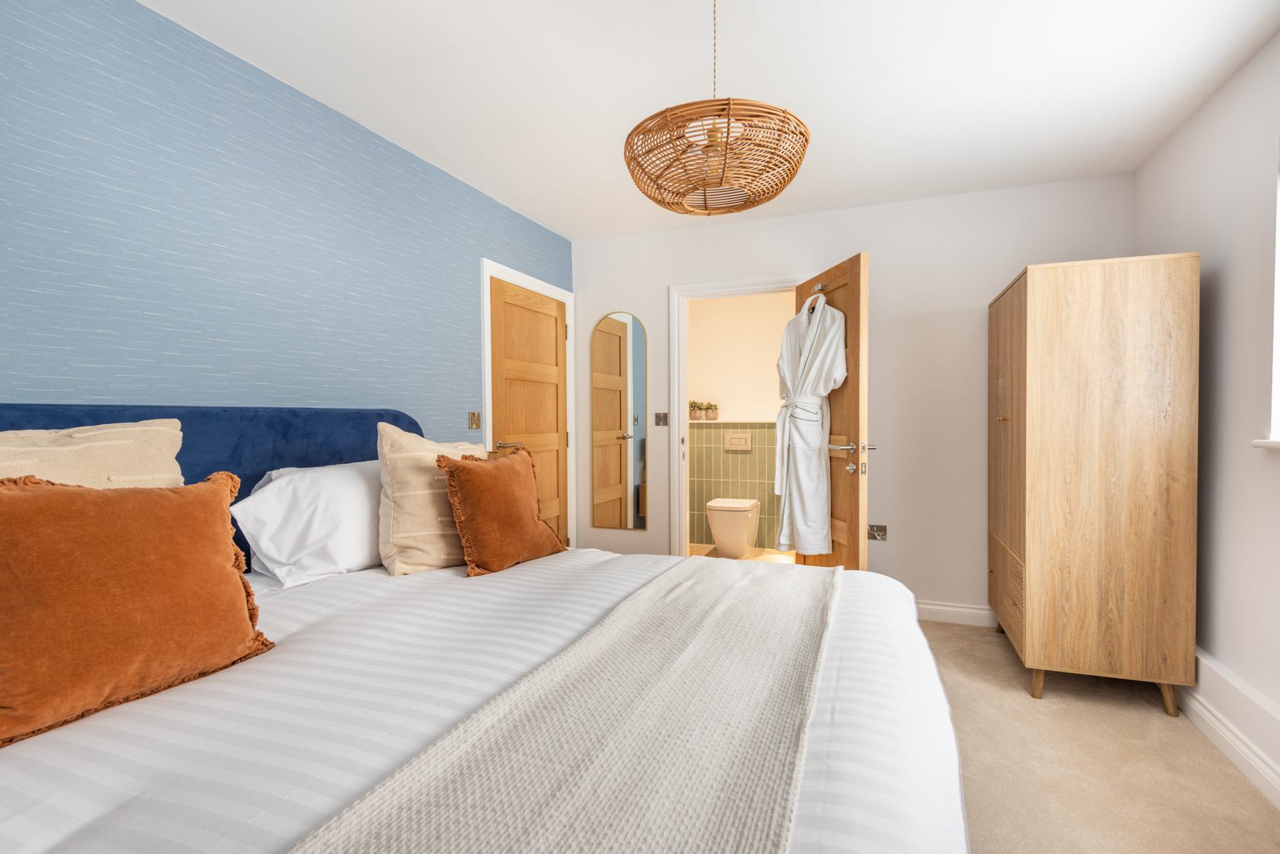 Bedroom 1: Super king sized 6ft bed (zip link, can be split to form twin beds, please advise at time of booking if twin beds required), wardrobe, chest of drawers, door to terrace.