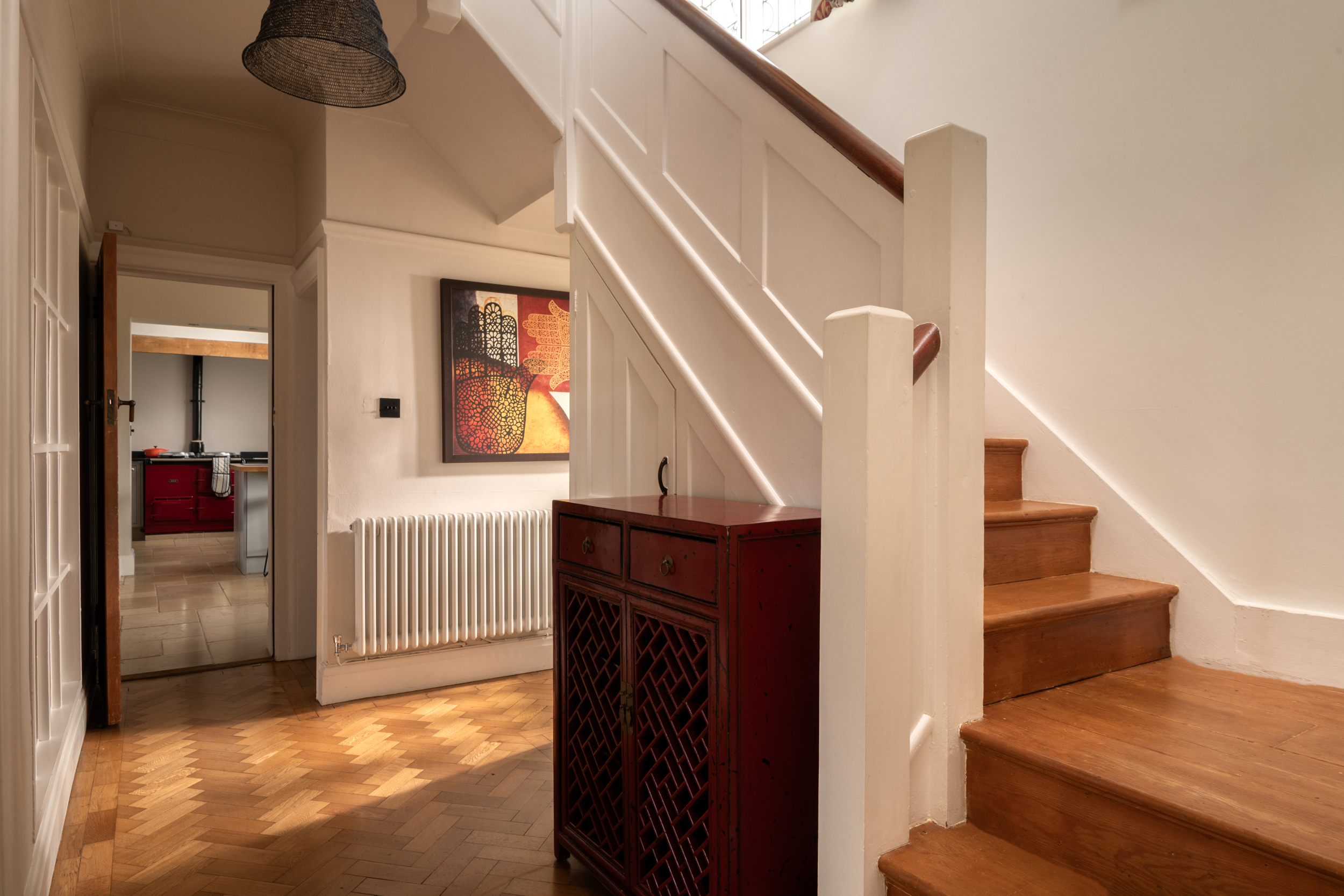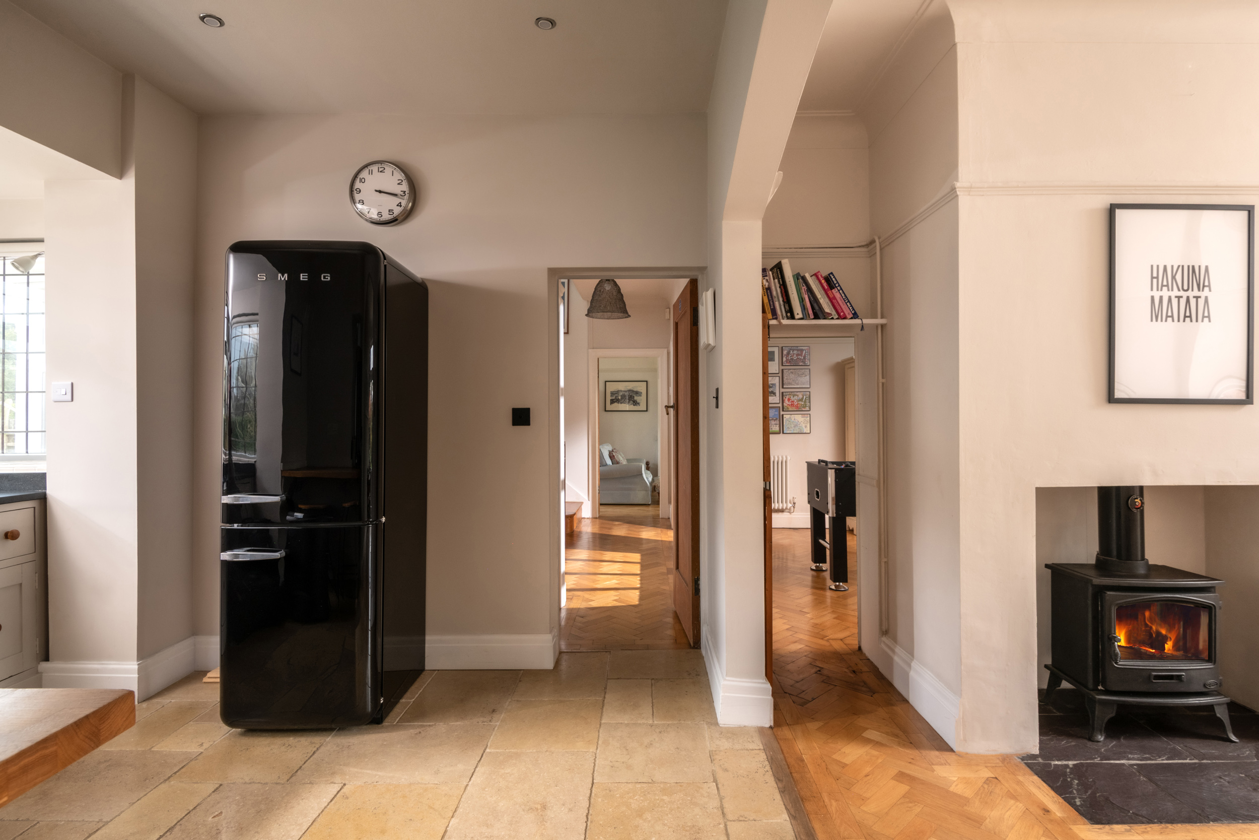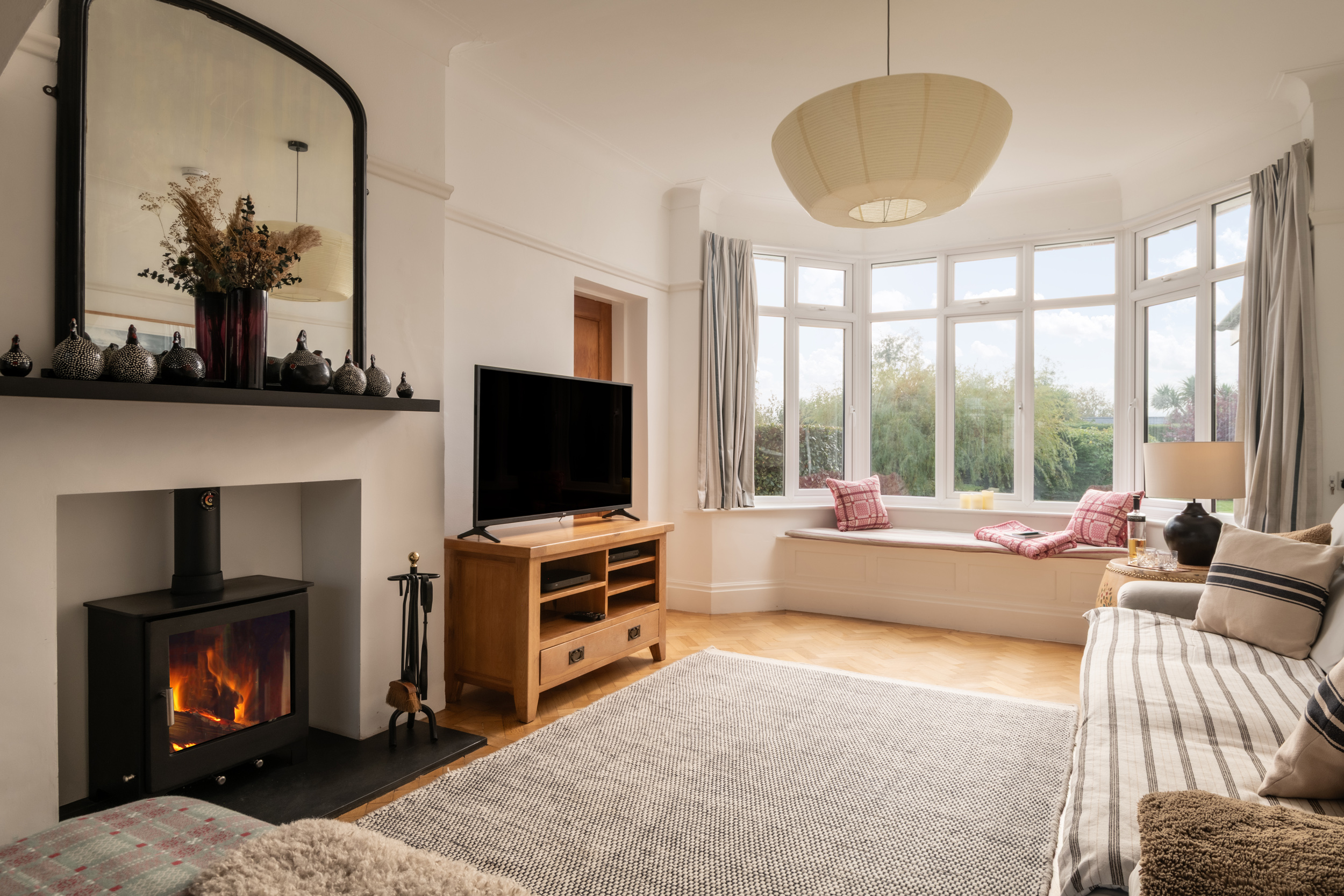 Central heating with AGA and woodburning stove. The Aga will be switched on from Mid-October to Mid-March for ambient heating only. Electric oven, 6 ring induction hob, microwave, fridge/freezer, washing machine, 2 x dishwashers. TV, Smart TVs with BT YouView, Nintendo Wii, full sized table football, WiFi, a selection of books and games. Fuel, power and starter pack for woodburning stove inc. in rent. Bed linen and towels inc. in rent. A highchair and travel cot available, please bring own linen. Off-road parking for three cars. Garden with lawn, patio, barbecue and furniture. Two well-behaved dogs welcome. Kindly remember dogs are not to be left in the property as they may become distressed. Sorry, no smoking. Shop and pub 0.5 miles, beach 2.8 miles. Note: AGA is on an ambient heat only (not for cooking) Oct to Mid March. Note: Parents of children should note that there is a tree house at the bottom of the garden that is out of bounds for safety reasons. Smart TV with sky box in conservatory. 3 night breaks available through November to March.