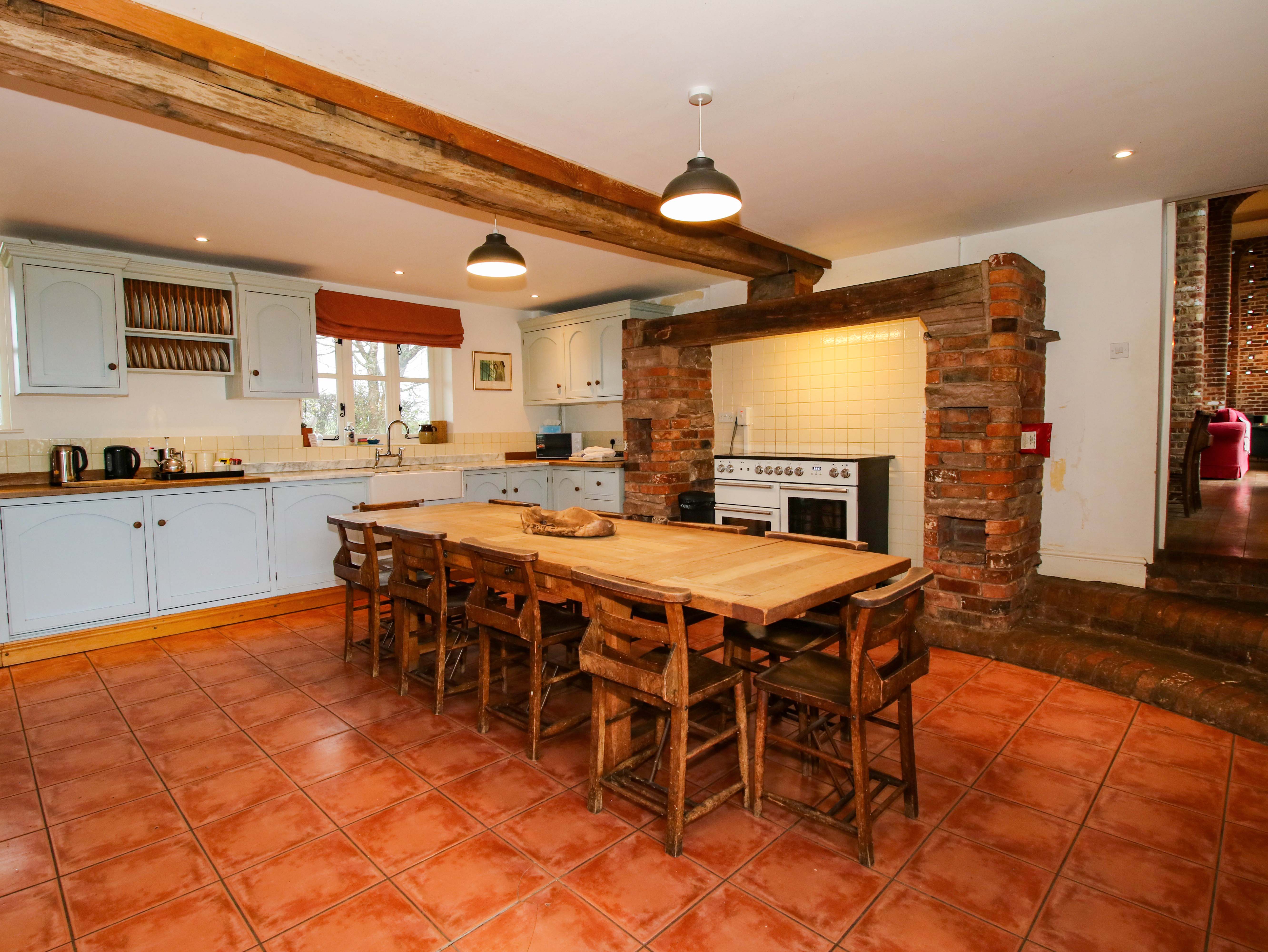 This spacious and detached holiday home granary rests in Pitchford near Shrewsbury, Shropshire and can sleep 14 people in seven bedrooms.