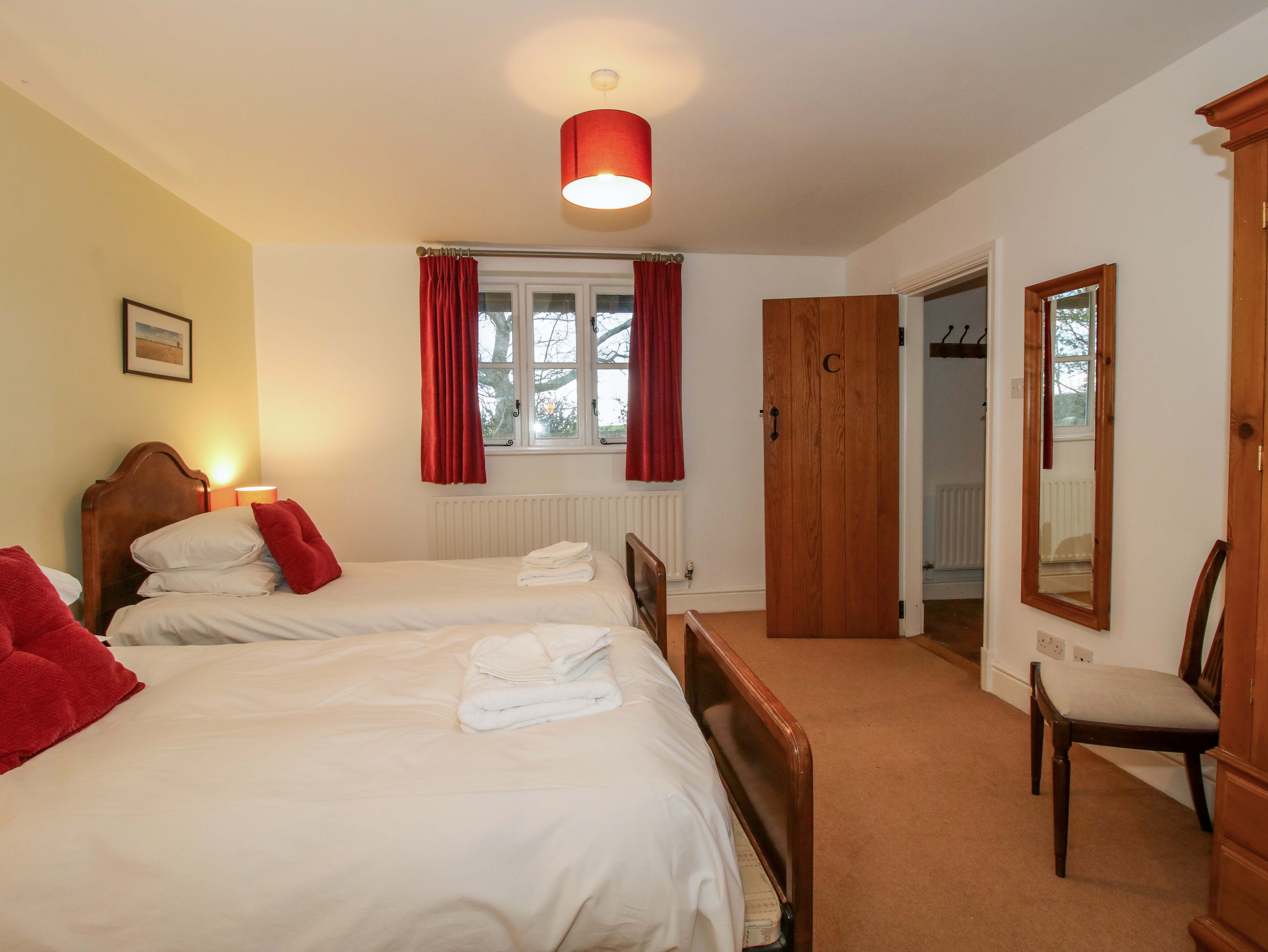 Windy Mundy Farm is a gorgeous holiday home set within the village of Pitchford near Shrewsbury, Shropshire. Hosting eight bedrooms; a ground-floor king-size, two doubles with en-suites, a ground-floor double, a ground-floor twin with a Jack-and-Jill bathroom, an additional ground-floor twin, this property can sleep up to 14 guests. Completing the ground floor is a bathroom, a kitchen/diner, a living/dining room with an open fire and a games room featuring a sauna. Outside there is an enclosed garden with outdoor seating area, and ample off-road parking. Windy Mundy Farm is a luxurious abode offering a fabulous setting for a large group getaway, any time of the year.