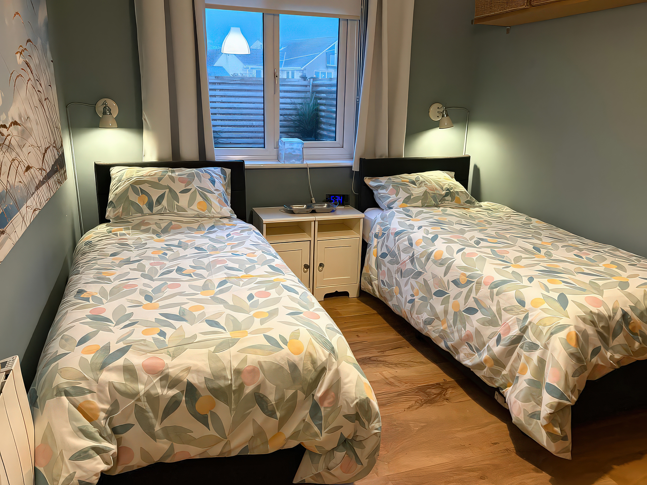 The living areas in this single-storey home consist of a kitchen/diner with an electric oven and hob, microwave, fridge/freezer, washing machine and dishwasher, and a living/dining room with TV. The bedrooms have TVs and consist of twin beds (can be made into a super-king-size on request), and a double, serviced by a bathroom. Outside there is a front garden with lawn, patio, decking and furniture, a rear patio with artificial grass and furniture, a private driveway for two cars, and one parking space in front of the garage. Two well-behaved dogs welcomed, but sorry, no smoking. WiFi, fuel, power, bed linen and towels are all included in the price. You'll find a shop and a pub in 0.9 miles, and the beach in 0.1 miles. Choose Seaspray as your Cumbrian escape. Note: The property is located close to a large car park and has recycling bins adjacent to it