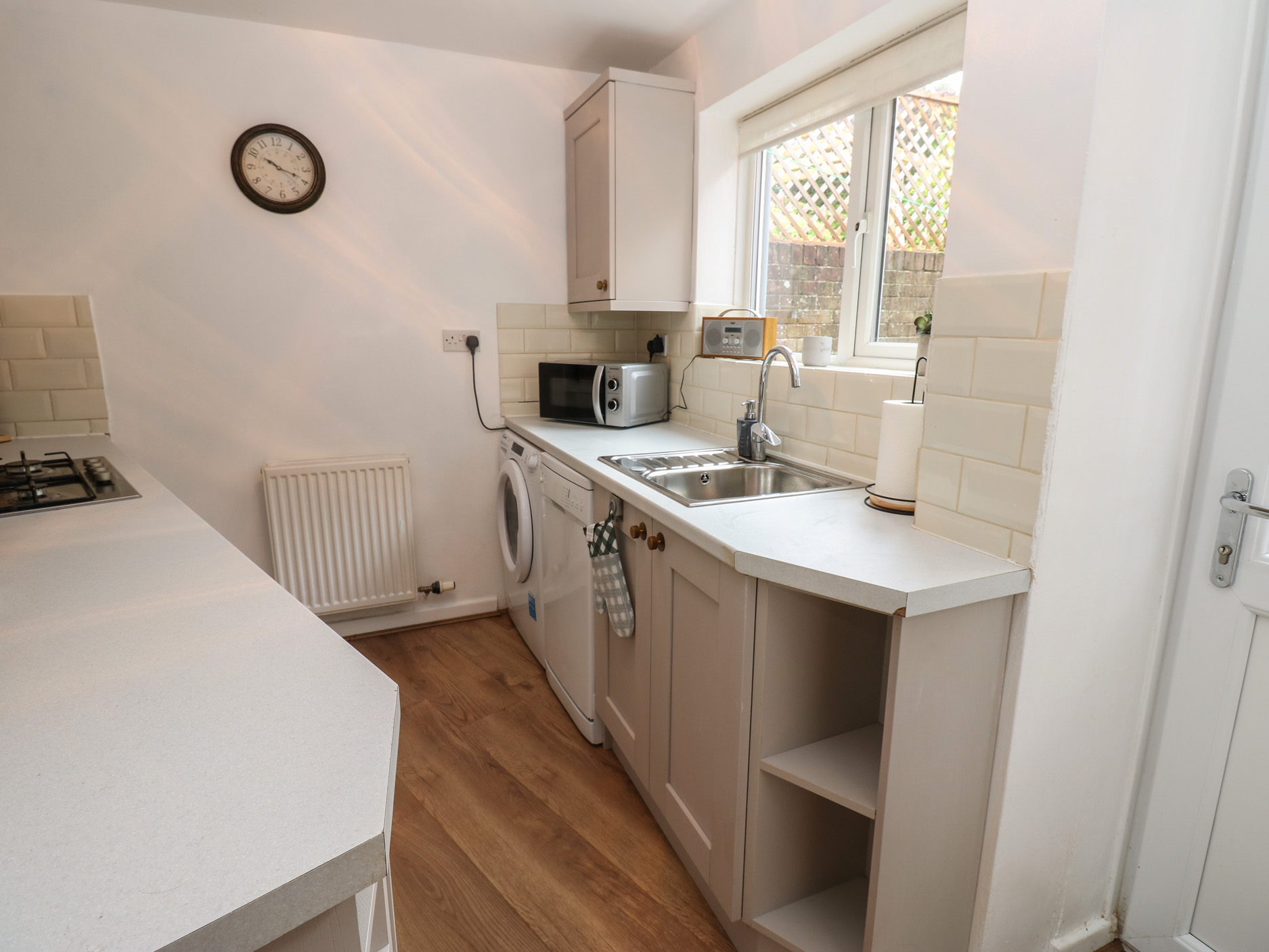 Gas central heating. Electric oven, gas hob, microwave, fridge/freezer, washer/dryer, dishwasher. Smart TV, WiFi. Fuel and power inc. in rent. Bed linen and towels inc. in rent. Roadside parking available. Enclosed, shared rear patio with furniture. Sorry, no pets and no smoking. Shop 0.4 miles, pub and river 0.1 miles