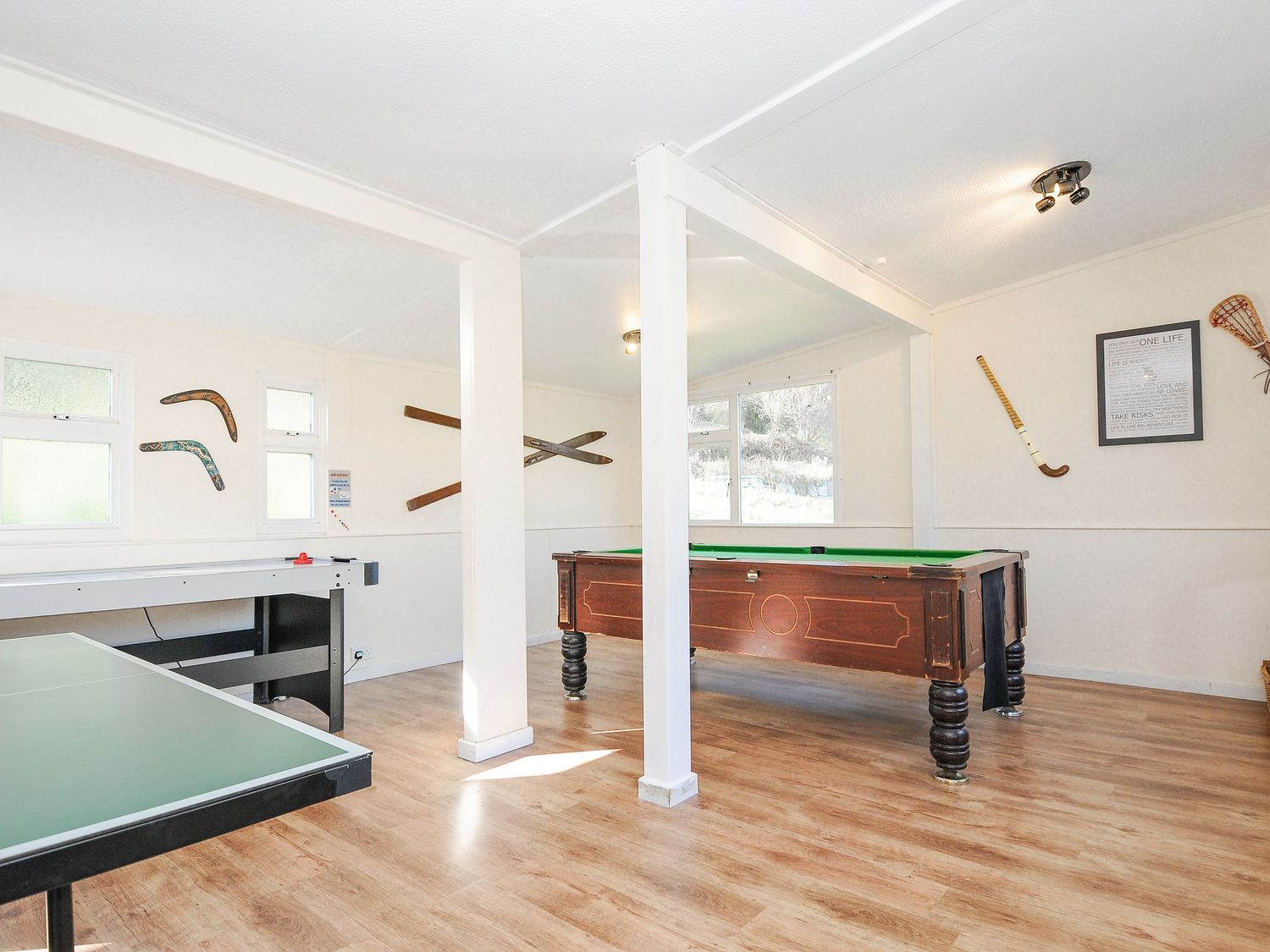 Electric heating with woodburning stove. Electric oven, electric hob, microwave, fridge/freezer, washing machine, dishwasher, kettle, toaster. TV, WiFi, selection of games and children’s indoor play area. Fuel and power inc. in rent. Bed linen and towels inc. in rent. Highchair, travel cot and stairgate available. Off-road parking for 1 car. Enclosed garden with lawn and decking with furniture and non-enclosed communal lawn and children’s play area. Two well-behaved dogs welcome at a charge of £30 per dog per week. Sorry, no smoking. Shop 1.2 miles, pub 1.5 miles. Keep an eye out for the beautiful deer. Note: This property includes an indoor BBQ, spacious gym, games room (pool and table tennis, small children’s area) and outdoor children’s play area, laundry room and river fishing. Note: There are steps and a ramp up to the lodge. Note: There is a stream on site so please make sure children are supervised. Note: Use of the log burner and unlimited logs during your stay is charged at £30 per week. Note: Electric car charging is available at a charge of £100 per week. Note: Minimum short break is a 3 night stay.