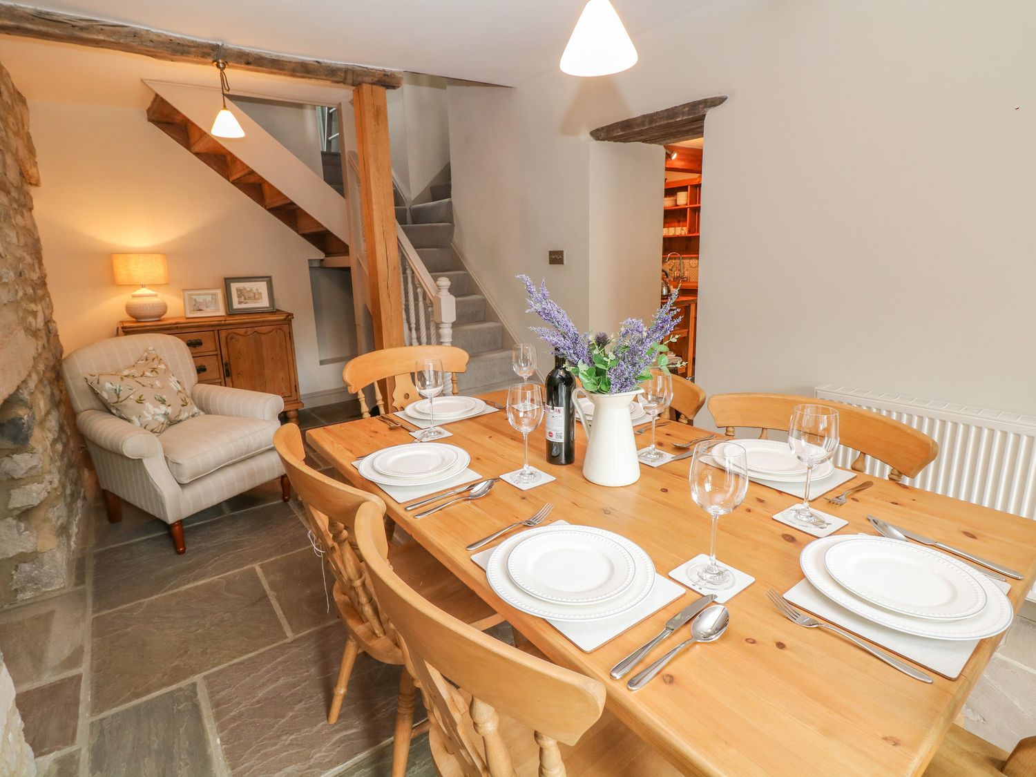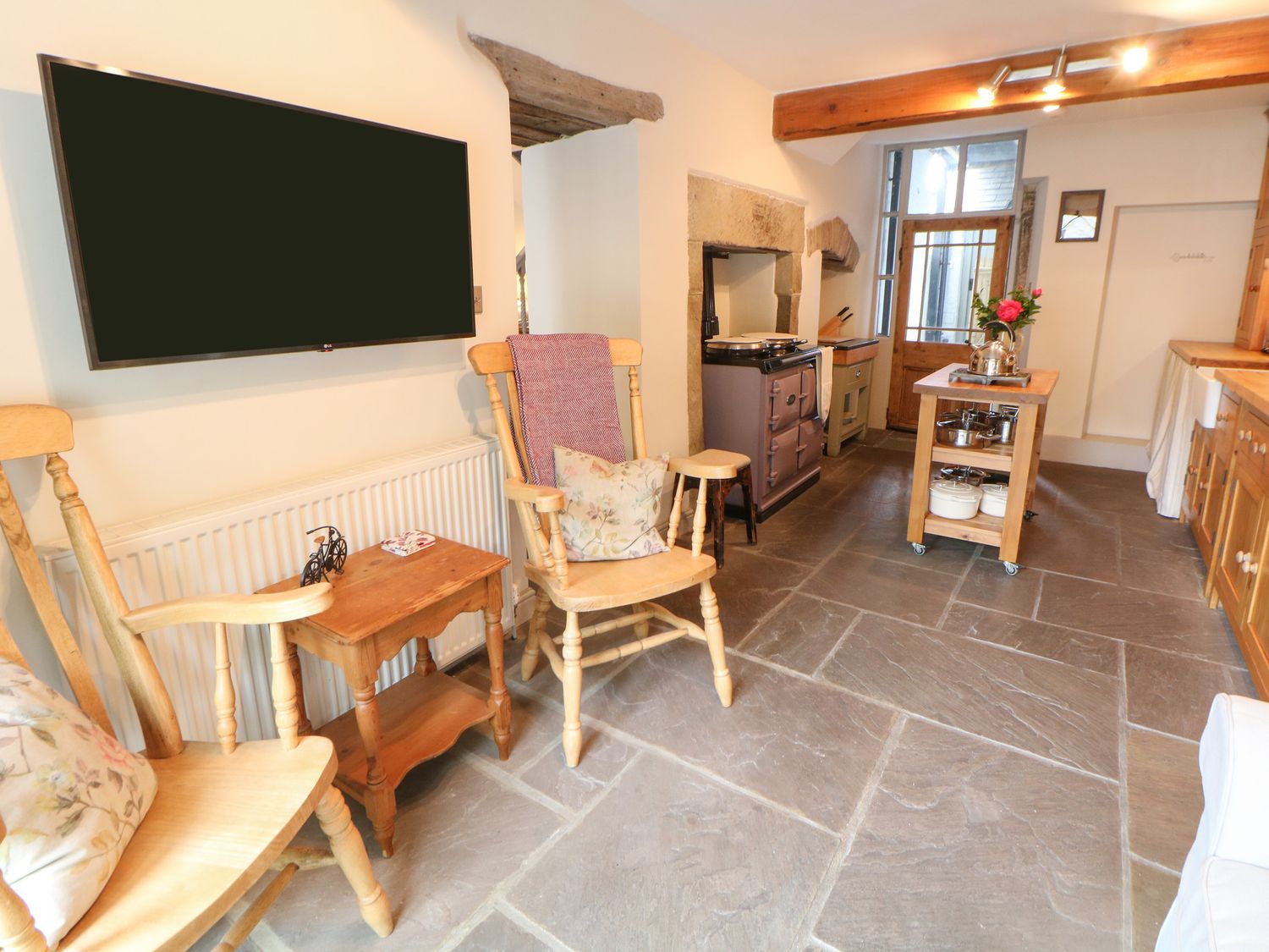 Central heating with woodburning stove. AGA gas cooker, microwave, fridge/freezer and dishwasher. 2 x TV, WiFi. Fuel, power and starter pack for woodburning stove inc. in rent. Bed linen and towels inc. in rent. Cot available. Roadside parking on first-come, first-served basis. Rear garden with decked area and furniture. Four well-behaved pets welcome. There is an external dog shower to wash off pets. Sorry, no smoking. Shop and pub 0.1 miles. Please note: This property only accepts a minimum of 3 night stays. Please Note: Bookings can strictly only be accepted to start on Mondays or Fridays.