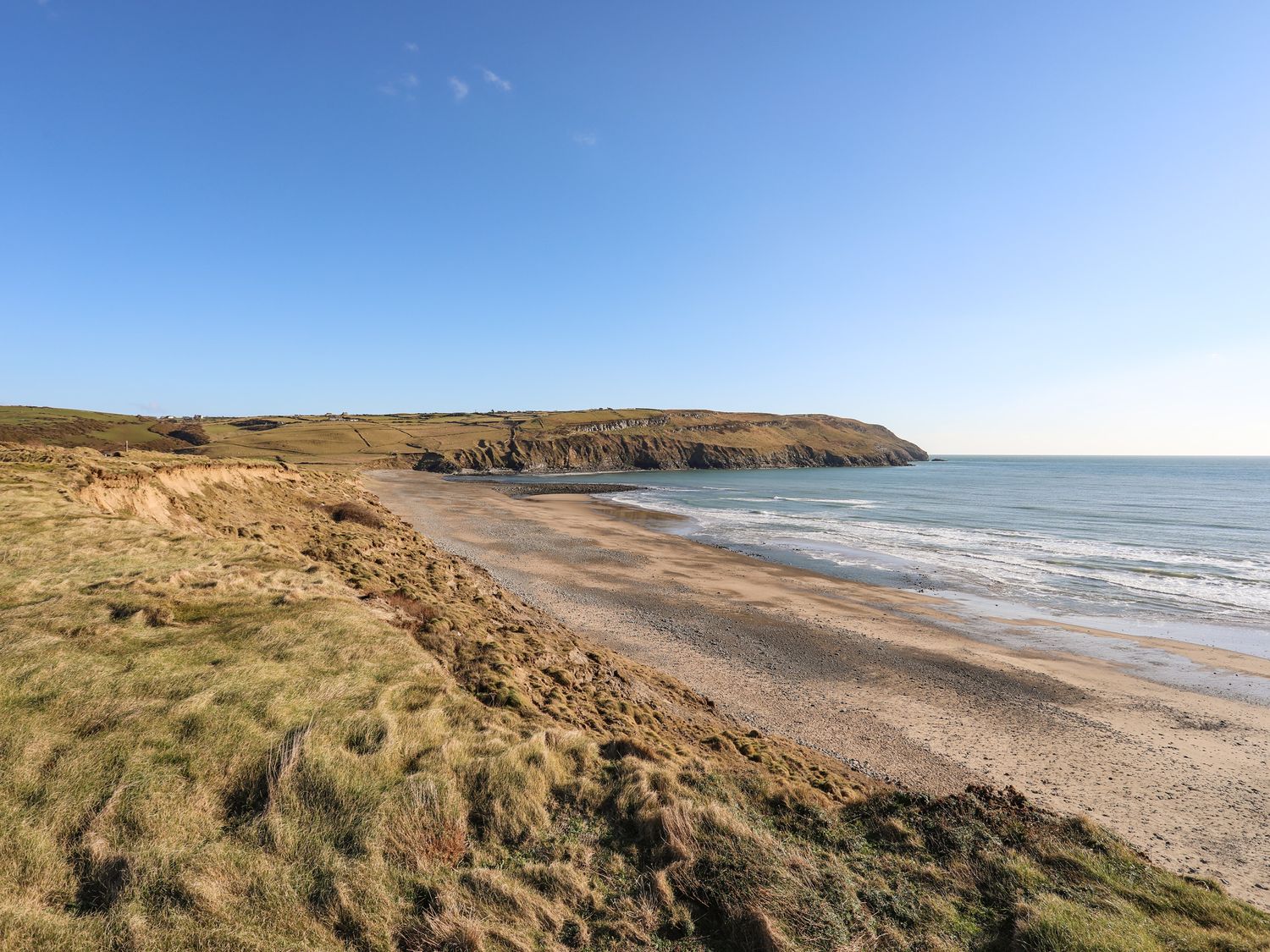 Electric storage heaters. Electric oven and hob, fridge/freezer and dishwasher. TV, WiFi, selection of games. Fuel and power inc. in rent. Communal off-road parking with spaces for 2 cars. Shared rear garden with lawn, gravelled area and furniture. Two well-behaved pets welcome at a charge of £25 per dog per stay. Sorry, no smoking. Shop 1.7 miles, pub 0.7 miles, beach 0.4 miles. Note: Guests have access to on-site facilities, including: a laundrette with a washing machine and tumble dryer that take £1 coins and cost £3 per wash, a hosepipe and tap in a neighbouring field to rinse off wetsuits and dogs, along with a Play Barn area, games room, badminton and table tennis. Two electrical charging points for vehicles are available at Ty'n Don (payable via app). Note: Check-in from 4pm, check-out by 10am