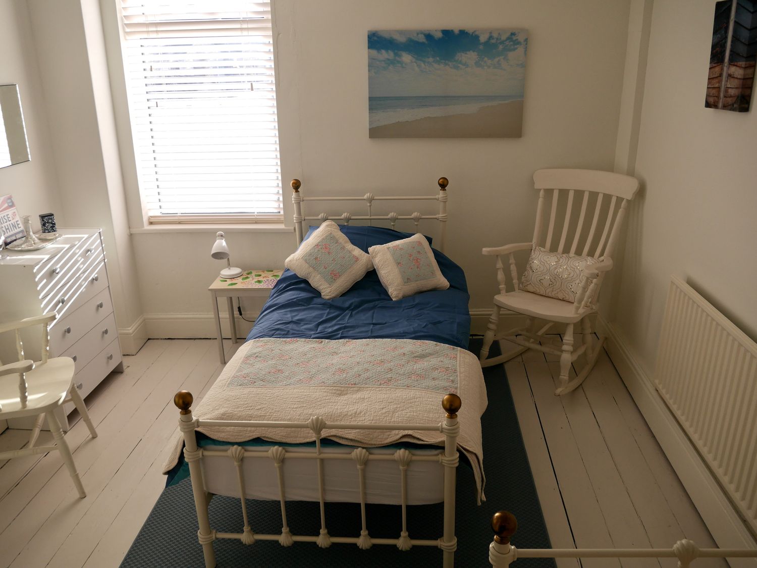 Gas central heating and electric wood-effect fire. Electric oven and hob, fridge, washing machine, dishwasher. TV, AMP Speakers, Vinyl Player, WiFi and a selection of books. Fuel and power inc. in rent. Bed linen and towels inc. in rent. On-street parking with additional parking in a nearby, municipal car park. Back garden with patio and lawned area. Two well-behaved pets welcome. Sorry, no smoking. Shop and pub 0.1 mile, beach 0.5 miles. Note: This property may not be considered infant/toddler friendly, please consider this when booking.