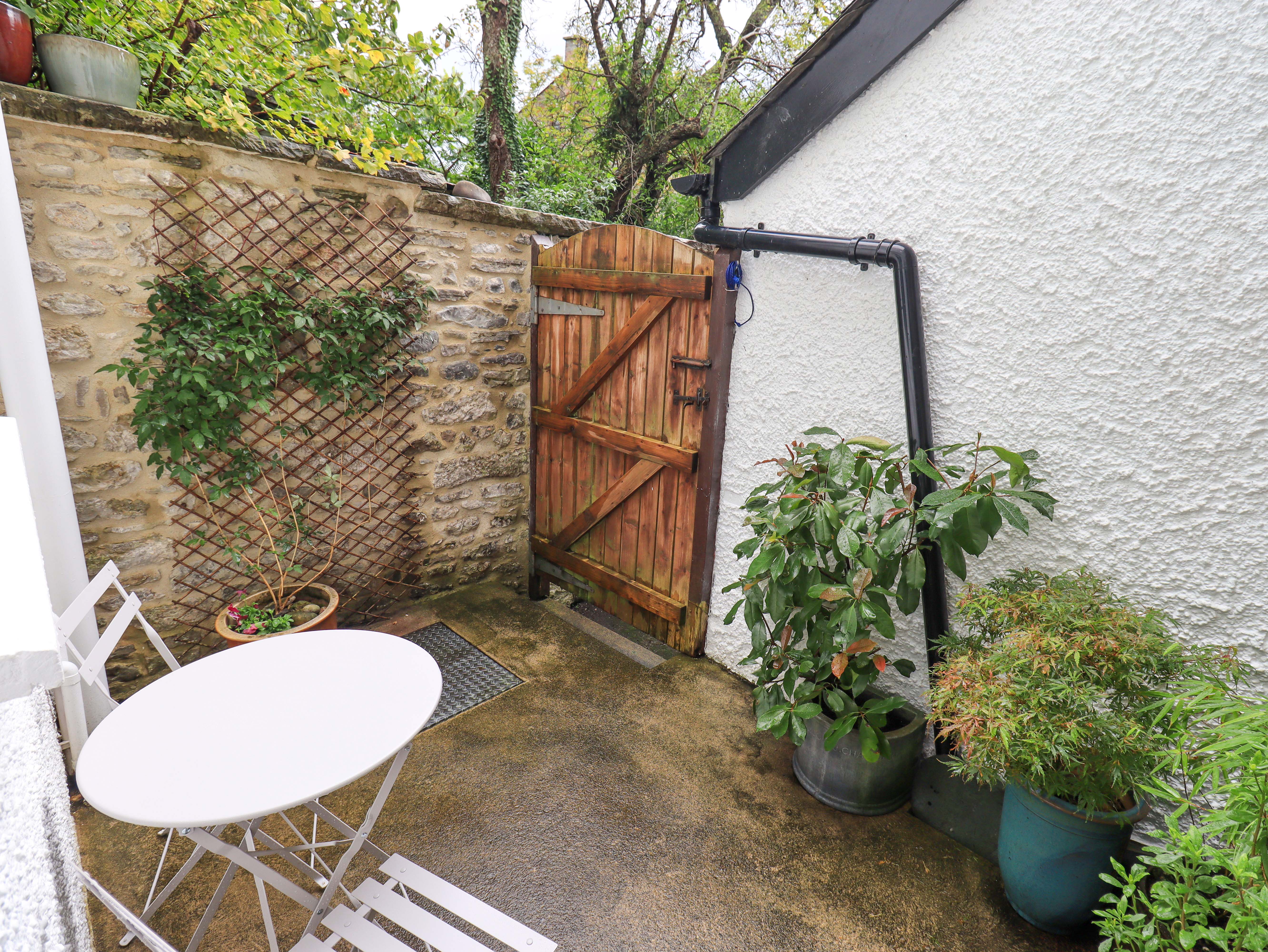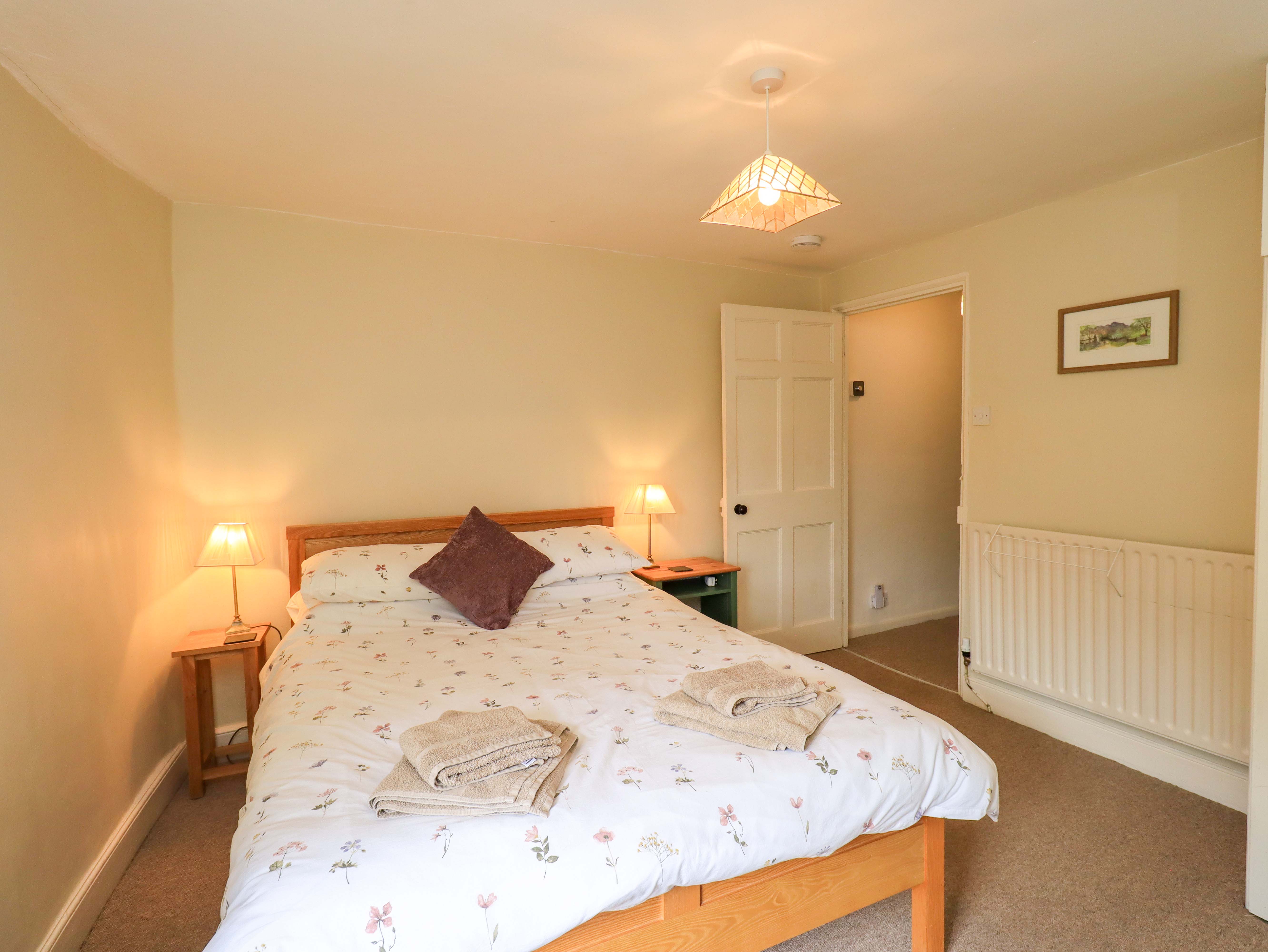 Gas central heating with woodburning stove. Electric oven and hob, microwave, fridge, washing machine, dishwasher, TV with Freeview, DVD, WiFi. Fuel, power and starter pack for stove inc. in rent. Bed linen and towels inc. in rent. Loading/unloading only outside cottage. Roadside parking approx 5 mins walk away. Charged parking available in car park approx 250 yards away. Patio with furniture. One well-behaved dog welcome. Sorry, no smoking. Shops and pubs 2 mins walk. Note: Property has steep stairs.