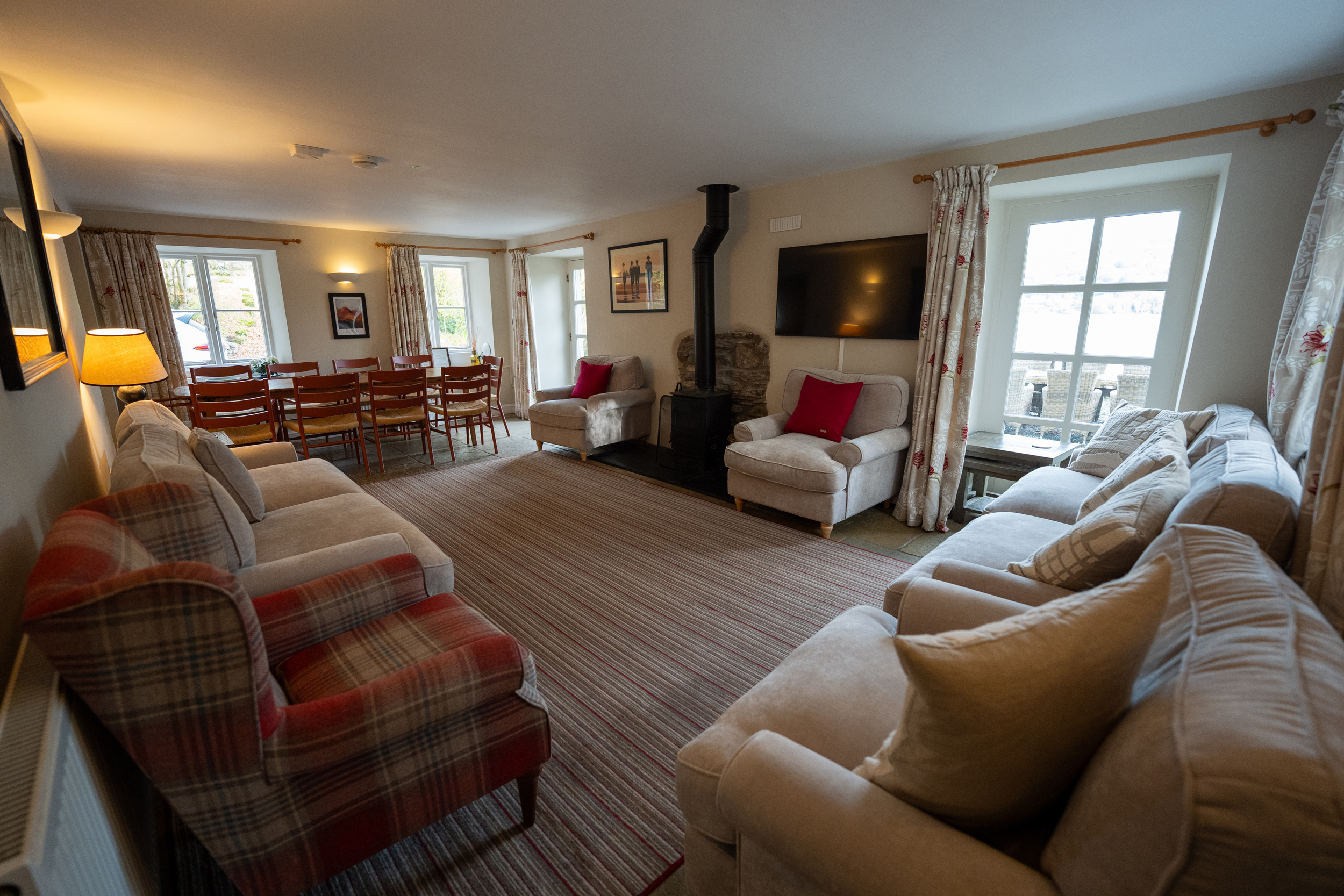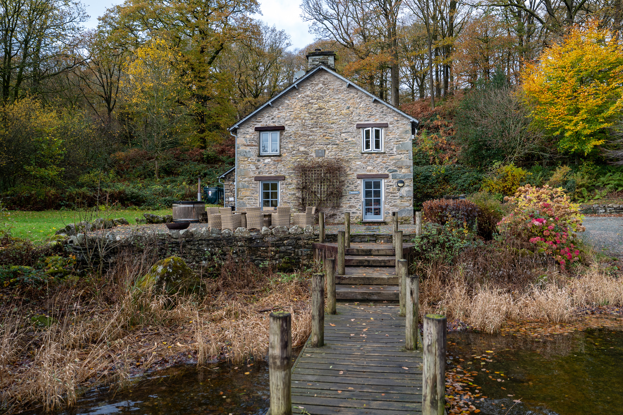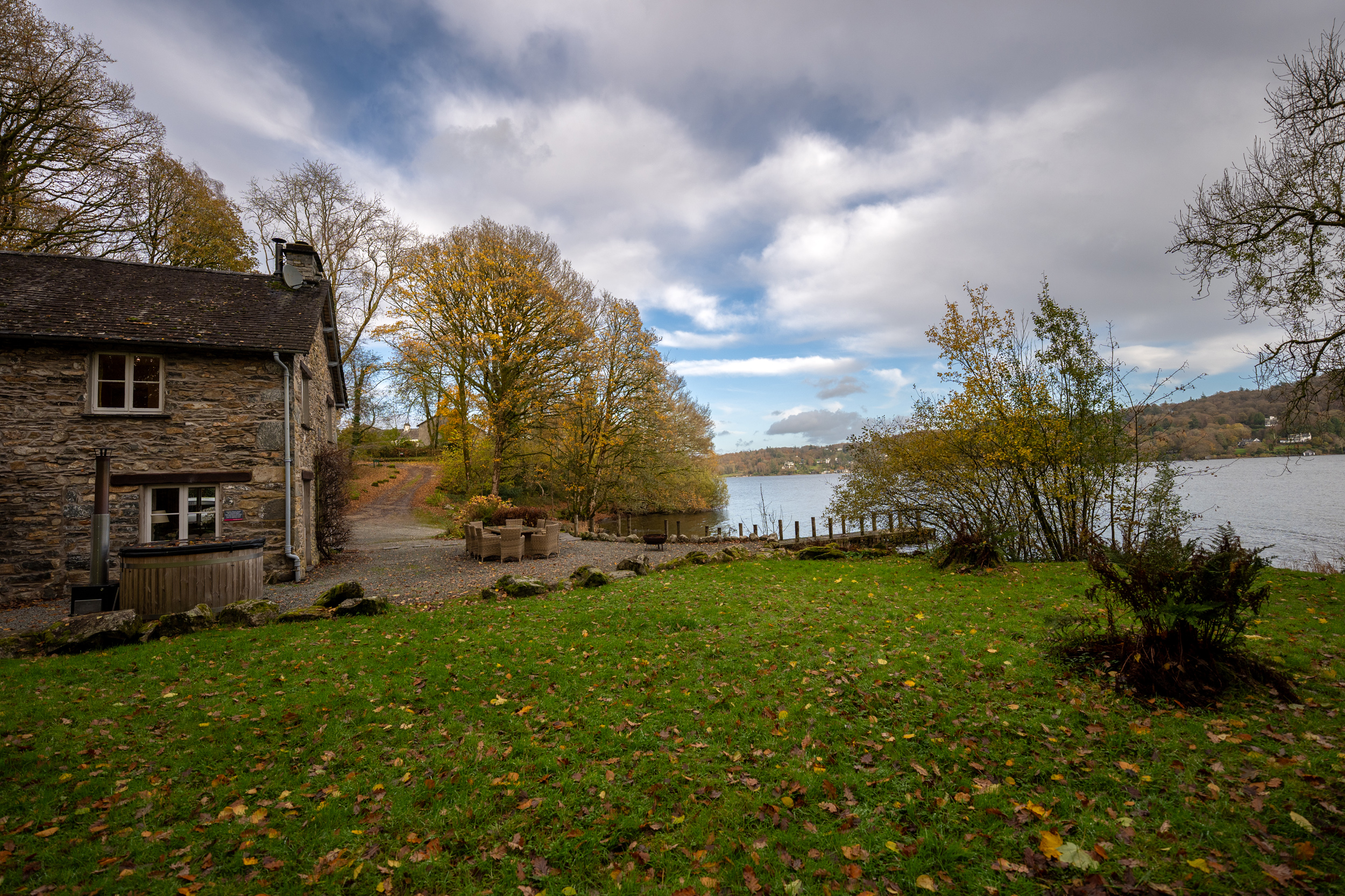 Oil central heating with gas fire. Two electric ovens, gas hob, microwave, fridge/freezer and washer/dryer in external utility, dishwasher, TV with Freeview, WiFi. Fuel and power inc. in rent. Bed linen and towels inc. in rent. Travel cot and highchair. Ample off road parking. Patio garden with furniture. Wood fired hot tub (the hot tub is cleaned and ready to fill on arrival, as it’s wood-fired, it takes up to 2 hours to fill and heat, and cannot be prepared in advance. Please note that logs, kindling, firelighters, and matches are not included in your stay but can be ordered using the Goodeats link in your key collection information. Shared use of estate grounds and facilities 10 mins drive away inc. indoor heated swimming pool (Please bring swim towels, as the towels provided are only for use in the property), table tennis room (please bring your own racquets and balls). Two well-behaved dogs welcome. Sorry, no smoking. Shops 4.3 miles, pubs 3.8 miles. Water from private supply, fed from freshwater lake. To avoid disappointment, we recommend booking Graythwaite Adventure in advance. Graythwaite fishery is free for all guests and equipment can be hired locally, a small fee is applicable to keep your catch, rod fishing license required. Mobile phone signal may be limited due to the location of the property. Please Note: This property has a £500 Good Housekeeping Bond. Please note that we can’t accept check in on Christmas Day, Boxing Day or New Years Day