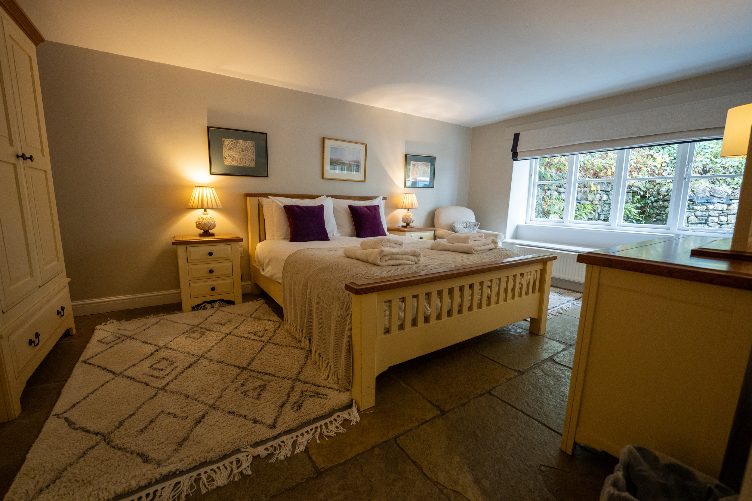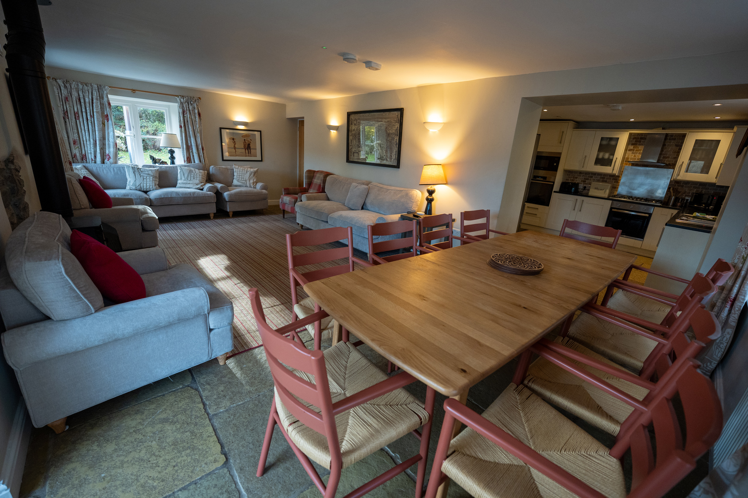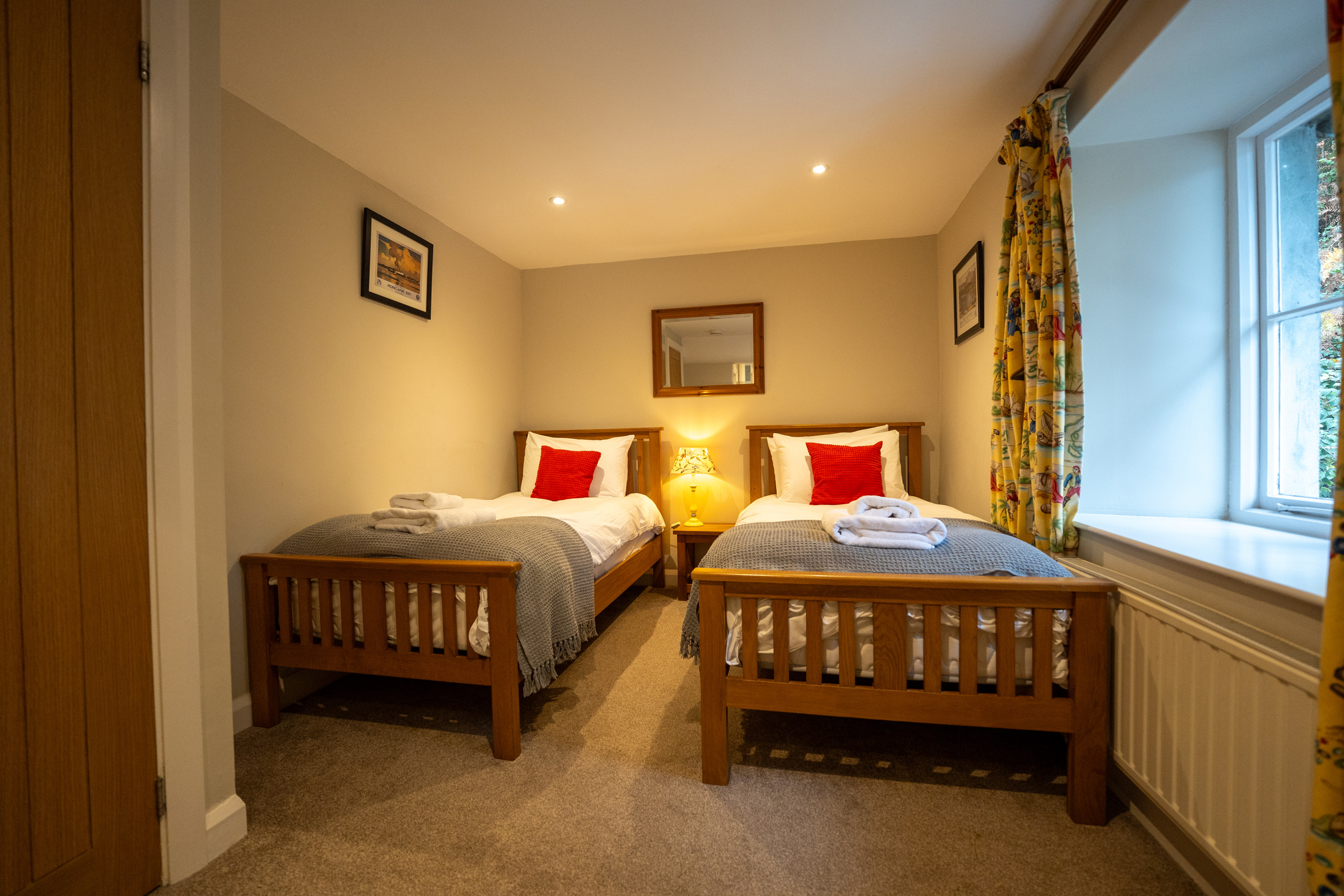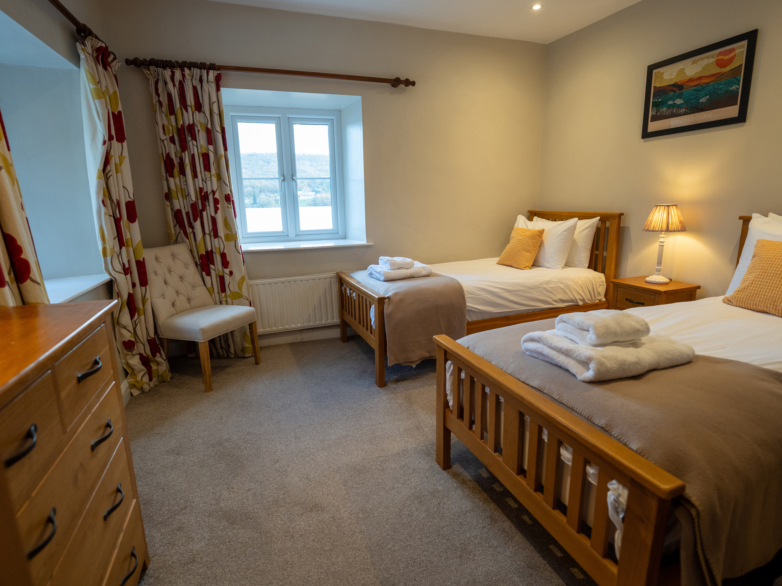 Oil central heating with gas fire. Two electric ovens, gas hob, microwave, fridge/freezer and washer/dryer in external utility, dishwasher, TV with Freeview, WiFi. Fuel and power inc. in rent. Bed linen and towels inc. in rent. Travel cot and highchair. Ample off road parking. Patio garden with furniture. Wood fired hot tub (the hot tub is cleaned and ready to fill on arrival, as it’s wood-fired, it takes up to 2 hours to fill and heat, and cannot be prepared in advance. Please note that logs, kindling, firelighters, and matches are not included in your stay but can be ordered using the Goodeats link in your key collection information. Shared use of estate grounds and facilities 10 mins drive away inc. indoor heated swimming pool (Please bring swim towels, as the towels provided are only for use in the property), table tennis room (please bring your own racquets and balls). Two well-behaved dogs welcome. Sorry, no smoking. Shops 4.3 miles, pubs 3.8 miles. Water from private supply, fed from freshwater lake. To avoid disappointment, we recommend booking Graythwaite Adventure in advance. Graythwaite fishery is free for all guests and equipment can be hired locally, a small fee is applicable to keep your catch, rod fishing license required. Mobile phone signal may be limited due to the location of the property. Please Note: This property has a £500 Good Housekeeping Bond. Please note that we can’t accept check in on Christmas Day, Boxing Day or New Years Day