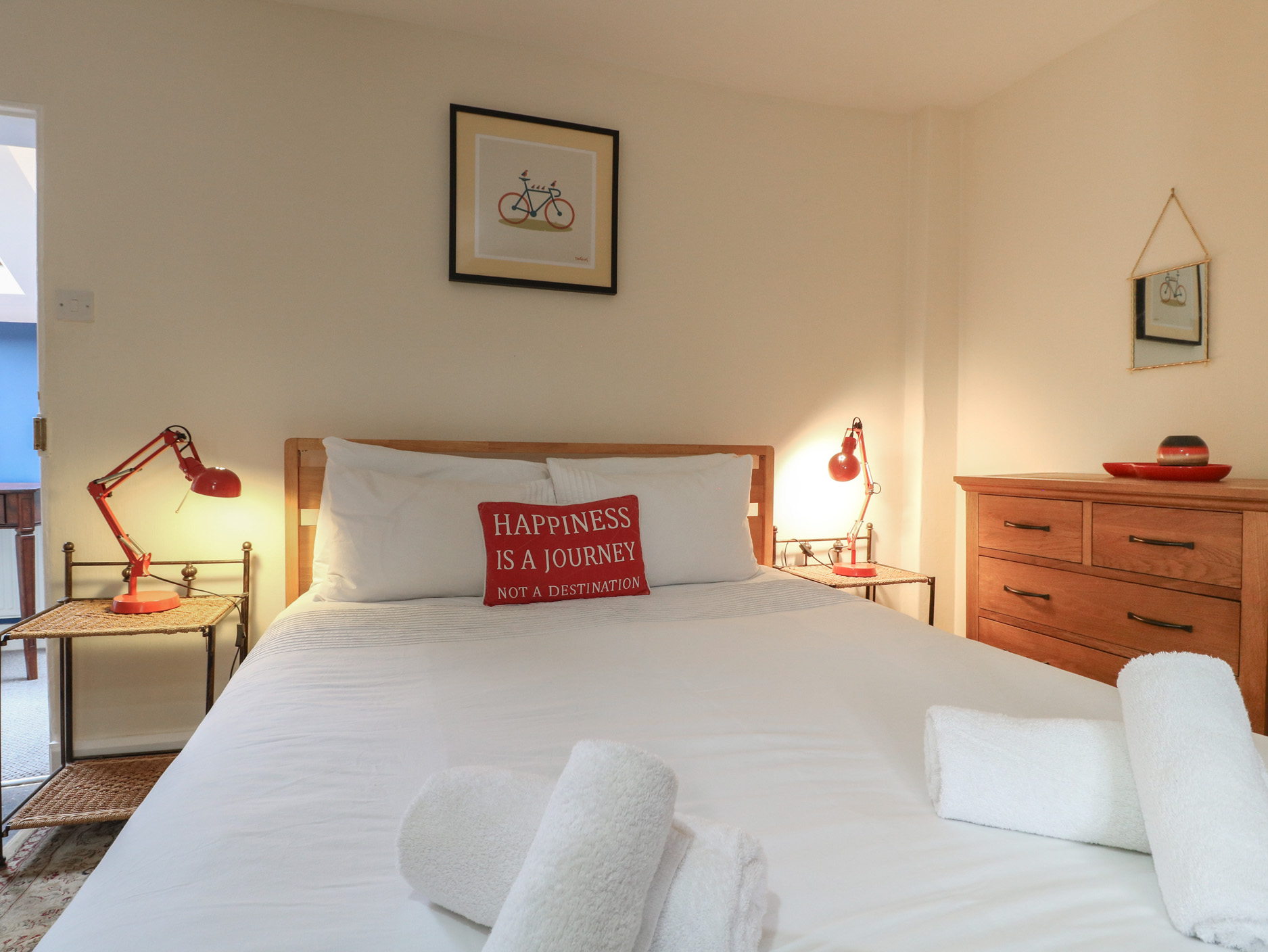 Gas central heating with woodburners. Range cooker with electric oven and gas hob, microwave, fridge, freezer, washing machine, dishwasher, TV with FreeSat, Blu-ray/DVD, Bluetooth speaker, WiFi, selection of books. Fuel, power and starter pack for woodburners inc. in rent. Bed linen and towels inc. in rent. Travel cot, highchair and stairgate. Roadside parking opposite the property. Secure bike storage. Front enclosed patio with furniture. One well-behaved dog welcome. Sorry, no smoking. Shops and pub 2 mins walk. Note: Twin loft conversion can only be accessed through one of the double bedrooms and limited headroom in attic bedroom. Please Note: No parking, loading or unloading on the shared drive