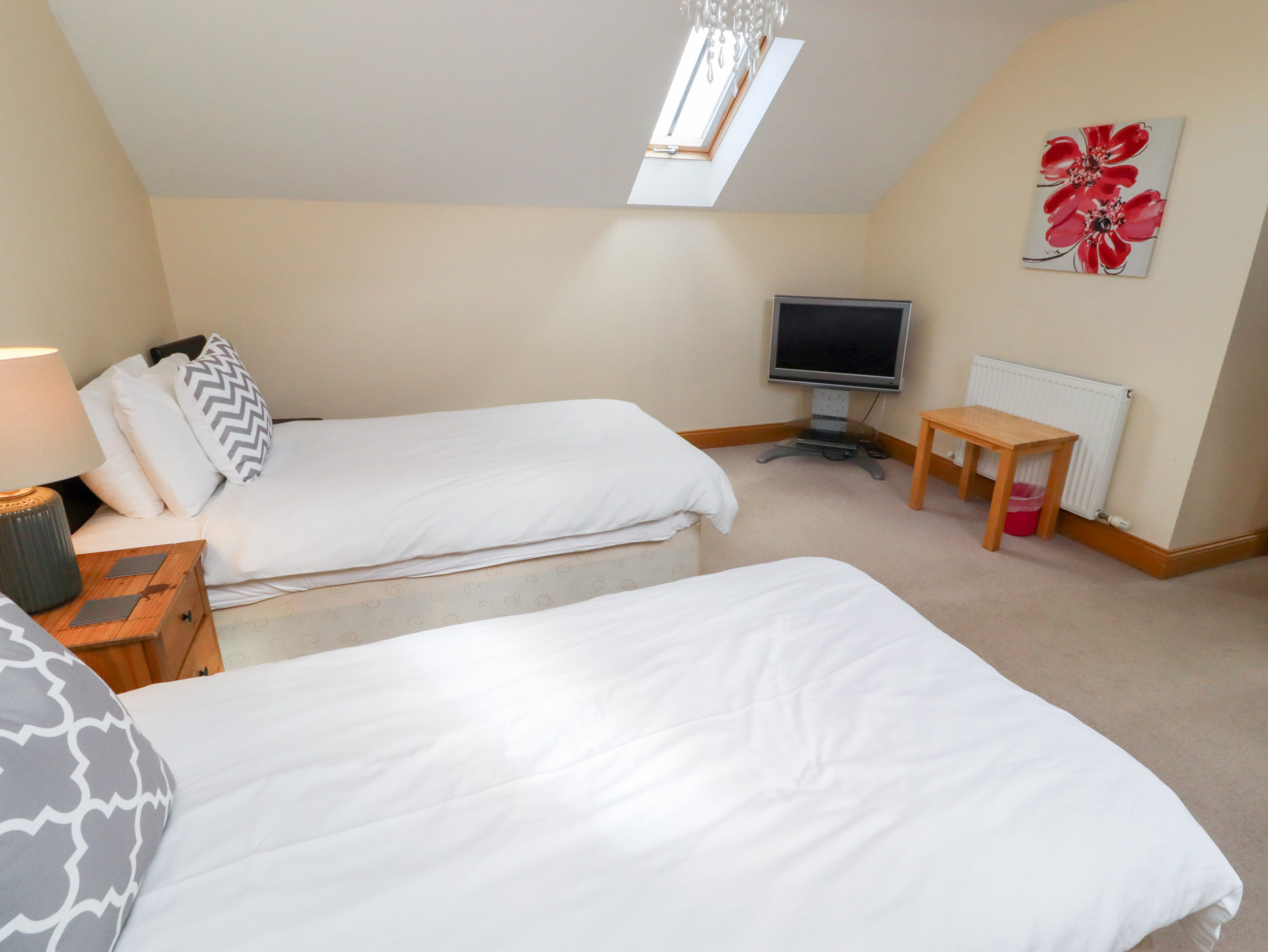 LPG central heating with woodburning stove. Range cooker with electric oven and gas hob, microwave, American fridge/freezer, washing machine, dishwasher, Smart TV, DVD, CD, radio, WiFi, selection of books, games and DVDs. Fuel, power and starter pack for stove inc. in rent. Please note: if requiring more logs will need to be purchased independently. Own matches will need to be brought. Bed linen and towels inc. in rent. Travel cot and highchair on request. EV charger onsite. Off road parking for 2 cars. Front patio with furniture. Two well-behaved dogs welcome. Sorry, no smoking. Shop, pub and beach 1 mile. Shared children's play area on cottage complex. Note: One of the twin rooms can be accessed via the master bedroom only. Note: Beach is accessed via owner's land. Note: The swimming pool is available for all guests staying in our 13 cottages and 4 apartments, guests must go to the pool entrance area to sign up for the swimming slots they would like to use, using their property name, each stay is allocated a number of slots, 7 night stay - 5 slots, 5 night stay - 3 slots,3 night stay - 2 slots, the same time slot is not available to each property each day, swimming pool bookings cannot be made in advance of your stay. Note: Caravans/ motor homes/ commercial vehicles (eg vans) are not permitted to be parked outside the properties, there is alternative parking opposite the properties, just off the main site (it is still covered by our CCTV) This is available by prior arrangement at a cost of £20. Note: Check in 4pm, check out 9.30am. This property has a refundable Good Housekeeping bond of £350. Please Note: This property will only accept a check in on a Friday