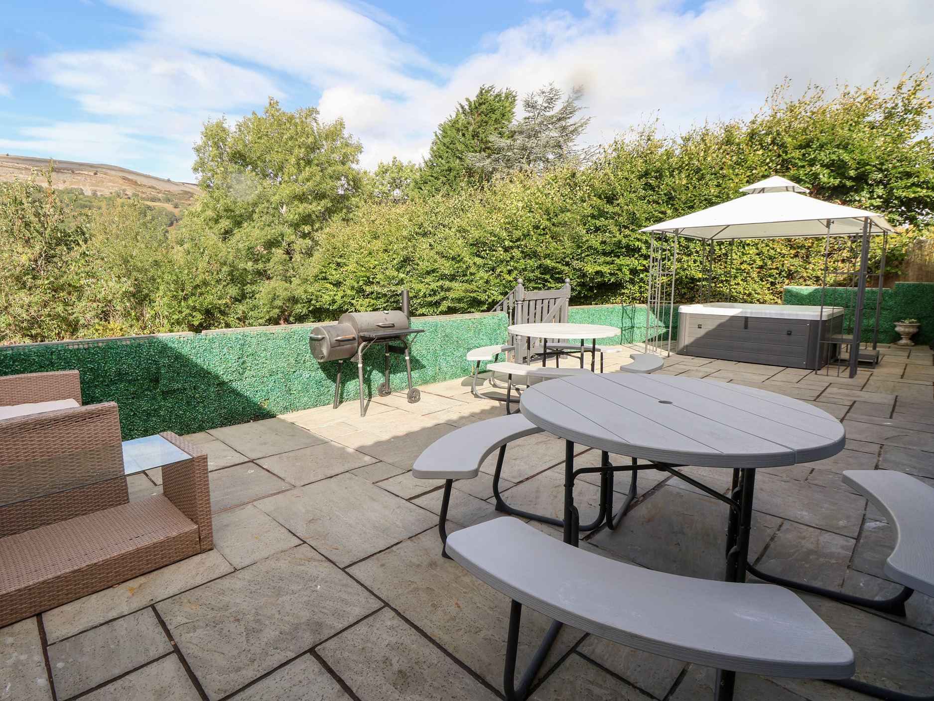 Please Note : This property does not accept arrivals on a Sunday. Talgais is a lovely cottage situated in Llangollen, Denbighshire. It has six bedrooms: one ground floor king-size with an en-suite shower room and WC, two ground floor doubles, one first floor king-size with an en-suite bathroom and WC and two first floor doubles. There is a separate family bathroom and WC. It has a ground floor cloakroom with basin and WC. Downstairs has a lovely fitted kitchen, dining room and sitting room. With a play room and conservatory. Off-road parking is available for several cars. Note: No stag/hen or similar. Note: The hot tub is available at an addition cost of £200 payment would need to be made via phone to our office (01244345700) andThere is a £400 Good house keeping bond on this property, the bond is a refundable bond, paid directly to the owner before your stay. Please Note : This property does not accept arrivals on a Saturday or a Sunday.