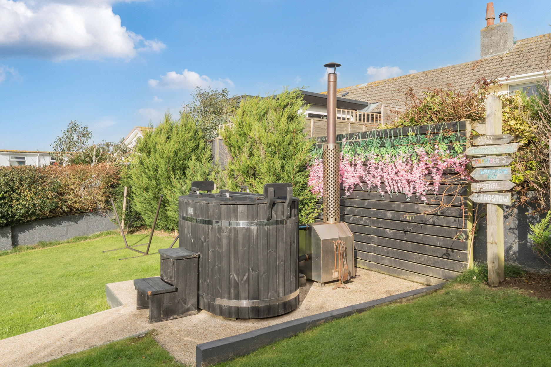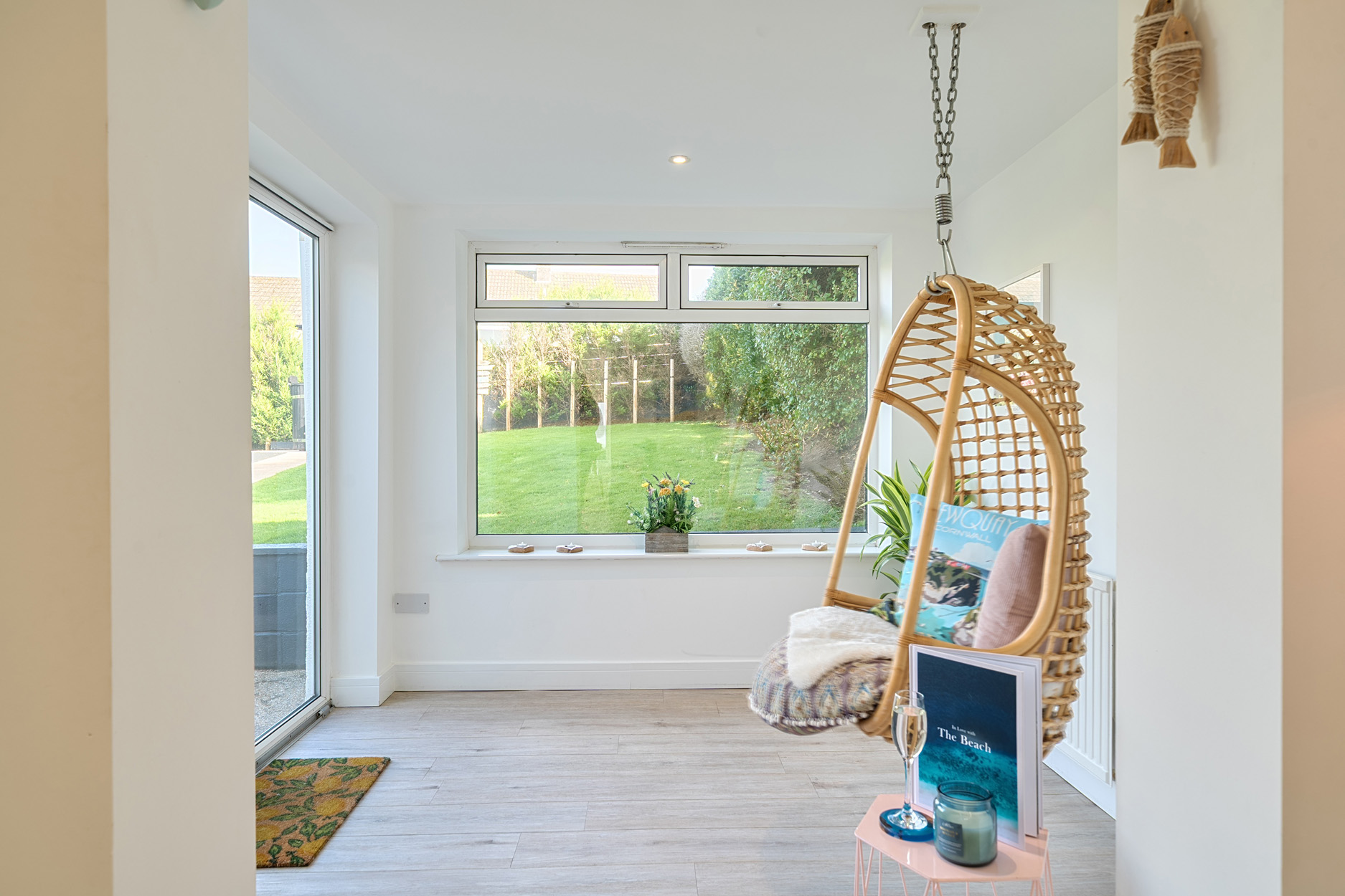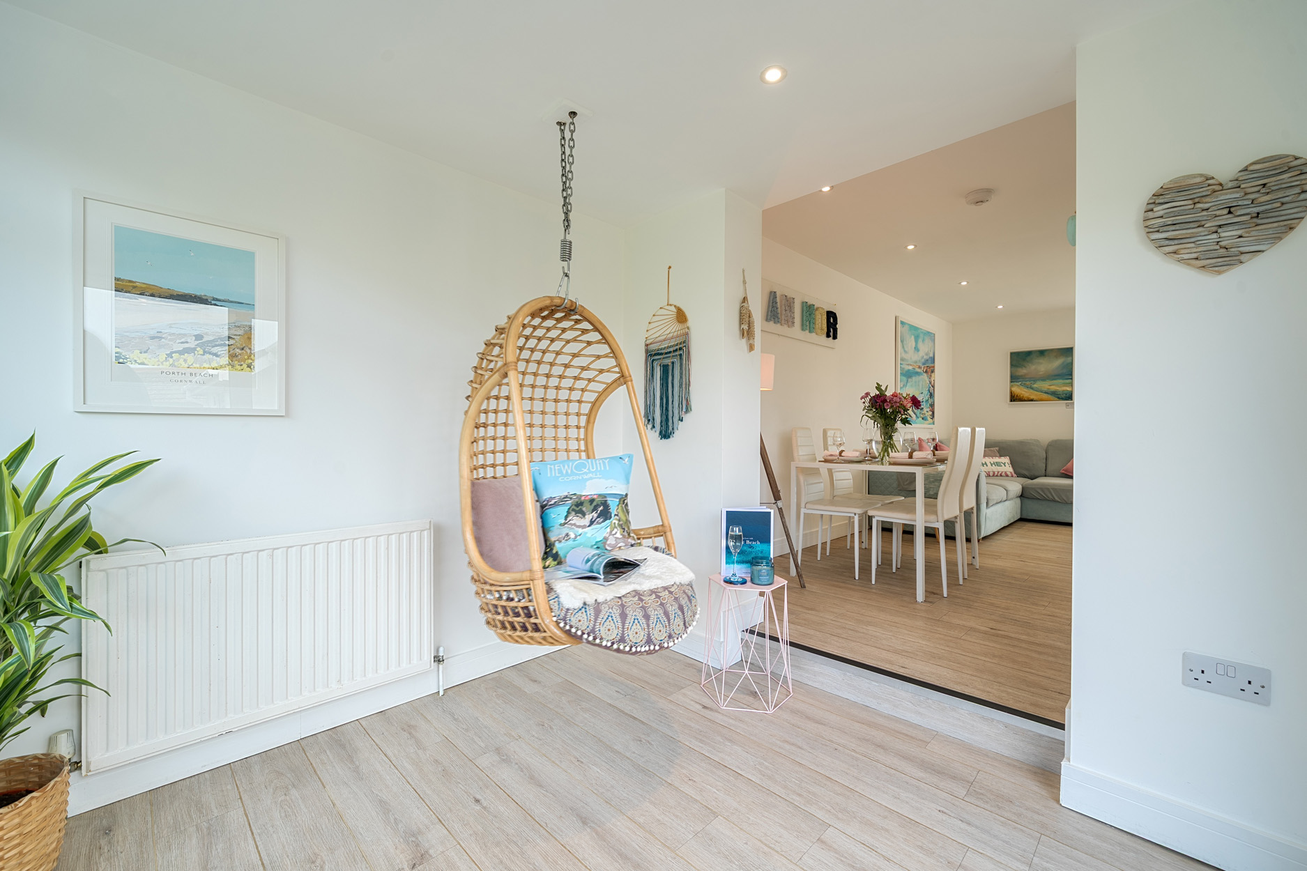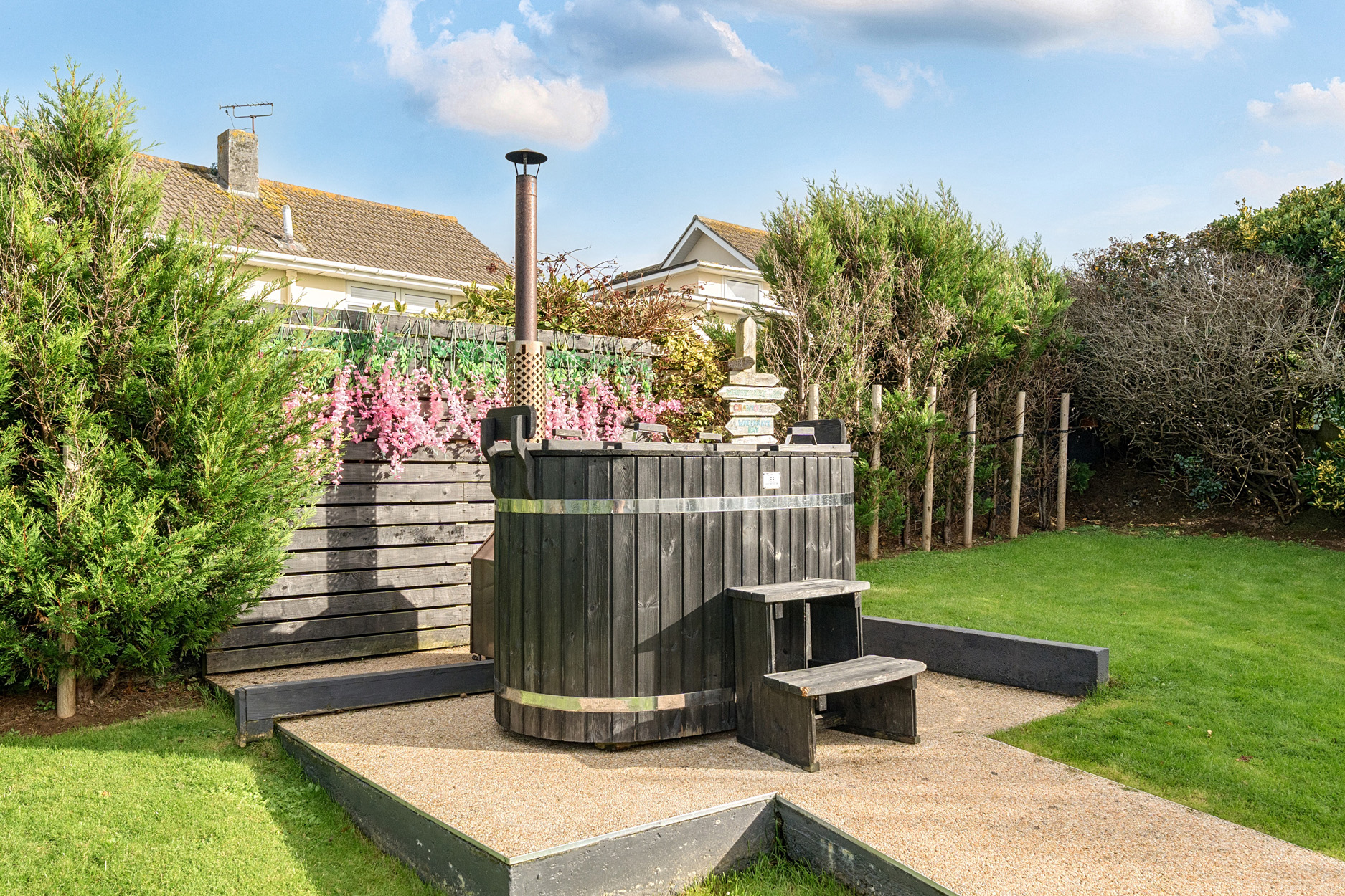 19 Greenback Cresent is a detached bungalow that is situated in the village of Porth, near the town Newquay in Cornwall. The property hosts two bedrooms, one a super king-size double (zip/link, can be made into a twin upon request) and one double bed. Also inside the property is a sitting room/dining, a sun room, kitchen, and a utility room, and one bathroom with a hand held shower, basin, and WC. The property has road side parking. The property also includes a two tier patio and garden with an outdoor seating area, coffee table, hammock, and hot tub.19 Greenback Cresent is the perfect tranquil Cornish getaway for families who love the sand and sun, whatever the season. 2 pets allowed.