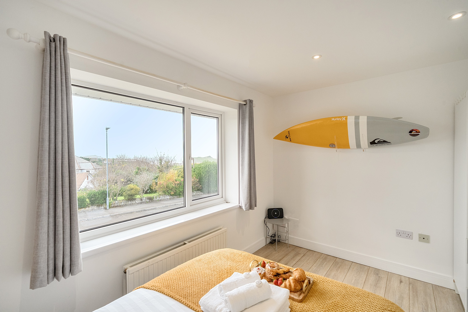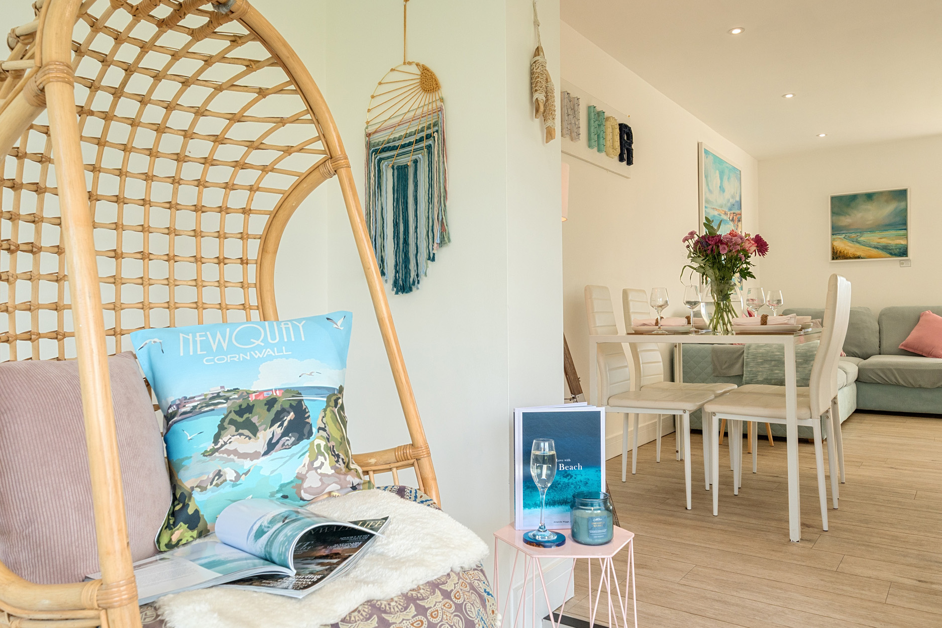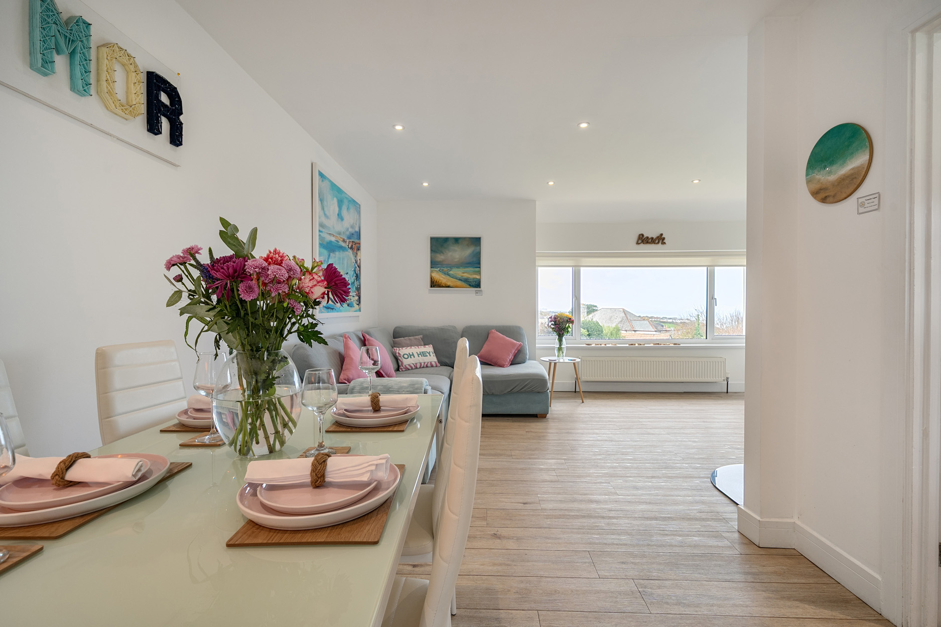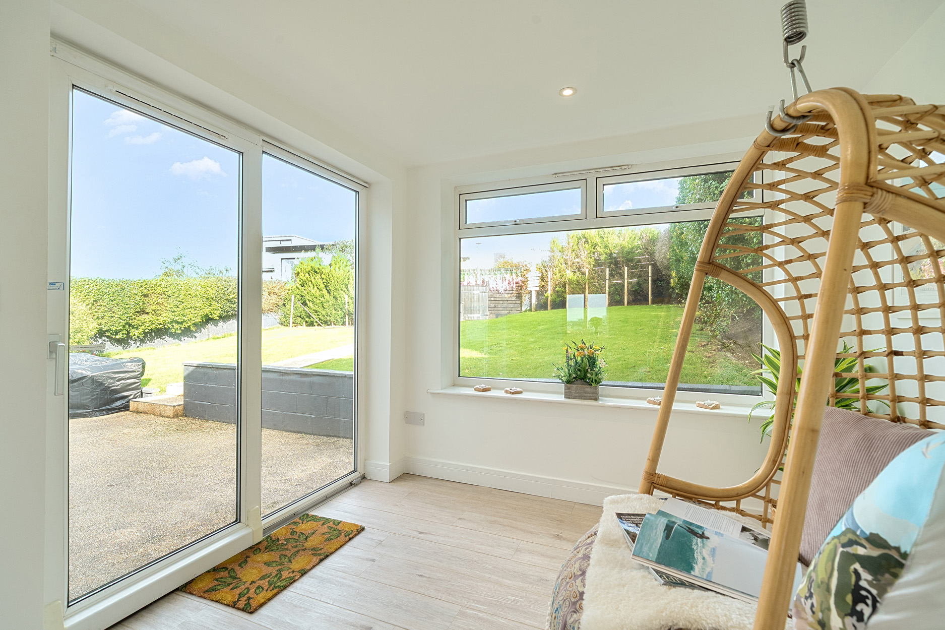 19 Greenback Cresent is a detached bungalow that is situated in the village of Porth, near the town Newquay in Cornwall. The property hosts two bedrooms, one a super king-size double (zip/link, can be made into a twin upon request) and one double bed. Also inside the property is a sitting room/dining, a sun room, kitchen, and a utility room, and one bathroom with a hand held shower, basin, and WC. The property has road side parking. The property also includes a two tier patio and garden with an outdoor seating area, coffee table, hammock, and hot tub.19 Greenback Cresent is the perfect tranquil Cornish getaway for families who love the sand and sun, whatever the season. 2 pets allowed.