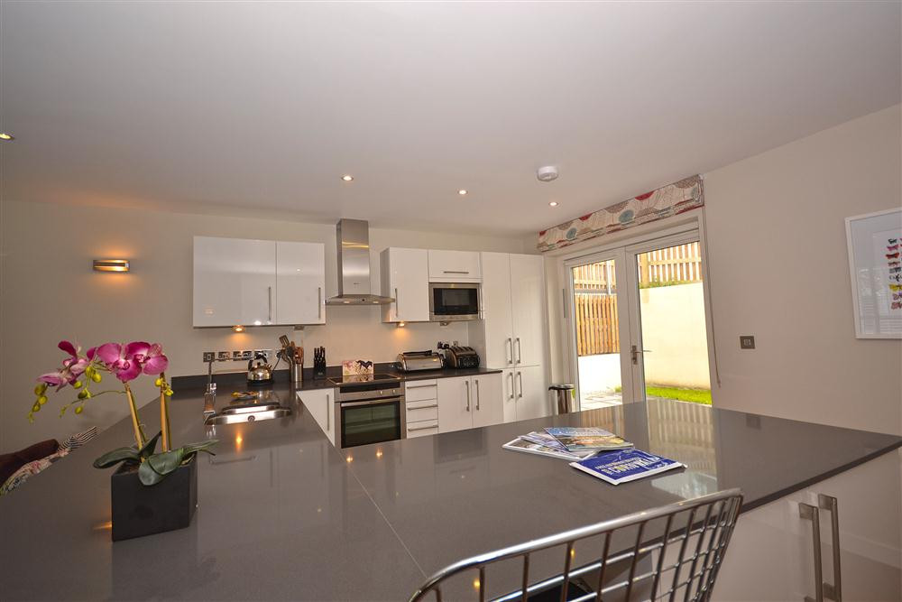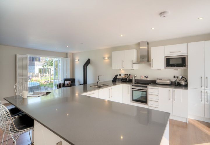 This striking detached property offers a large roof decking area with fantastic views of the countryside and glimpses of the sea as well as beautiful accommodation inside. The open plan living space is perfect for entertaining or relaxing and the three spacious bedrooms will provide everything a visitor needs.
