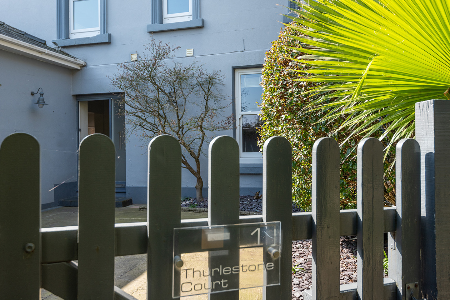 If additional parking is required, there is unrestricted on street parking along Mount Boone and Thurlestone Gardens. There is space for one car against the wall by the garages at the Thurlestone Court end of Thurlestone Gardens, although please be mindful of space needed for turning vehicles. Number 1 can be accessed by the path to the side of the garages.