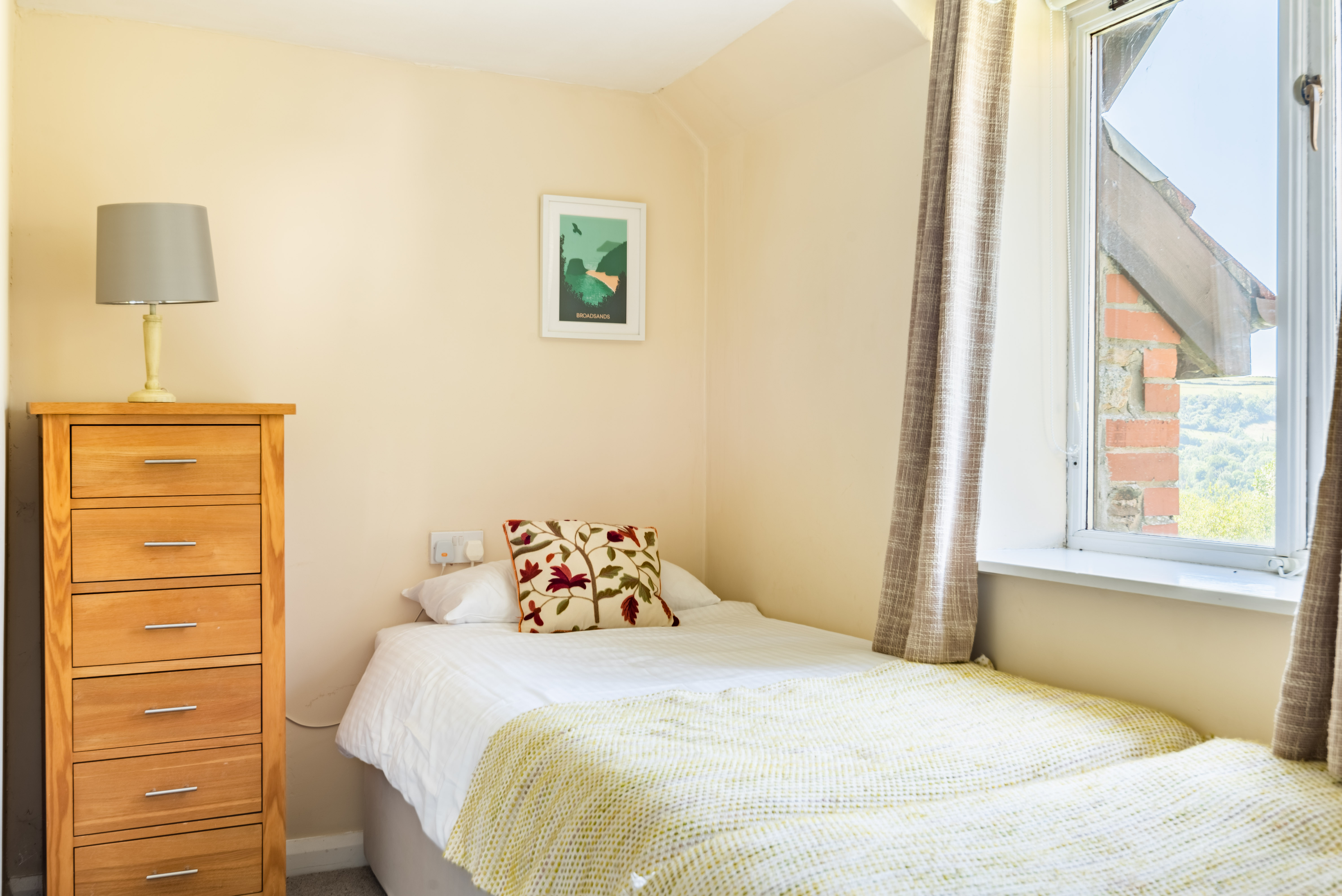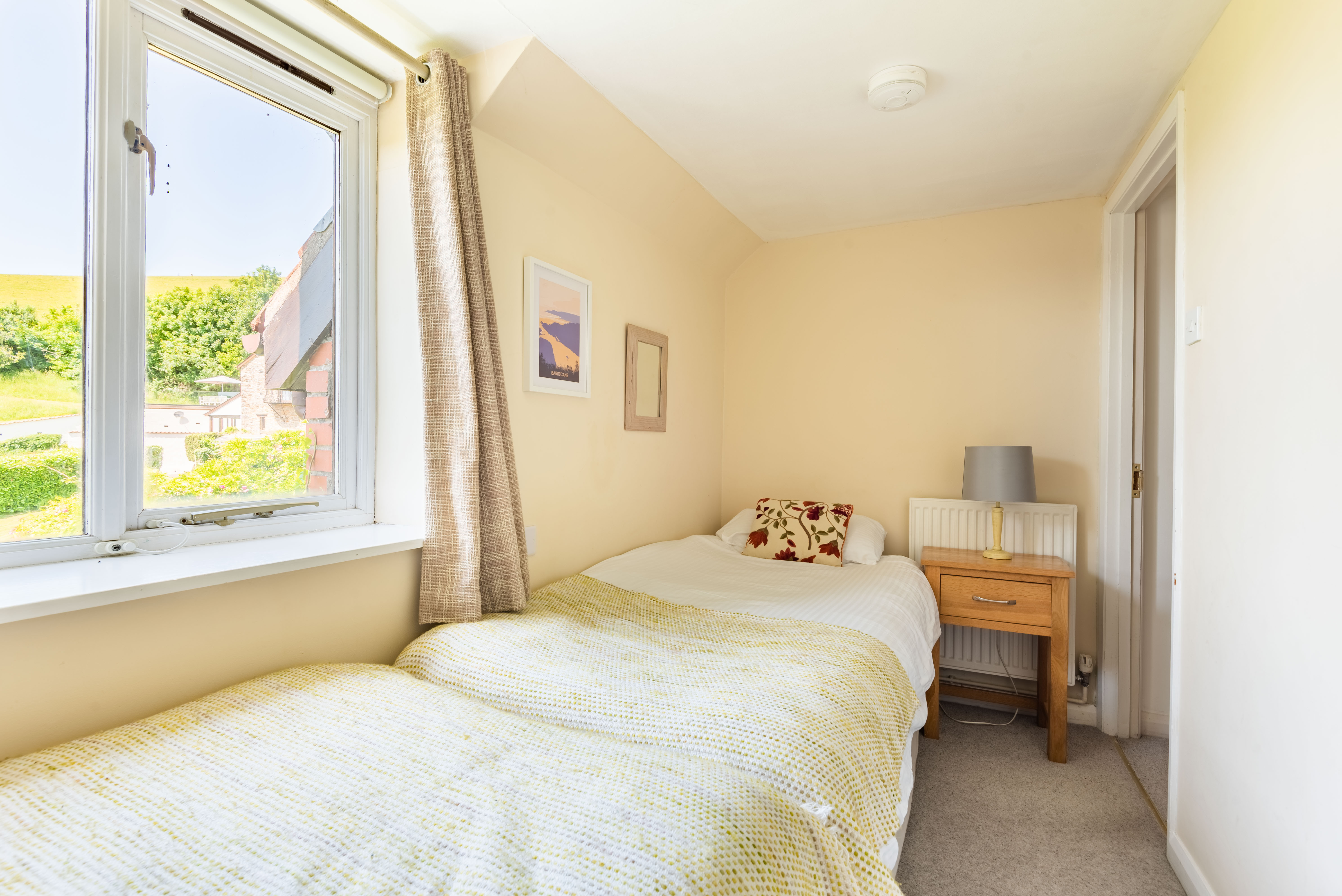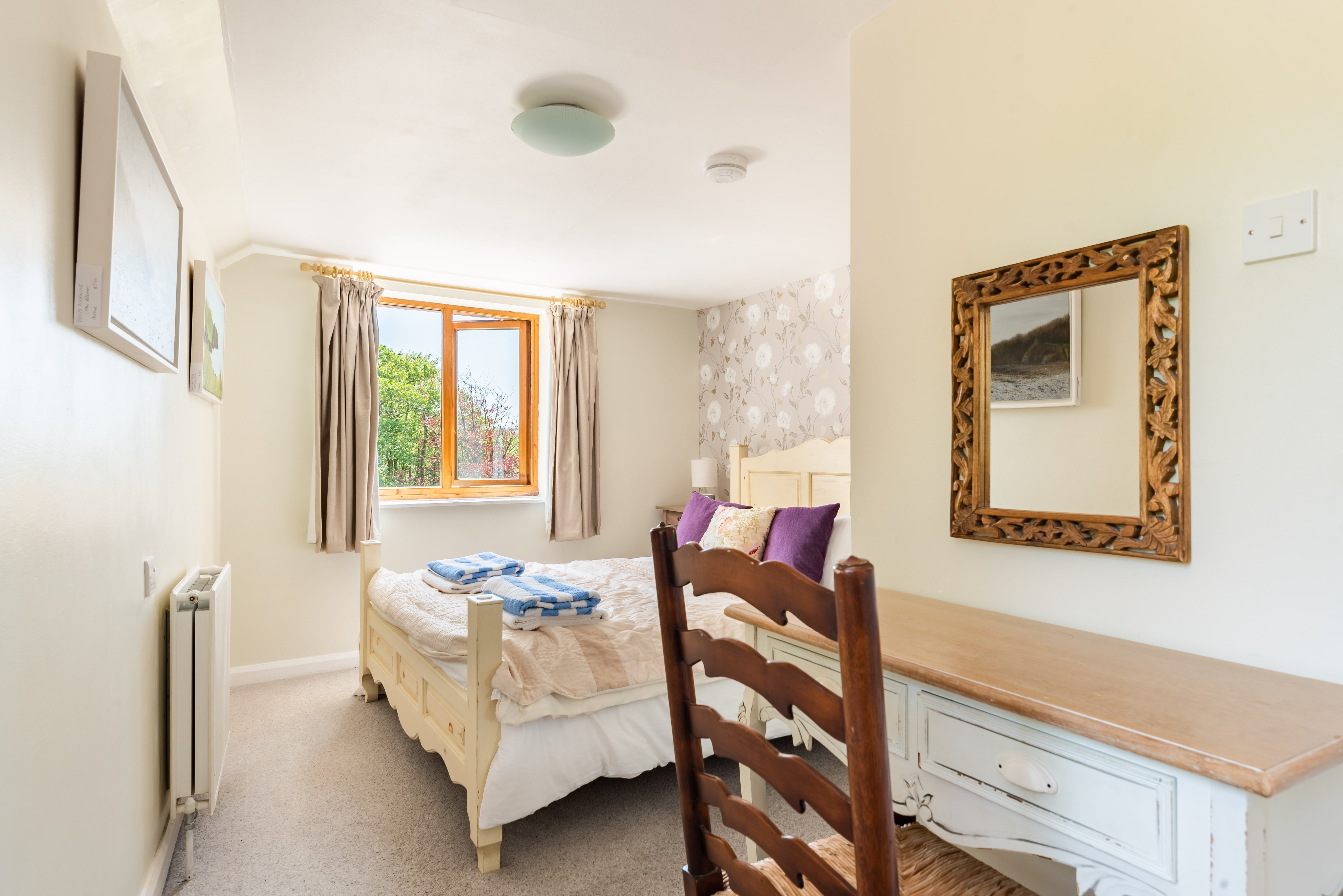 Bedroom 2 – Twin 3ft single beds with charming garden outlook
