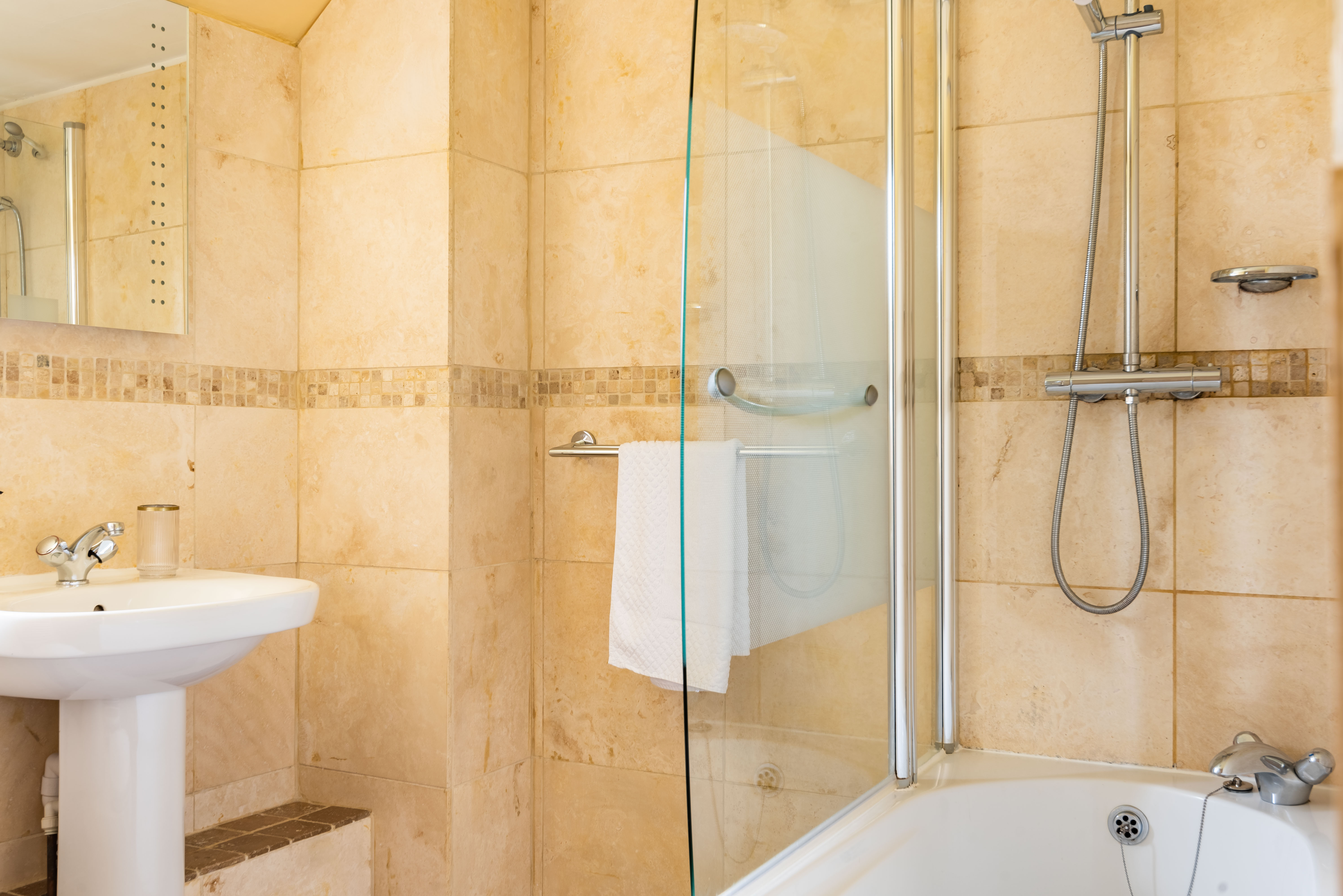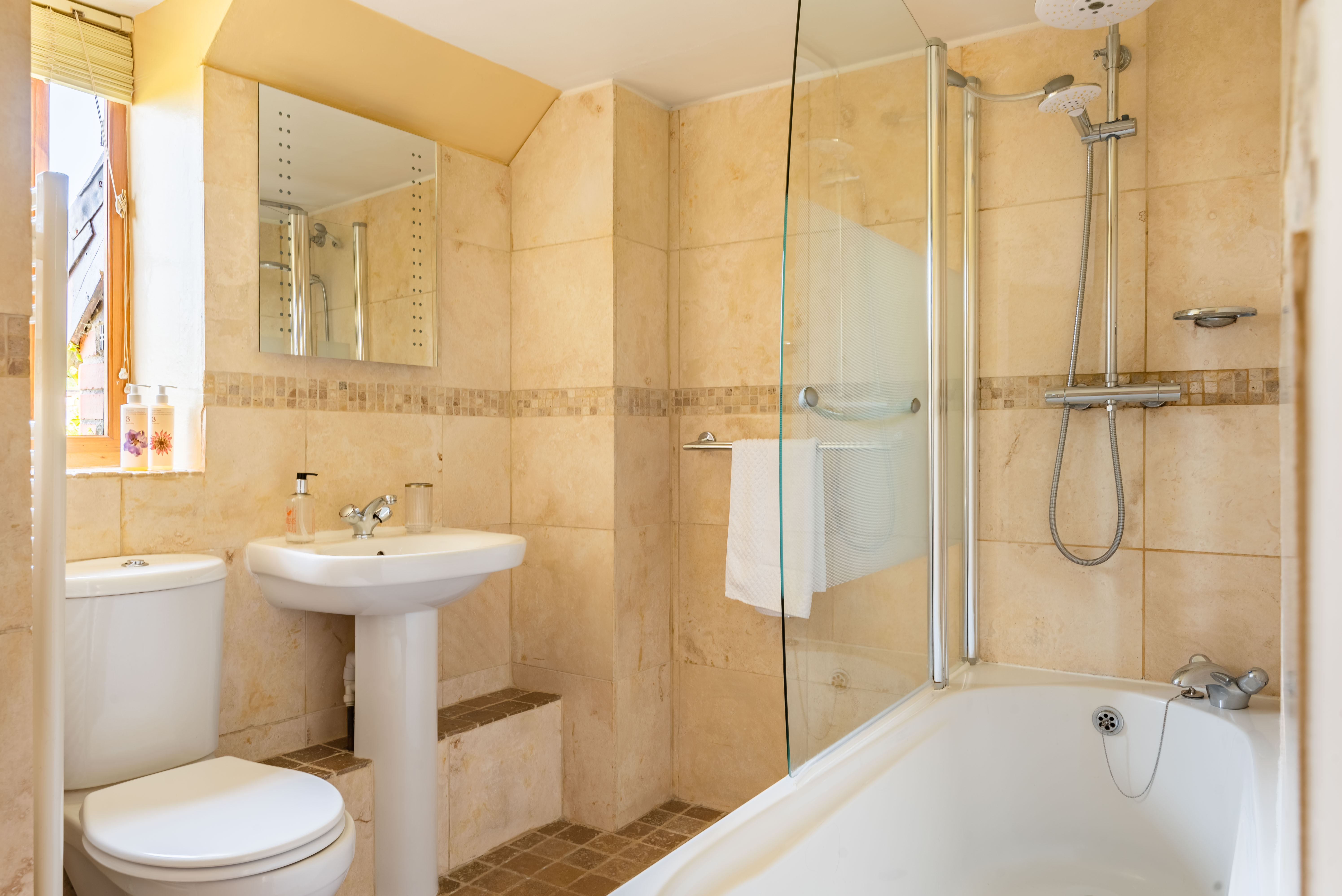 Luxurious Family bathroom with bath and shower over, WC and basin