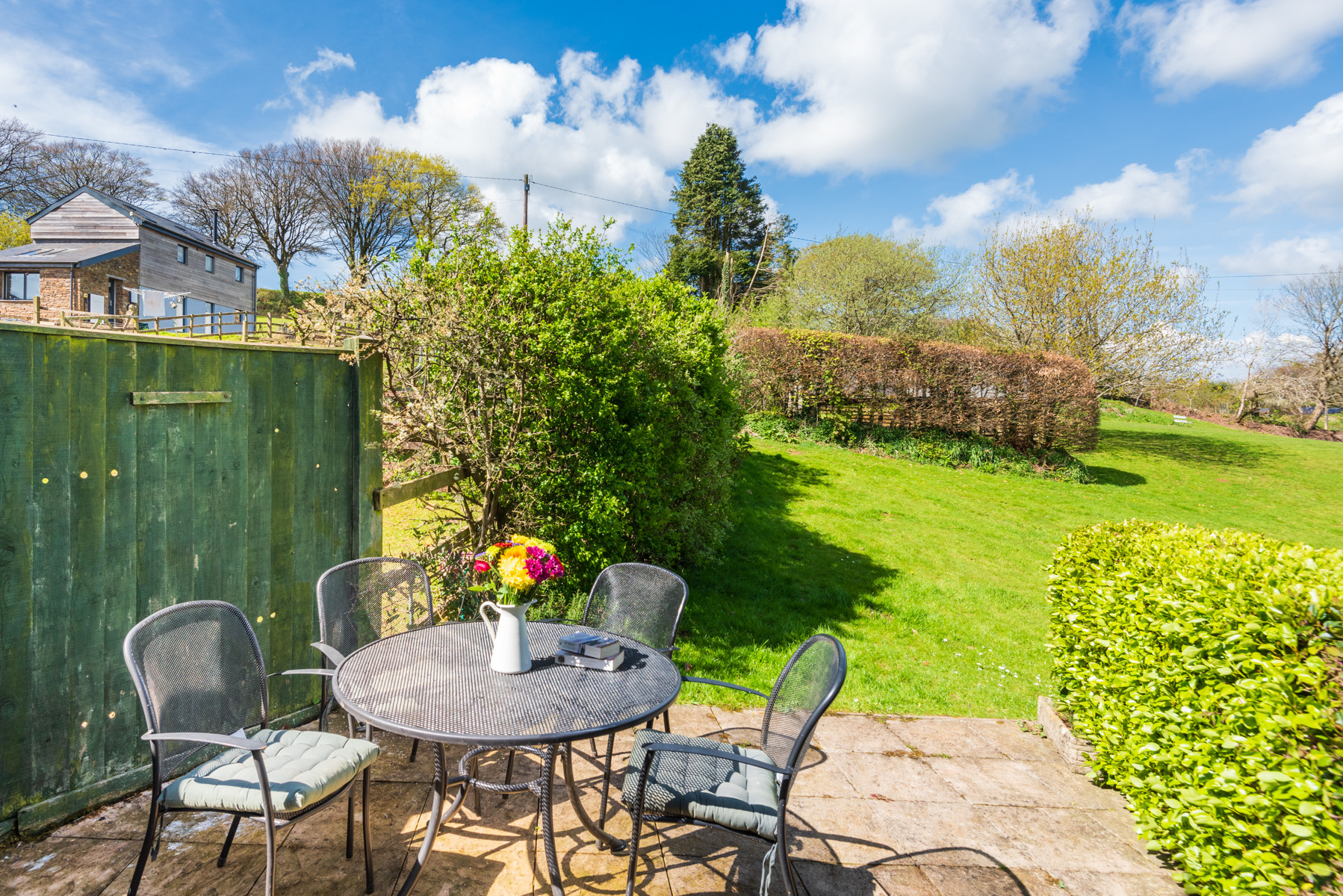 Outside a private terrace offers a perfect place to unwind with a cool glass of wine looking over the 1.5 acres of beautiful mature grounds and a play area available for guests at Buckland Court to enjoy.