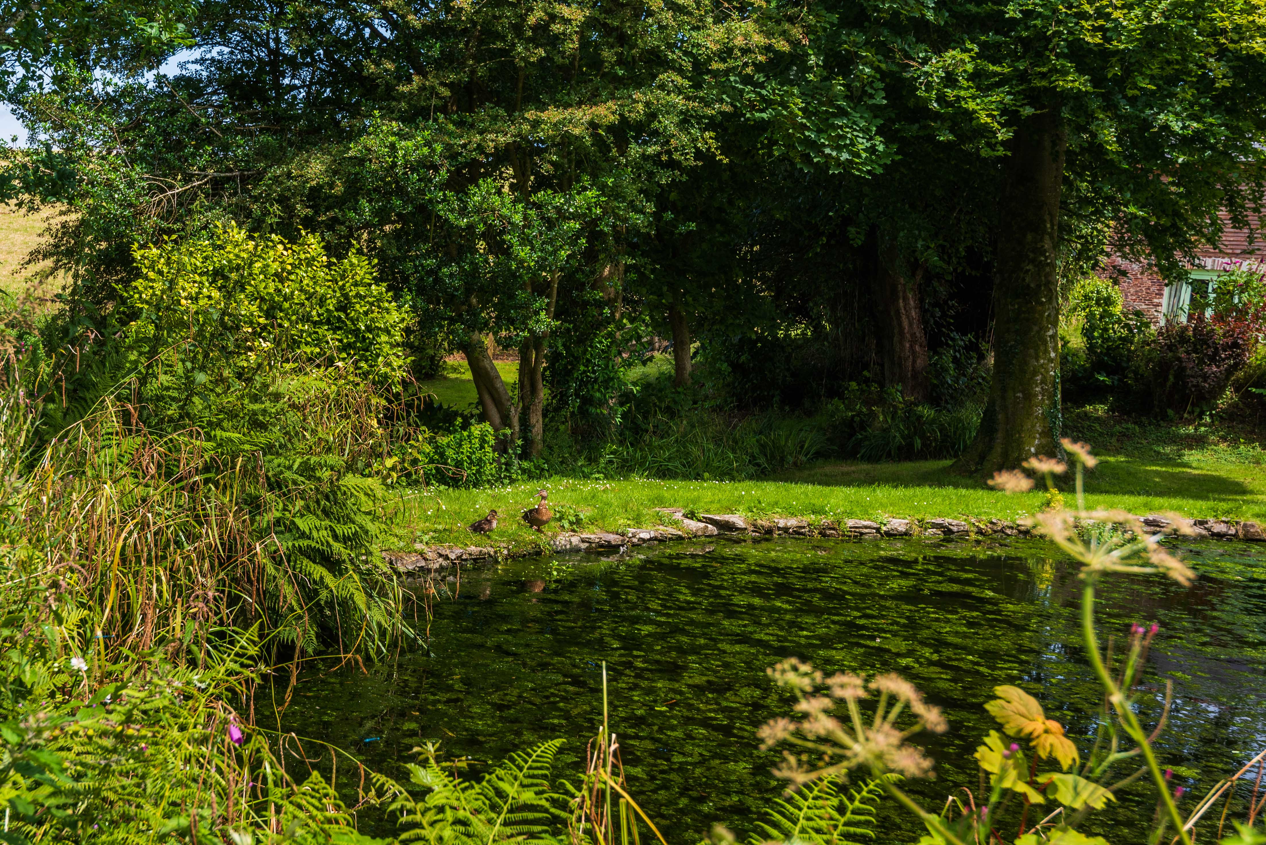 An archway in the corner of the lower courtyard (separated by a substantial gate) opens out to a large pond populated by ducks and a sweep of grass and orchard (1.5 acres) including a built in barbecue with picnic benches where guests can relax and young people can play outdoor games as well as a children’s adventure playhouse on stilts with a slide.