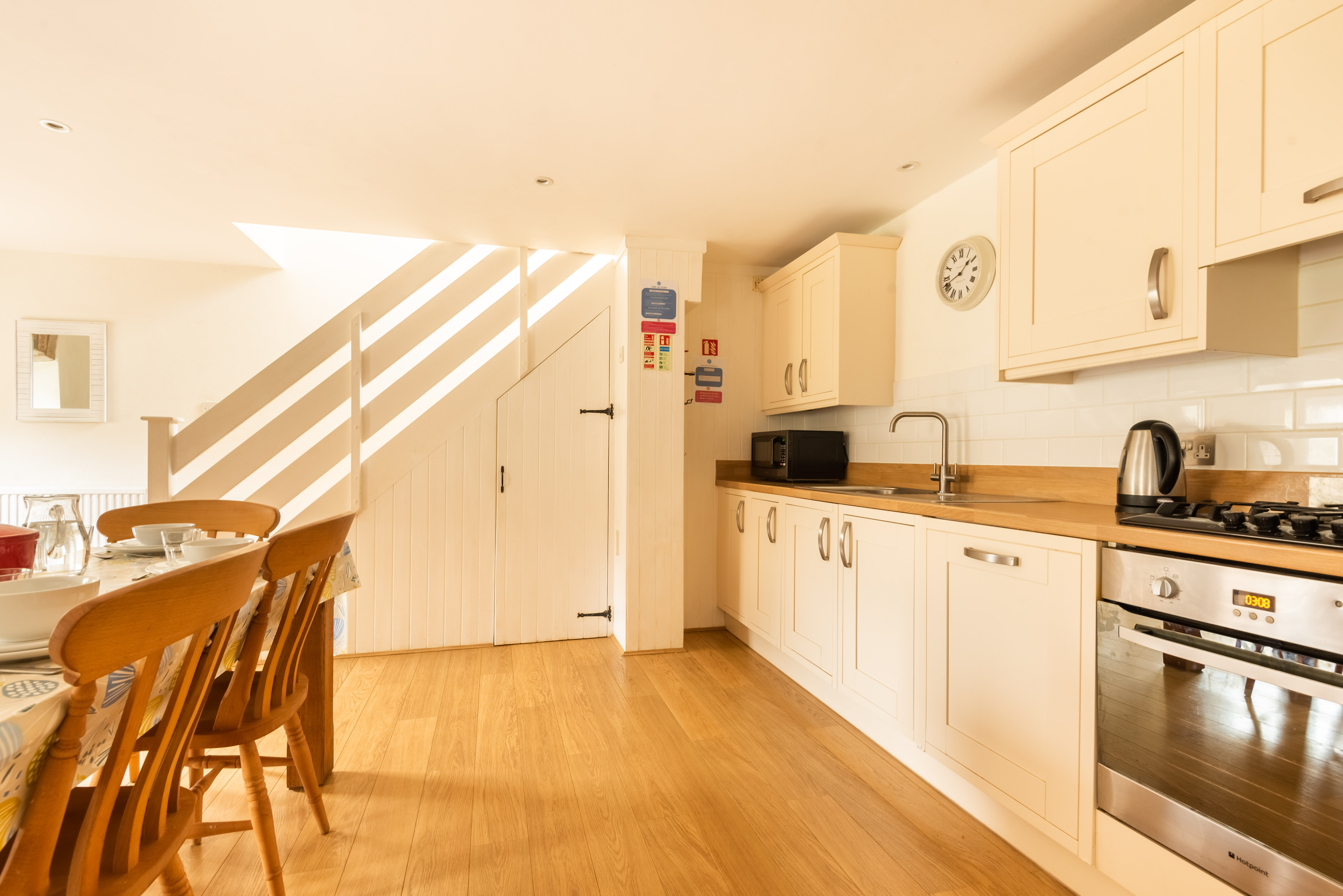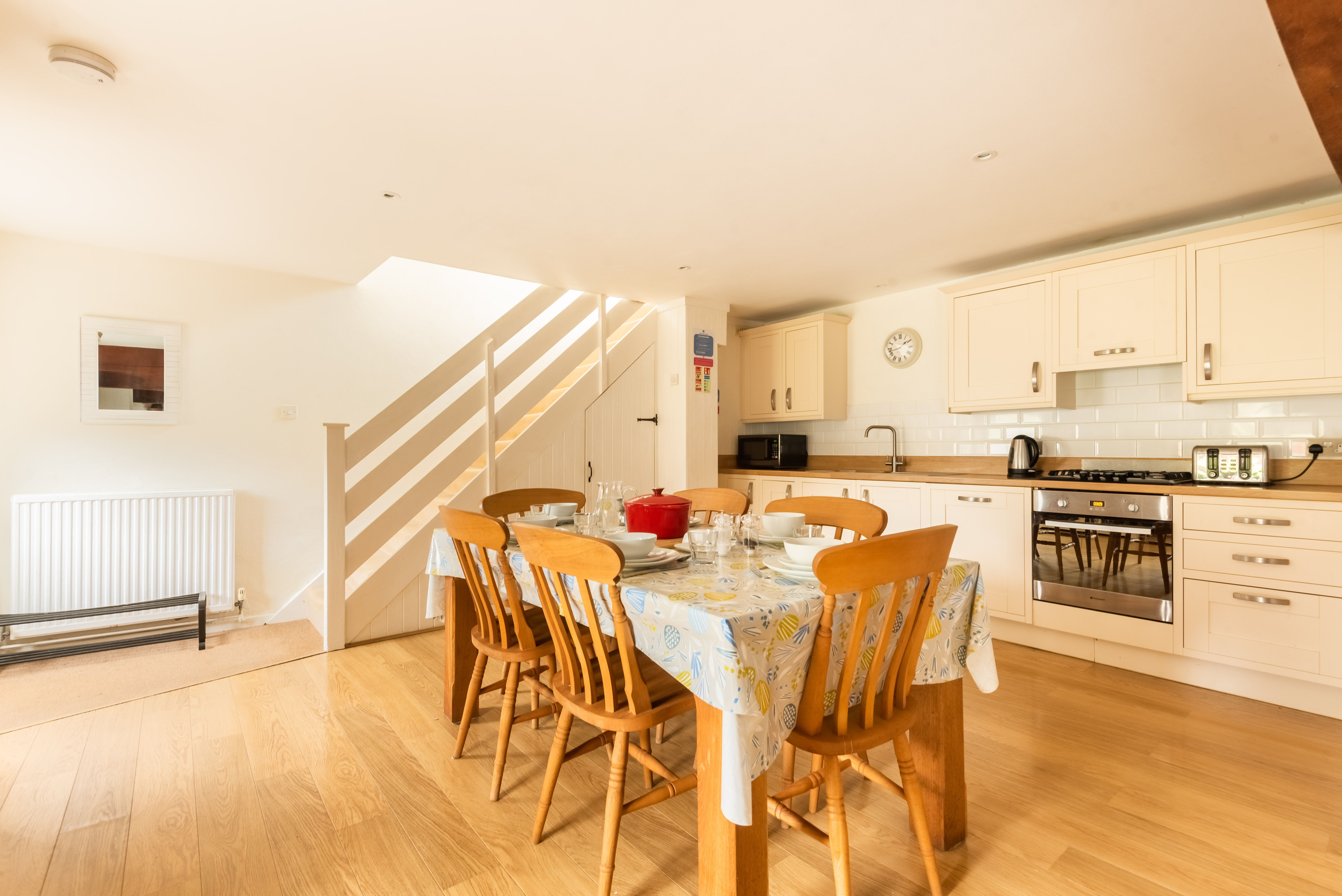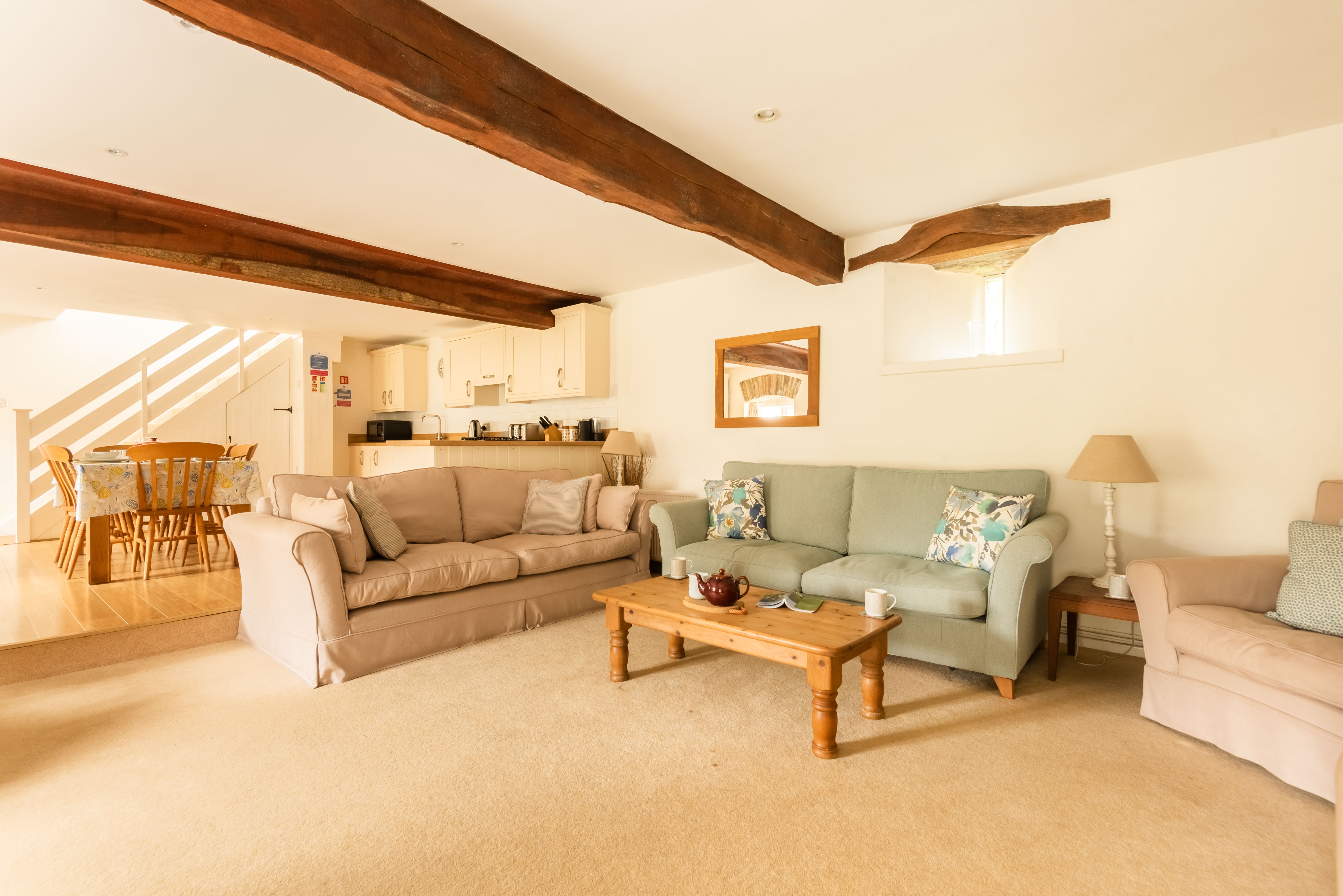 Beeches Cottage is the largest at Buckland Court, has full central heating and sleeps 6 to 8 people in three bedrooms with full-size beds, and a sofa bed in the living room. Downstairs, a striking feature of the cottage is its spacious open plan living and dining room.